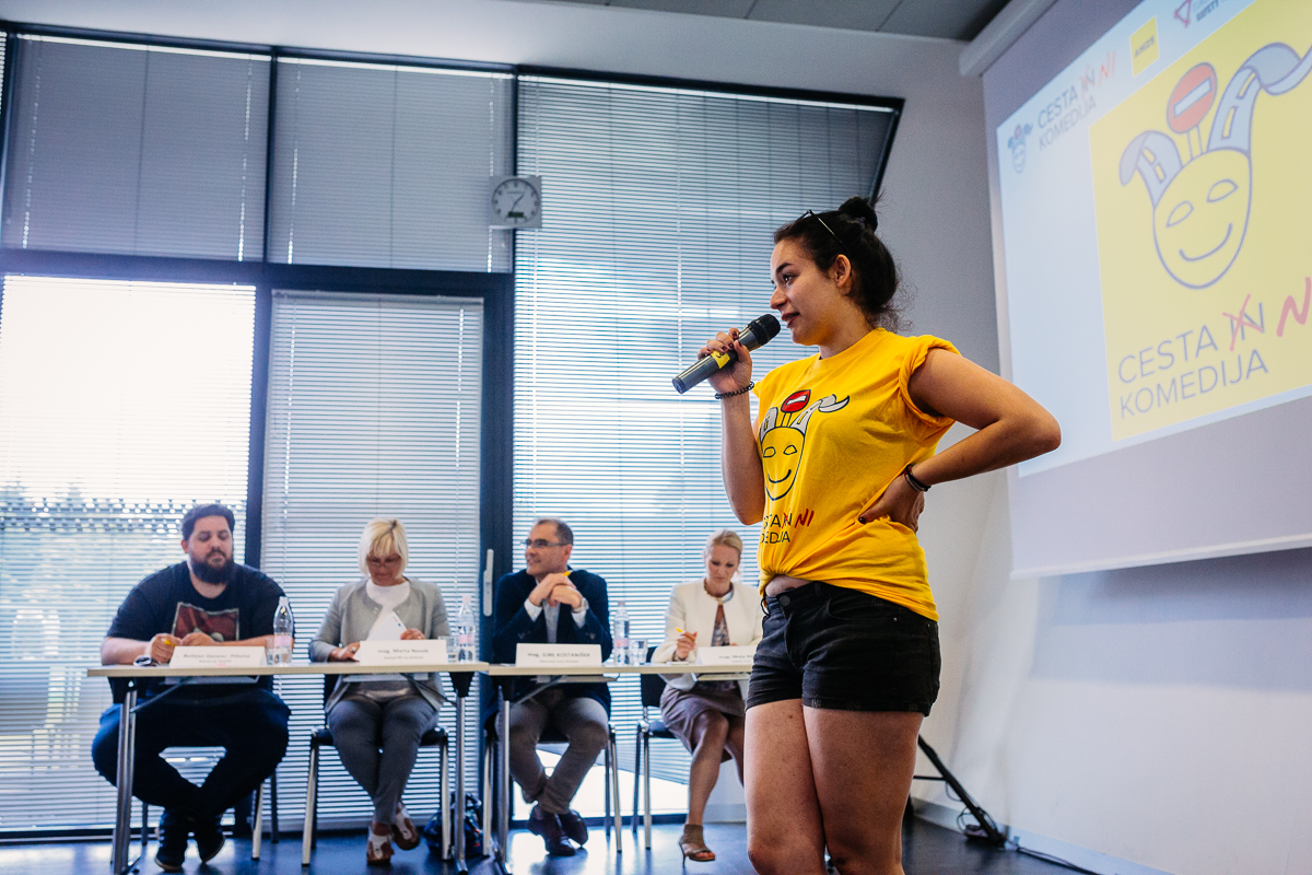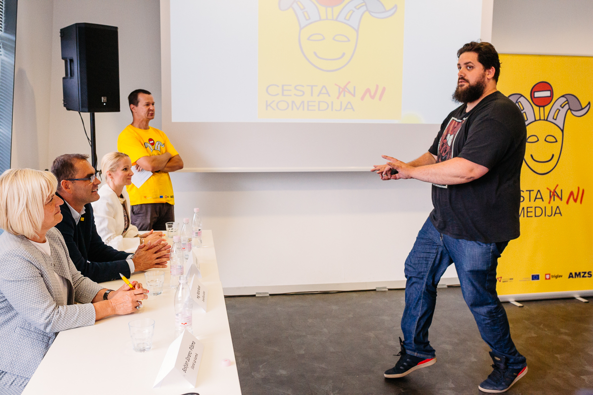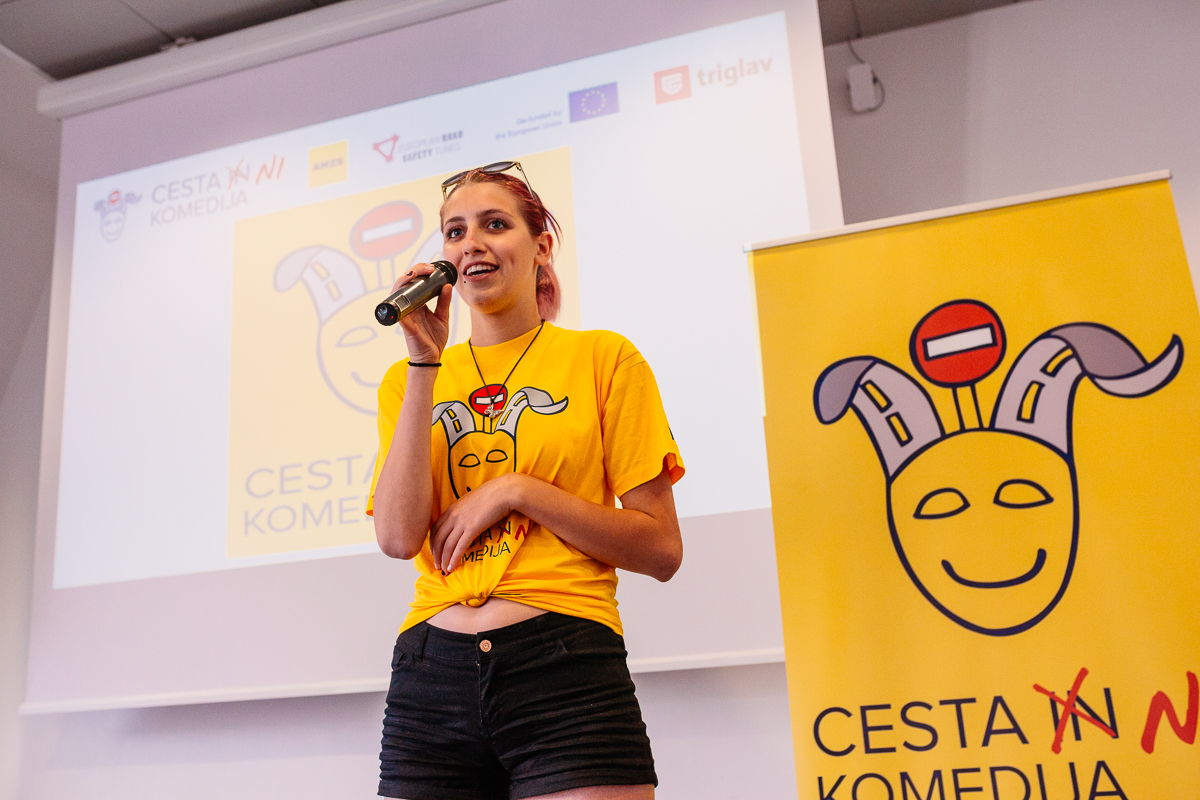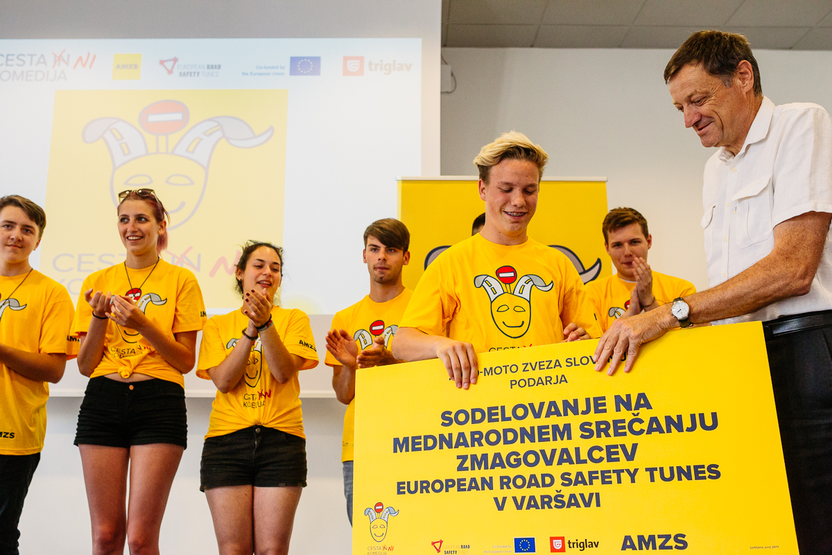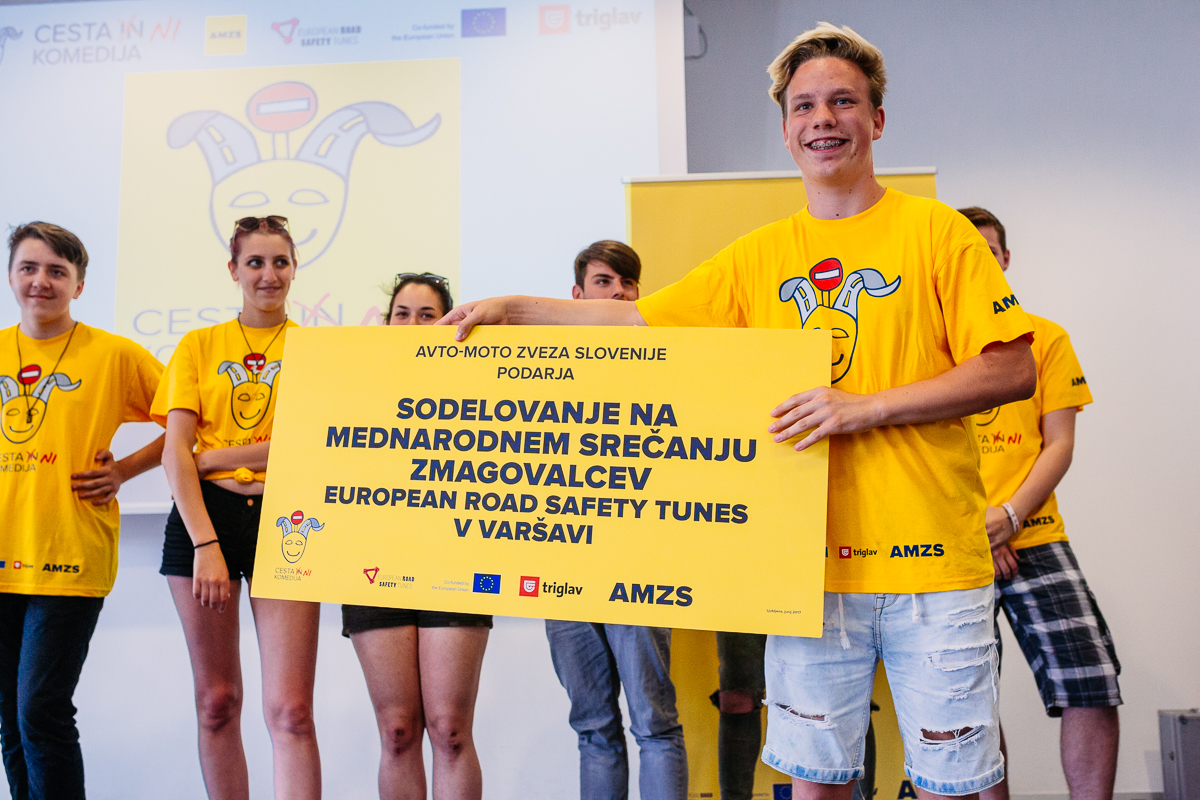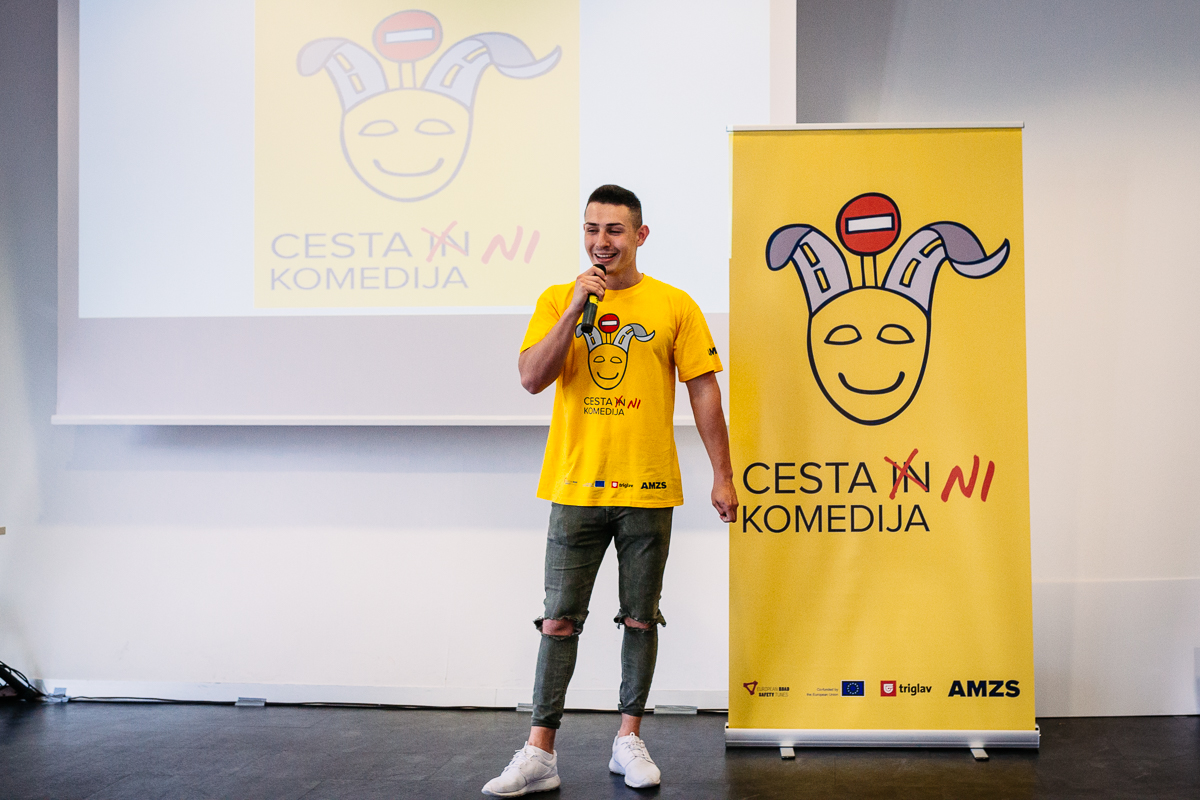 Za dijake tretjih letnikov na vključenih šolah (Šolski center za pošto, ekonomijo in telekomunikacije Ljubljana, Šolski center Nova Gorica – strojna, prometna in lesarska šola, Srednja šola in gimnazija Kočevje, Šolski center Celje – srednja šola za storitvene dejavnosti in logistiko in Srednja šola za oblikovanje Maribor) so septembra 2016 potekali predstavitveni dogodki, ki so vključevali predavanje AMZS inštruktorja varne vožnje in stand-up nastop Pižame na temo prometne varnosti, med oktobrom lani in majem 2017 pa so bile na šolah delavnice, na katerih so mladi pripravljali svoje stand-up skeče na temo njihove varne udeležbe v prometu. Dijaki so svoje skeče predstavili v AMZS Centru varne vožnje na Vranskem. Komisija, ki so jo sestavljali Pižama, mag. Marta Novak iz Zavoda RS za šolstvo in predstavnika AMZS mag. Jure Kostanjšek, vodja področja varna mobilnost pri Avto-moto zvezi Slovenije, in Maja Ambrož, vodja službe za tržno komuniciranje AMZS, d. d., pa je kot najboljšega ocenila nastop dijaka srednje šole za oblikovanje Maribor Jana Puhnerja. Ta bo svoj skeč in izkušnje pri projektu od 18. do 19. 6. 2017 predstavil tudi na srečanju dijakov zmagovalnih projektov iz vseh sodelujočih držav v Varšavi.