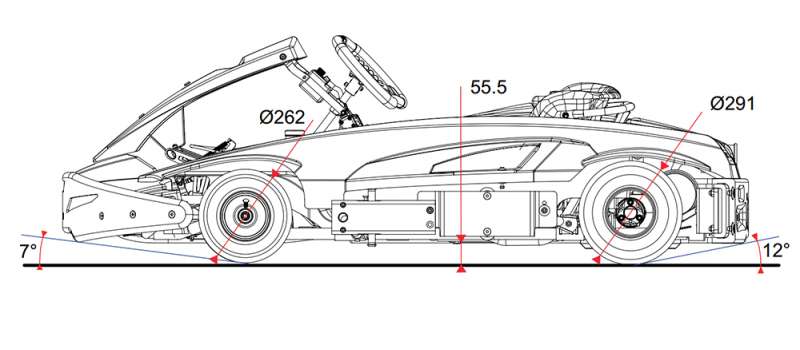 Oddaljenost pedalov je nastavljiva, zato je kart primeren za vse voznike.