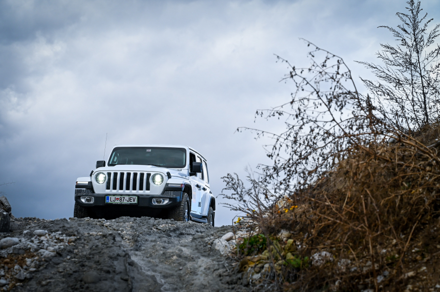 V gramoznici v Lescah smo z novo generacijo Jeepove ikone wranglerjem tudi mi preizkusili čare njegovega pravega življenjskega okolja in dobili odgovore, zakaj je ostal edini terenec, ki še vztraja s togo premo na prednjih kolesih. Kljub dejstvu, da je wrangler na asfaltu veliko bolj uglajen, kot je bil, to še vedno ostaja avto za prave terenske podvige. Dve ročici med prednjima sedežema dajeta vedeti, da lahko računaš na vselej pravi prenos navora na kolesa. Wrangler še vedno najbolj blesti, ko hitrost pade pod 40 km/h, ko se svet postavi pokonci in karoserija dobil okrasje zemeljskih barvnih tonov. Ko ročico njegovega priklopljivega in še vedno povsem mehanskega štirikolesnega pogona prestaviš v območje reduktorskega prenosa 4L, se začne prava avtomobilska svoboda. To je avto, za katerega je dovolj, da je pot le nakazana. Onstran asfalta zmore veliko in ob pravem vozniškem znanju z njim zlepa ne boste obtičali. Brede lahko po več kot 70 centimetrov globoki vodi, z veliko oddaljenostjo od tal (serijsko 27,7 cm) je zmožen prestopati korenine in se s hitrostjo od 3 do 5 km/h plaziti preko kamenja. Z inštruktorjem Janezom Maroltom sva v gramoznici z wranglerjem premagala nekaj zares strmih terenov, kjer je do izraza prišla tudi njegova karoserija s kolesi, postavljenimi na skrajne robove.