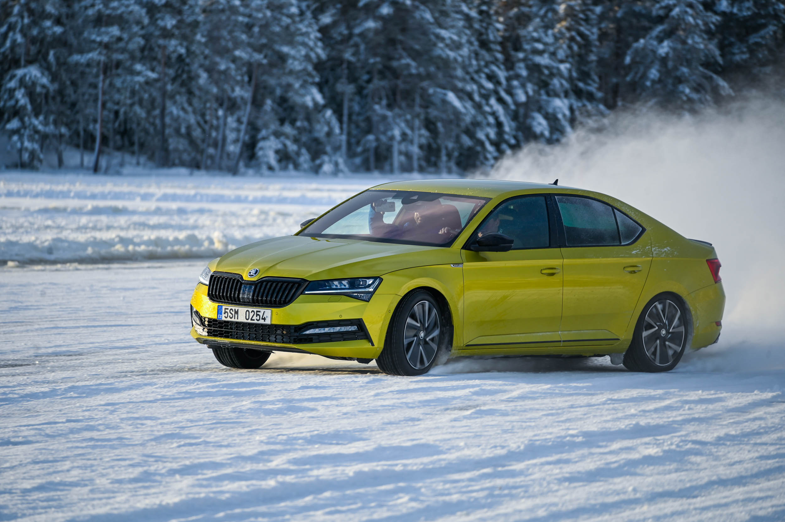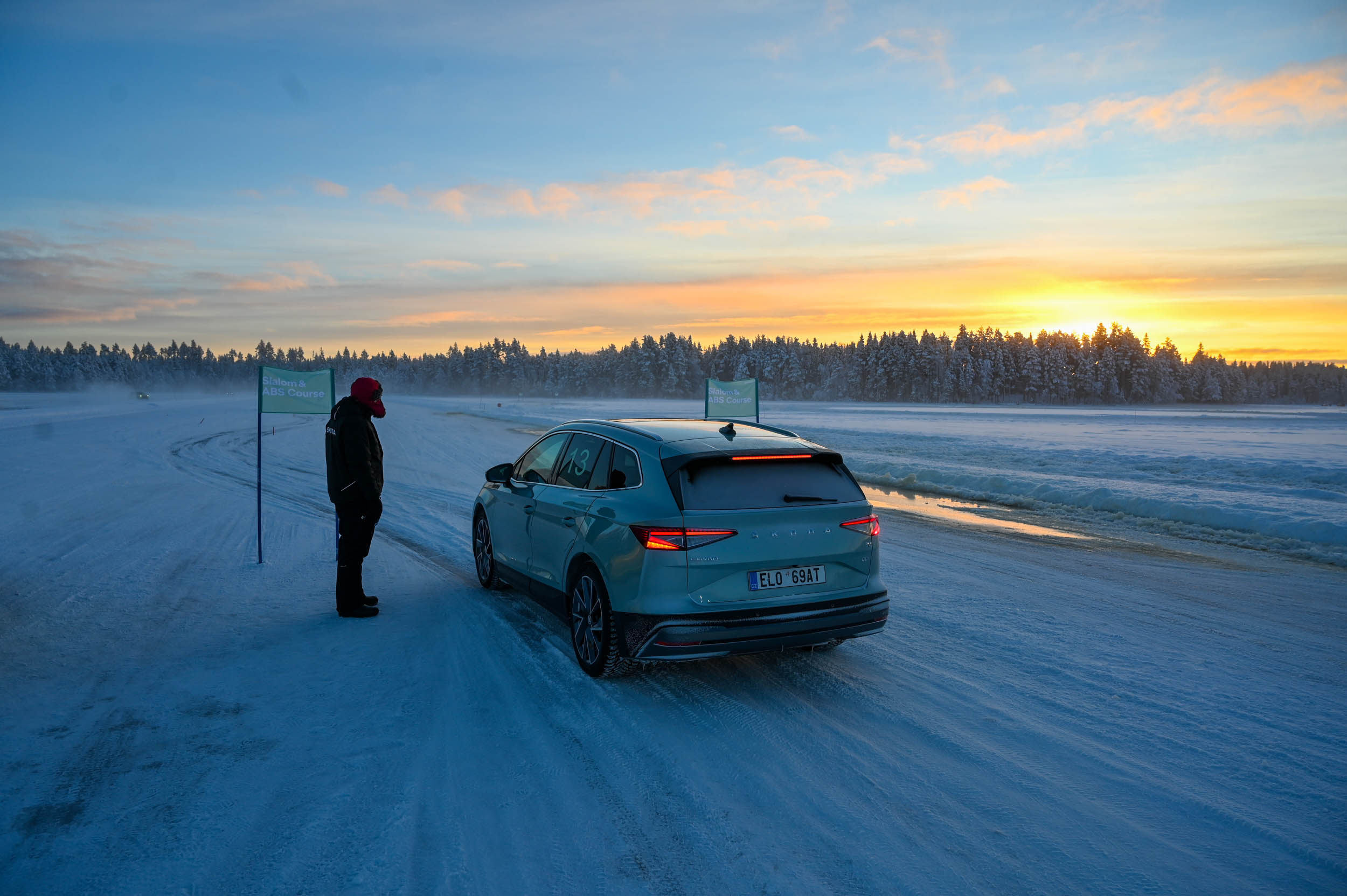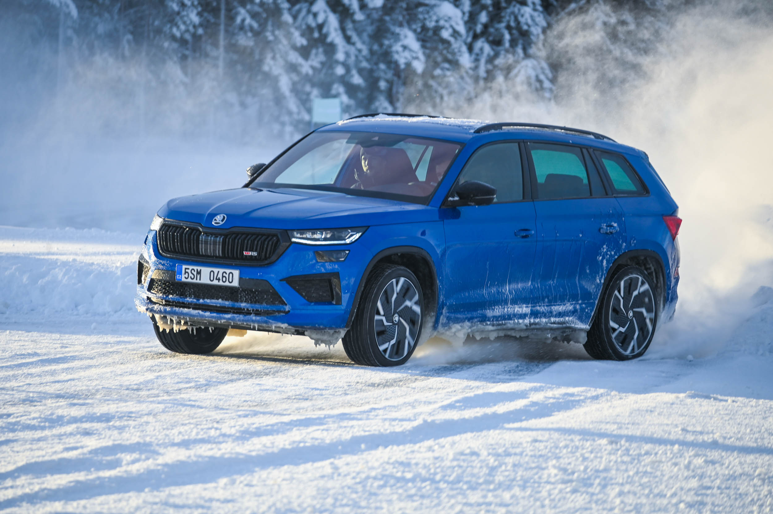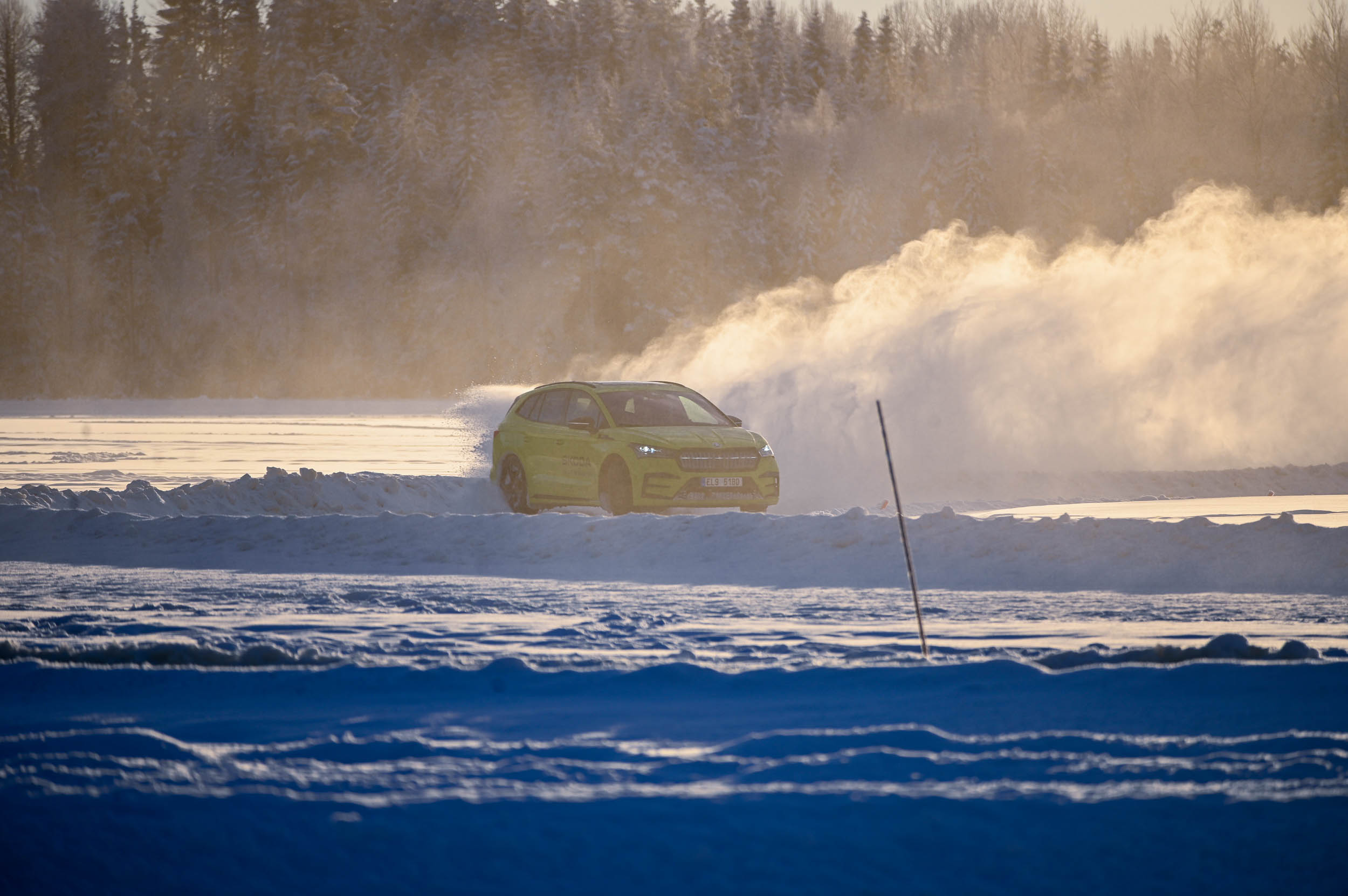 V teoriji so električni impulzi, ki krmilijo posamezni pogonski električni motor nad vsako osjo, bistveno hitrejši. No, na ledu je hitro postalo jasno, da električni krmilnik, programska oprema in predvsem procesorska moč ne zmorejo z enako bliskovito odzivnostjo slediti hitrim menjavam smeri in bliskovitim zdrsom. Z električnim enyaqom coupe RS iV nismo uspeli tako zelo natančno drseti skozi ledeni veleslalom in ovinke poligona. Moči in navora je dovolj, a njuna distribucija na kolesa v tako ekstremnem preskusu, kot ga ponuja ledeno jezero, ni bila tako natančna kot pri mehanskem štirikolesnem pogonu v octavii RS ali kodiaqu oziroma karoqu.