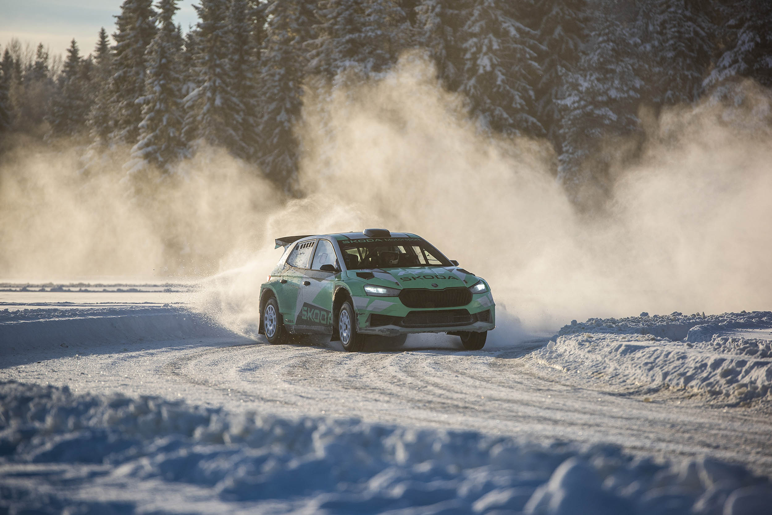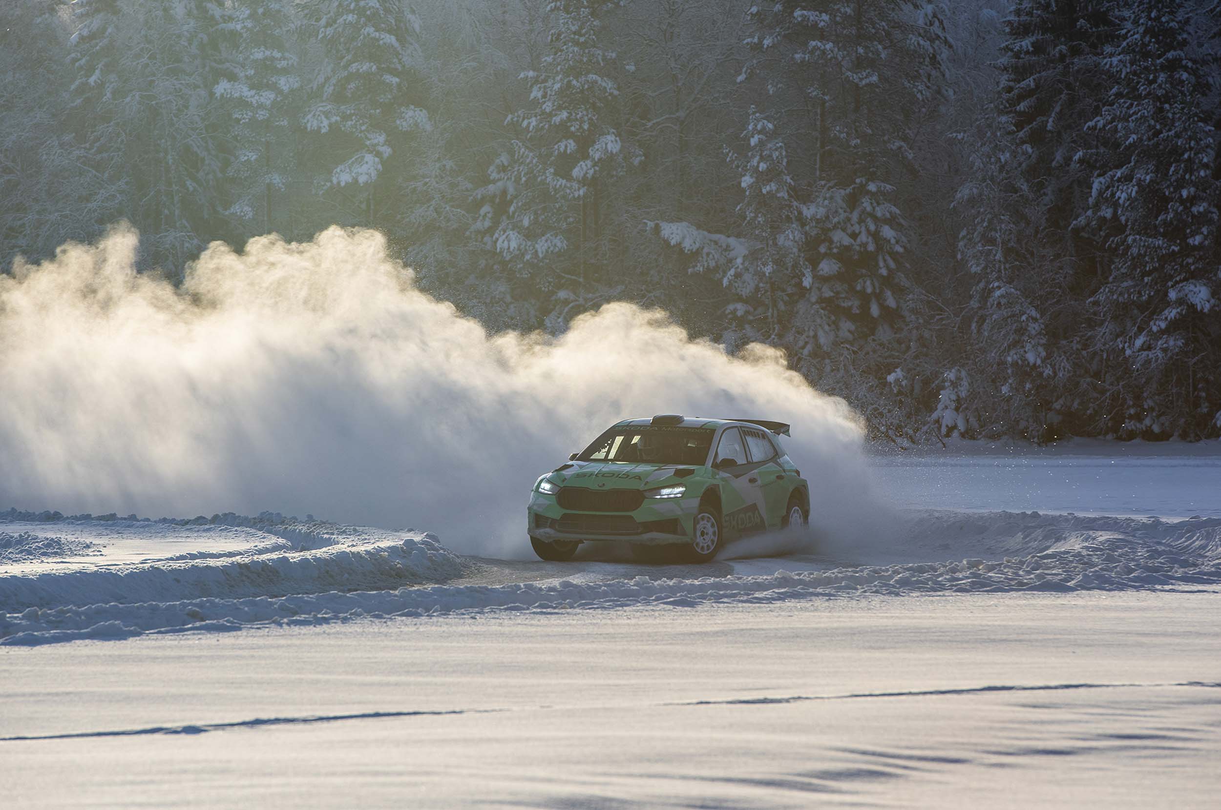 Posebno doživetje Škodine ledene avanture je bila sovozniška izkušnja v najnovejšem Škodinem rally dirkalniku - fabii RS rally2. Izjemen je občutek, ko na štartu pokimaš svetovnemu prvaku WRC2 Emilu Lindholmu. Brez oklevanja nas je izstrelil kot iz katapulta letalonosilke. Vseh 430 Nm 1,6-litrskega turbo motorja je na konicah 7-milimetrskih jeklenih krempljev na vseh štirih kolesih zasadilo v led. Neverjetno, kako izjemno natančno je mojster volana usklajen z divjim strojem. Najbolj nas je osupnila natančnost obeh. Surovost pojemkov in pospeškov se sestavi v izjemno elegantno linijo, ki na samem robu zakonov fizike zmore premagati tekmece. Osupljiva izkušnja!