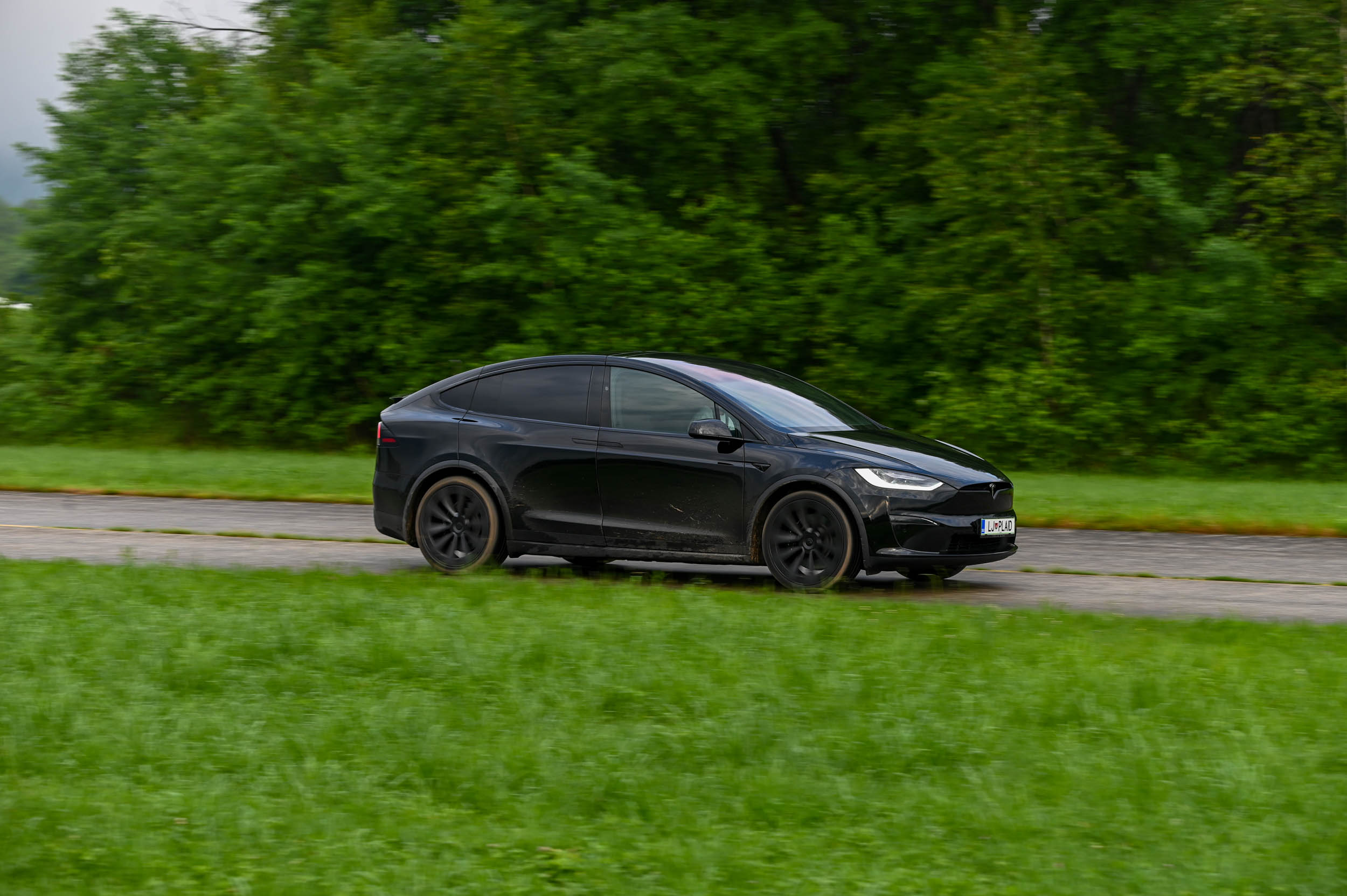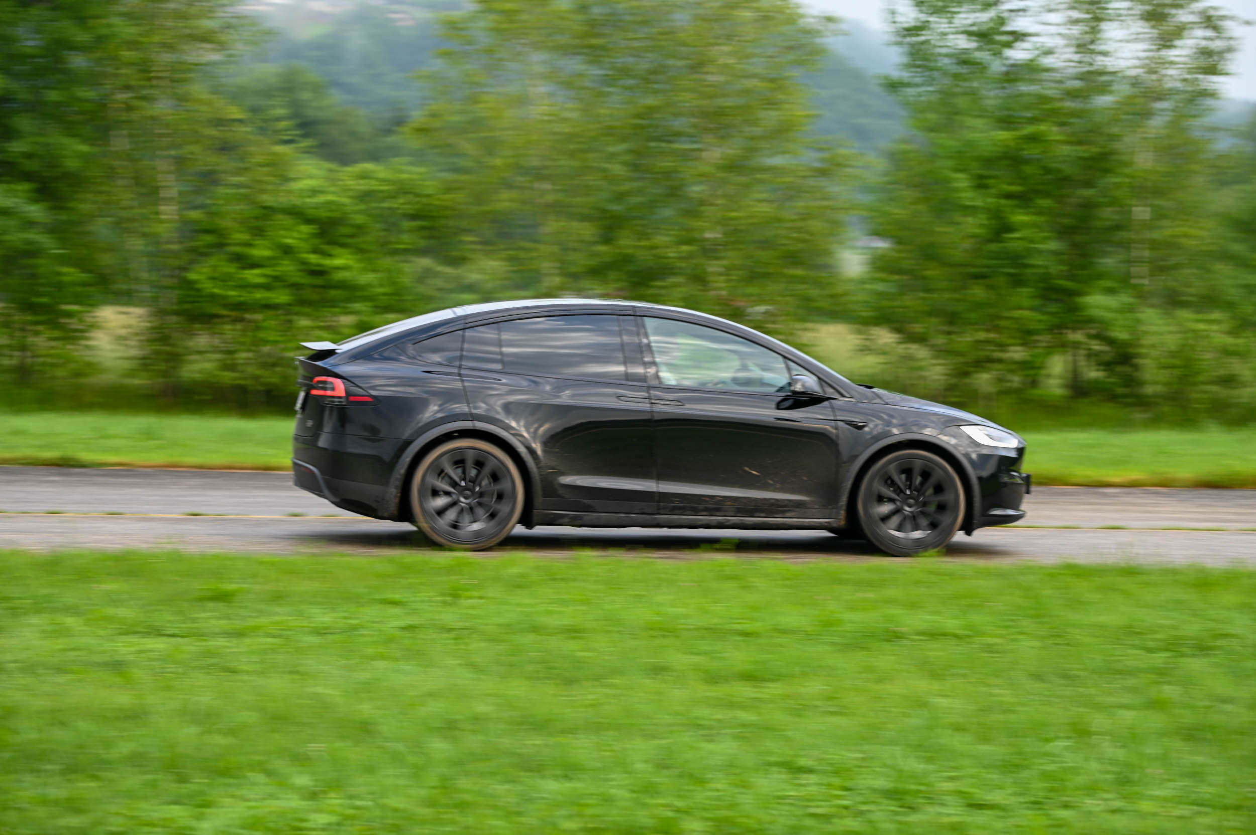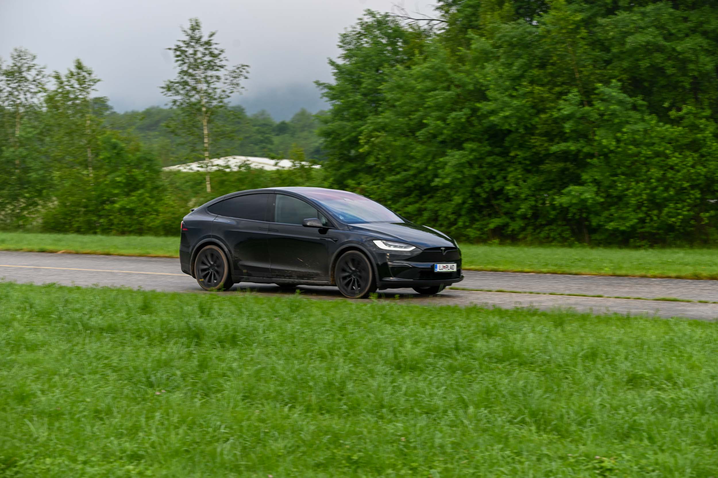 Pohvalo si tesla X zasluži za odlično smerno stabilnost pri višjih hitrostih. Zračni tokovi okoli karoserije so zelo stabilni, saj je med velikimi križanci to aerodinamično najbolj učinkovit avto z zavidljivo nizkim zračnim uporom; količnik upora znaša le 0,24.