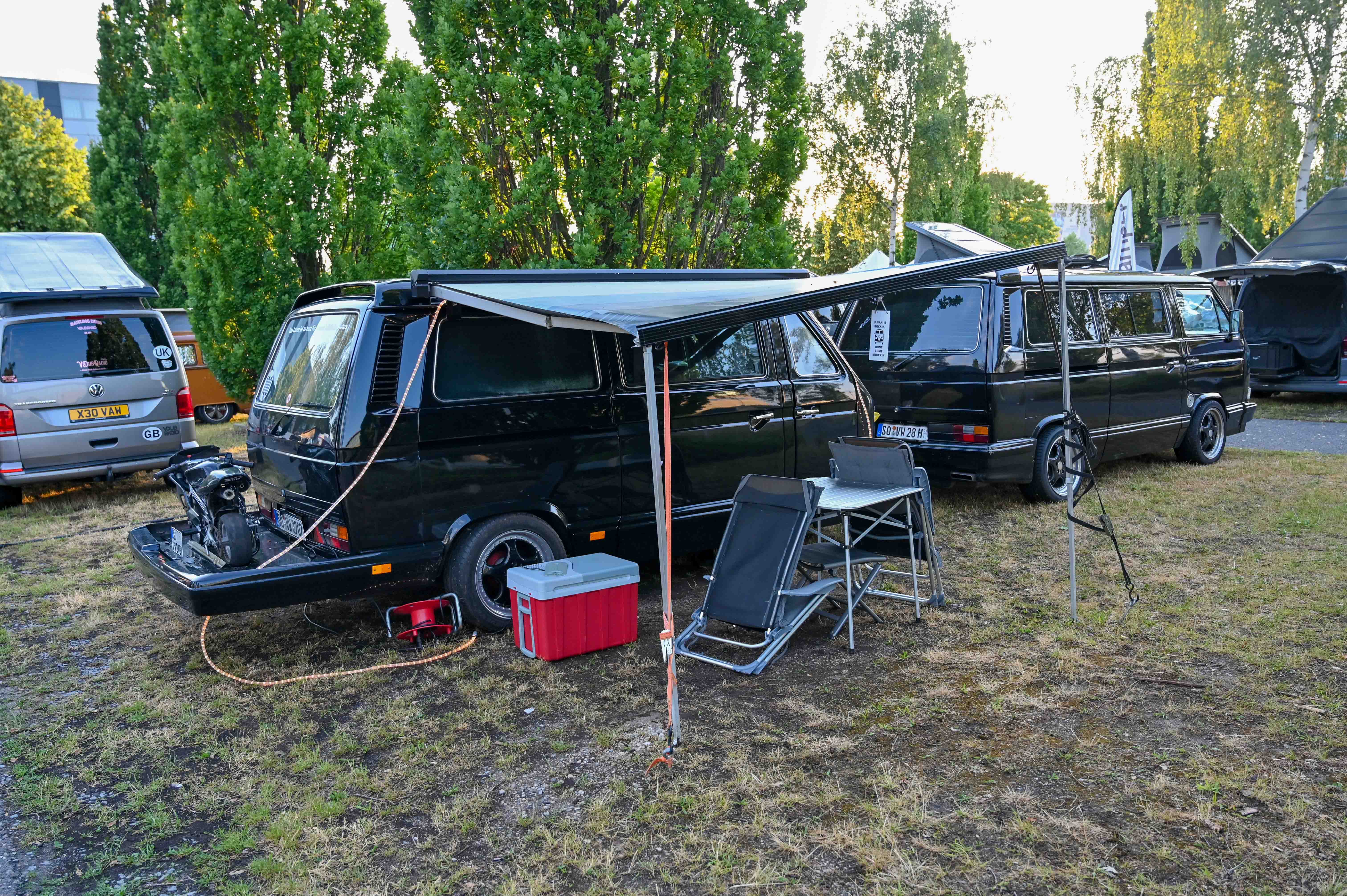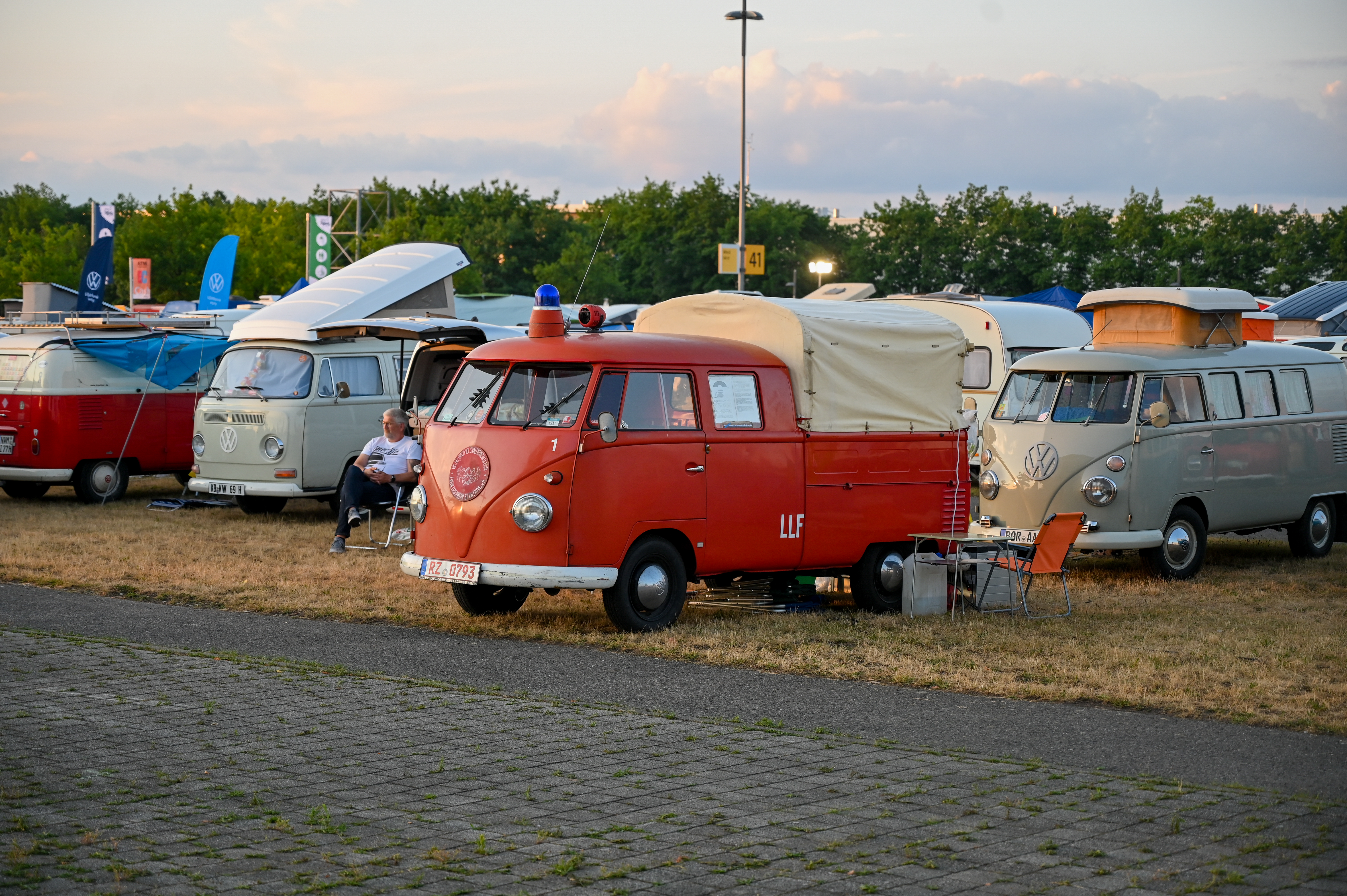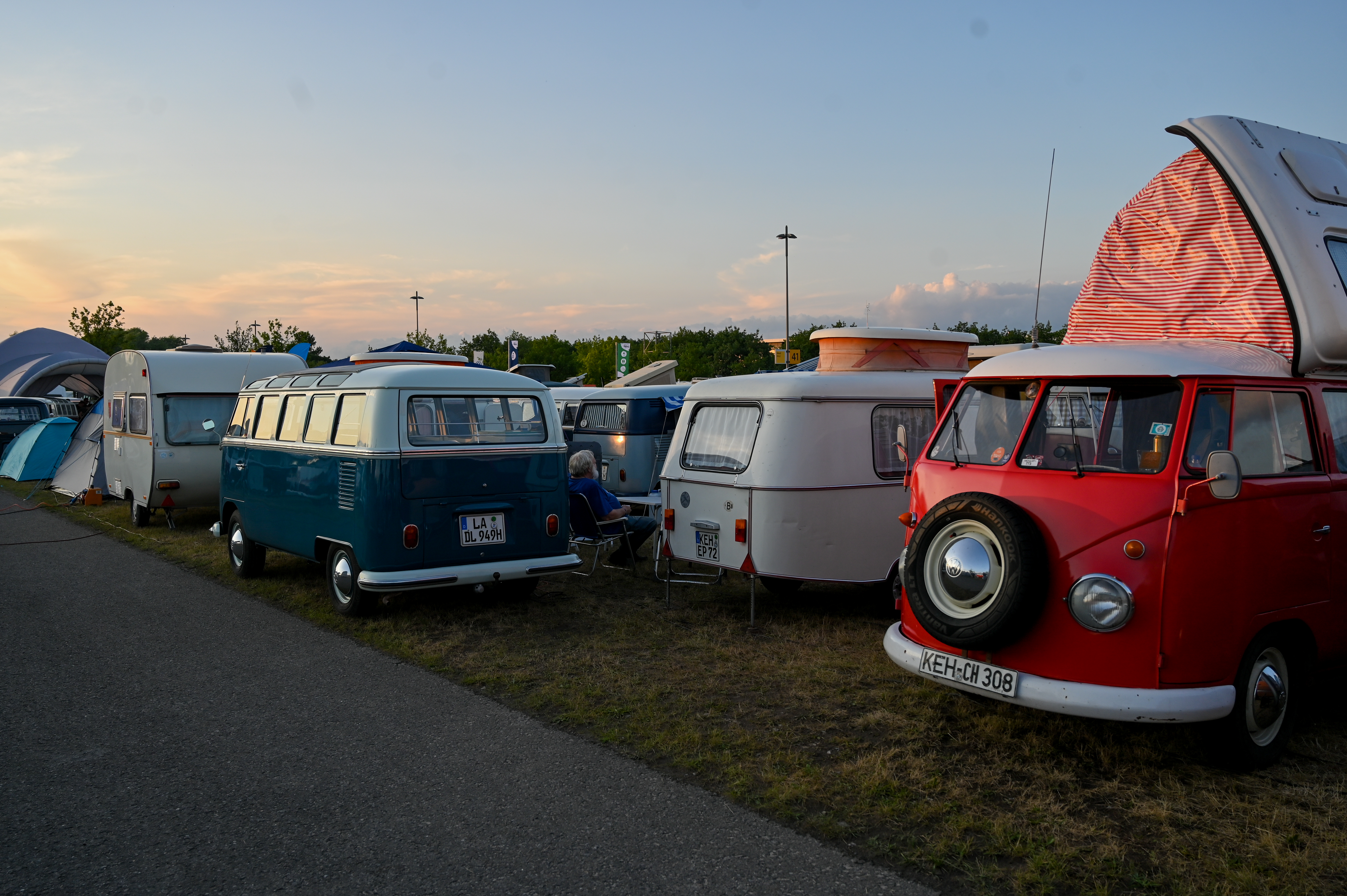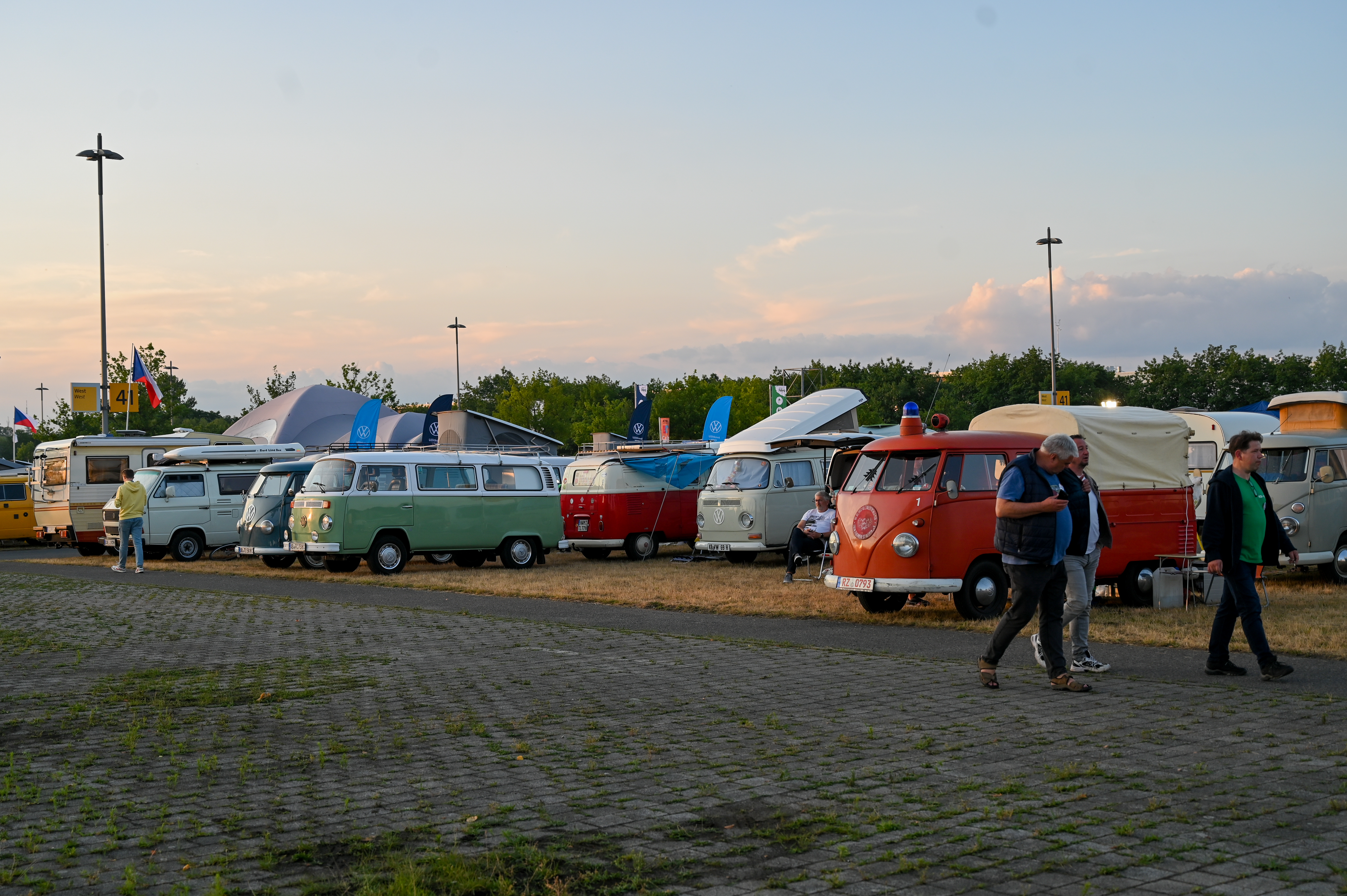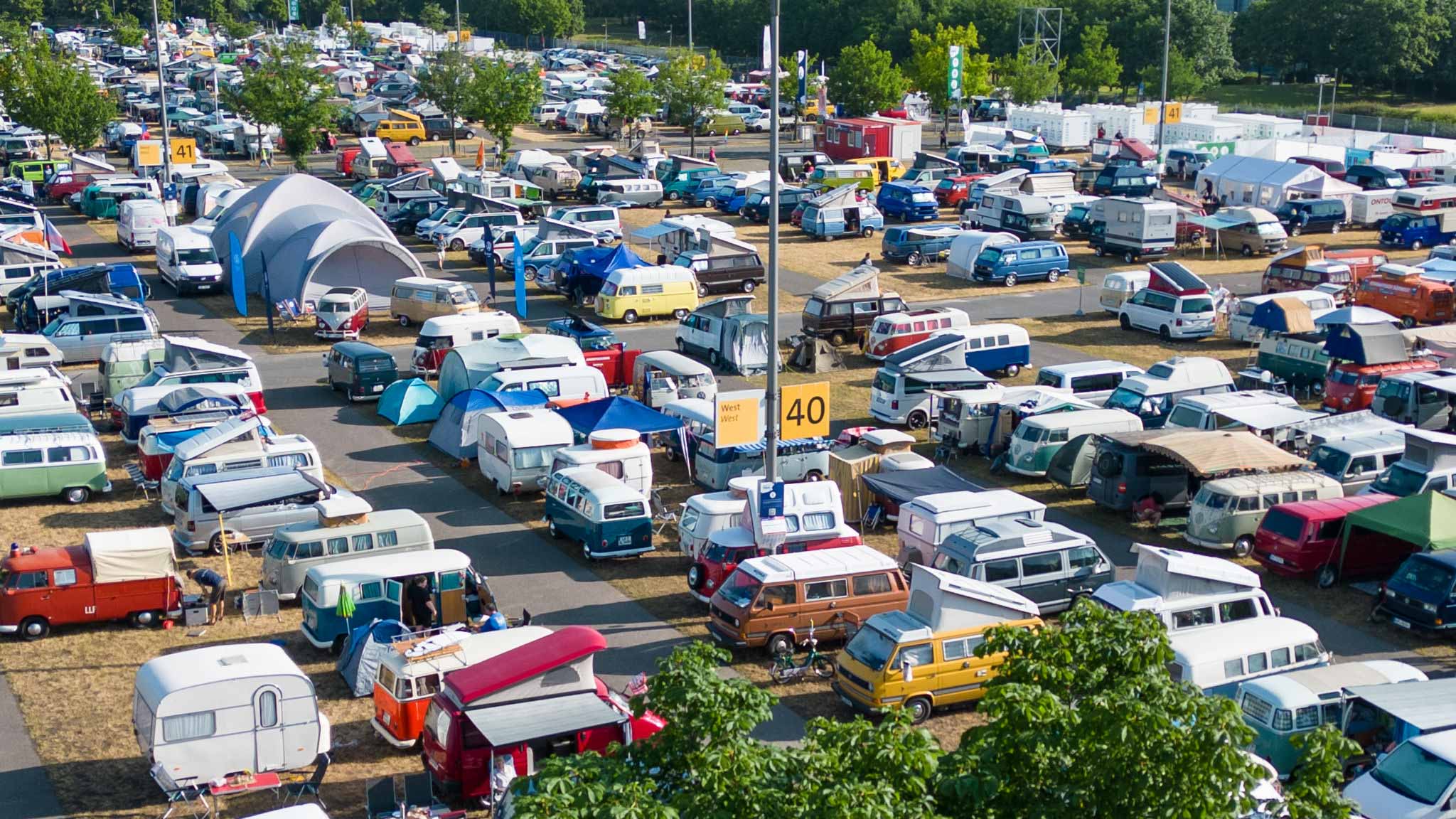 Prav neverjetno, koliko odlično ohranjenih, obnovljenih in nadgrajenih modelov T1, T2, T3 … smo videli na prizorišču. Kamp s 6000 parkirnimi parcelami je bil mesece pred začetkom festivala razprodan v vsega dveh tednih. V kampu je izključno v svojih bullijih, caravellah, multivanih, californijah in drugih izvedenkah serije T ter najnovejših električnih ID. buzzih bivalo približno 13.000 lastnikov in ljubiteljev teh kombijev. Parkirišče je bilo časovni stroj in je odsevalo in odzvanjalo širino avtomobilske duše tega kultnega kombija.