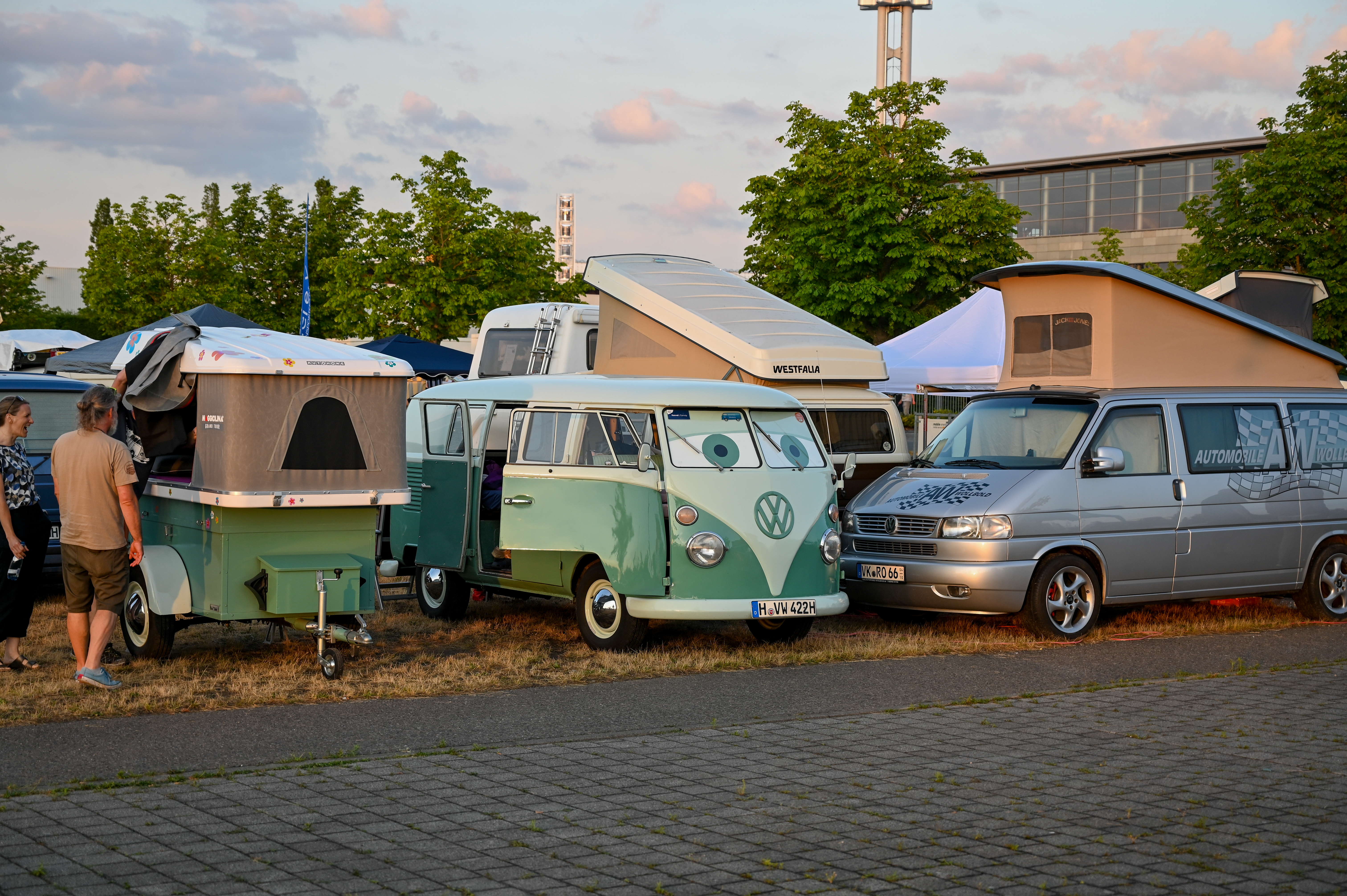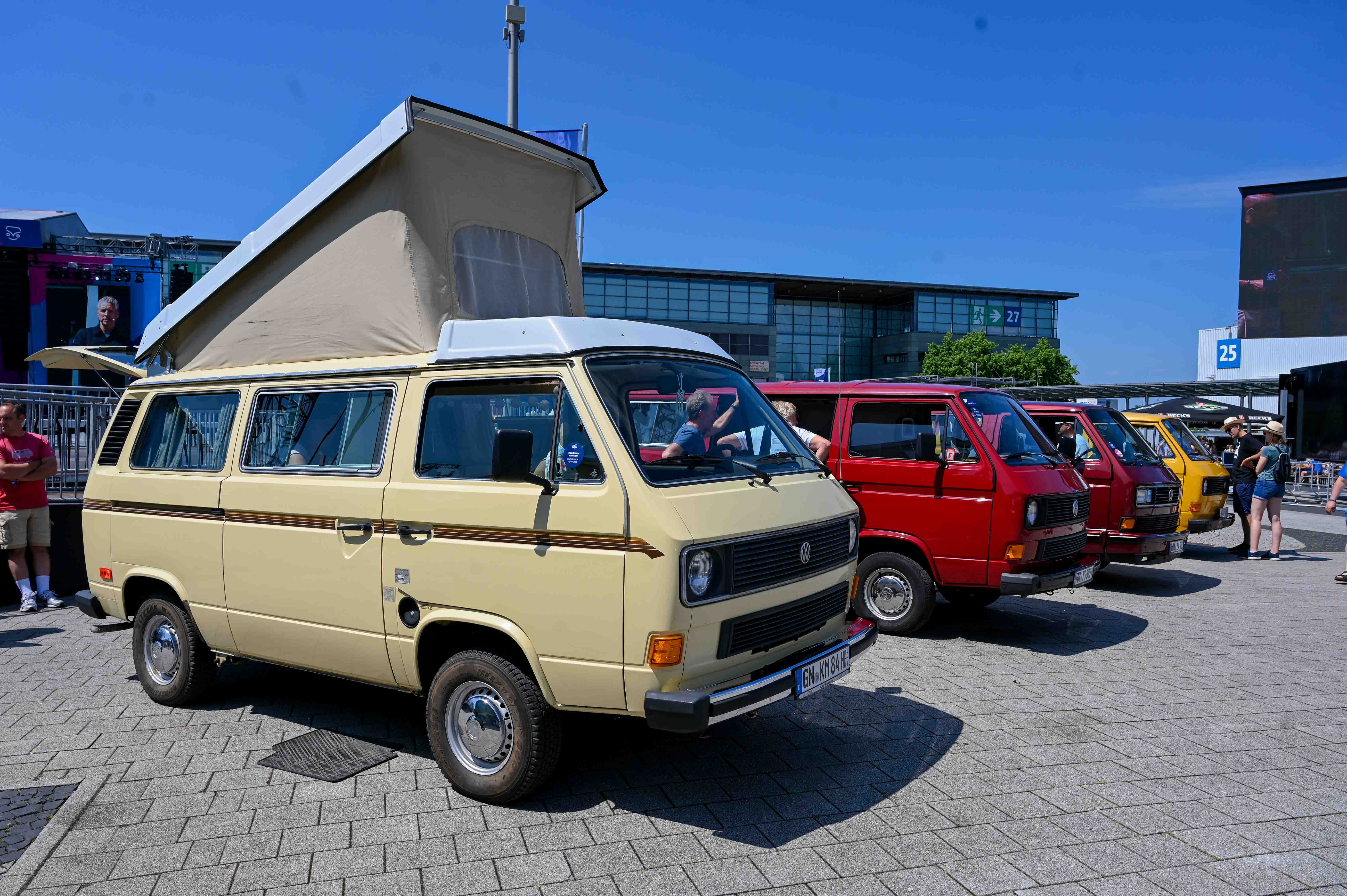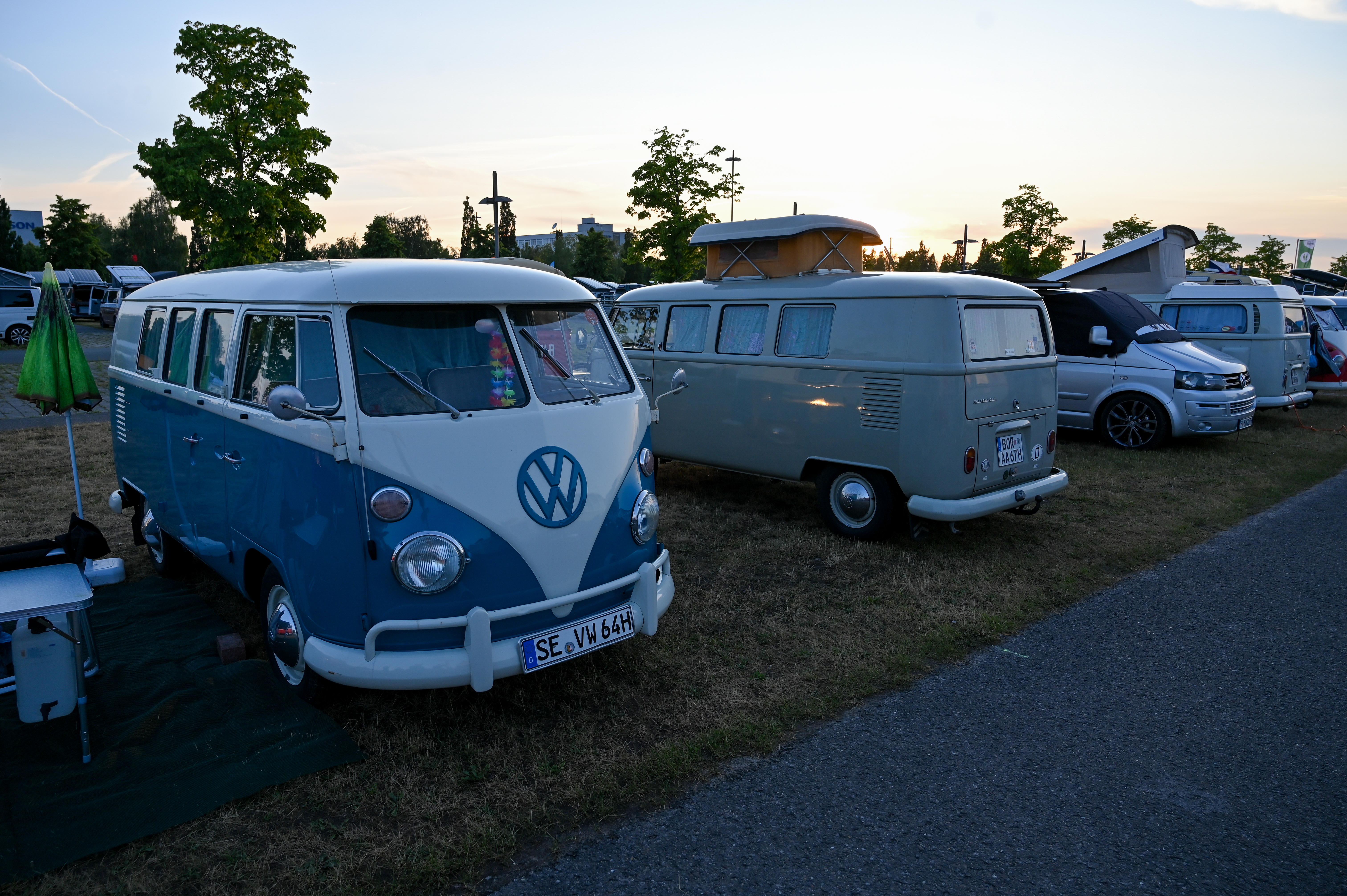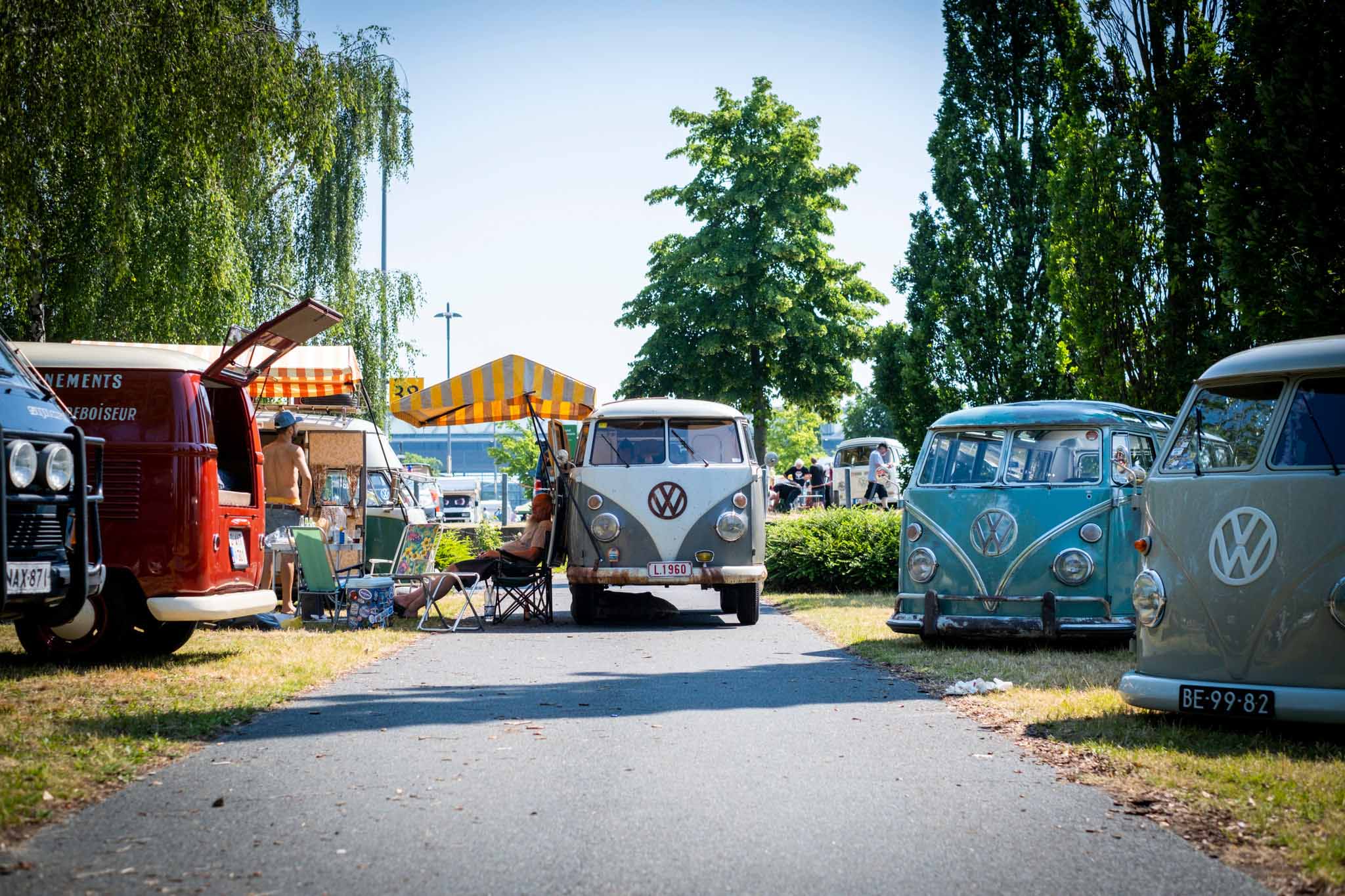 Prav neverjetno, koliko odlično ohranjenih, obnovljenih in nadgrajenih modelov T1, T2, T3 … smo videli na prizorišču. Kamp s 6000 parkirnimi parcelami je bil mesece pred začetkom festivala razprodan v vsega dveh tednih. V kampu je izključno v svojih bullijih, caravellah, multivanih, californijah in drugih izvedenkah serije T ter najnovejših električnih ID. buzzih bivalo približno 13.000 lastnikov in ljubiteljev teh kombijev. Parkirišče je bilo časovni stroj in je odsevalo in odzvanjalo širino avtomobilske duše tega kultnega kombija.