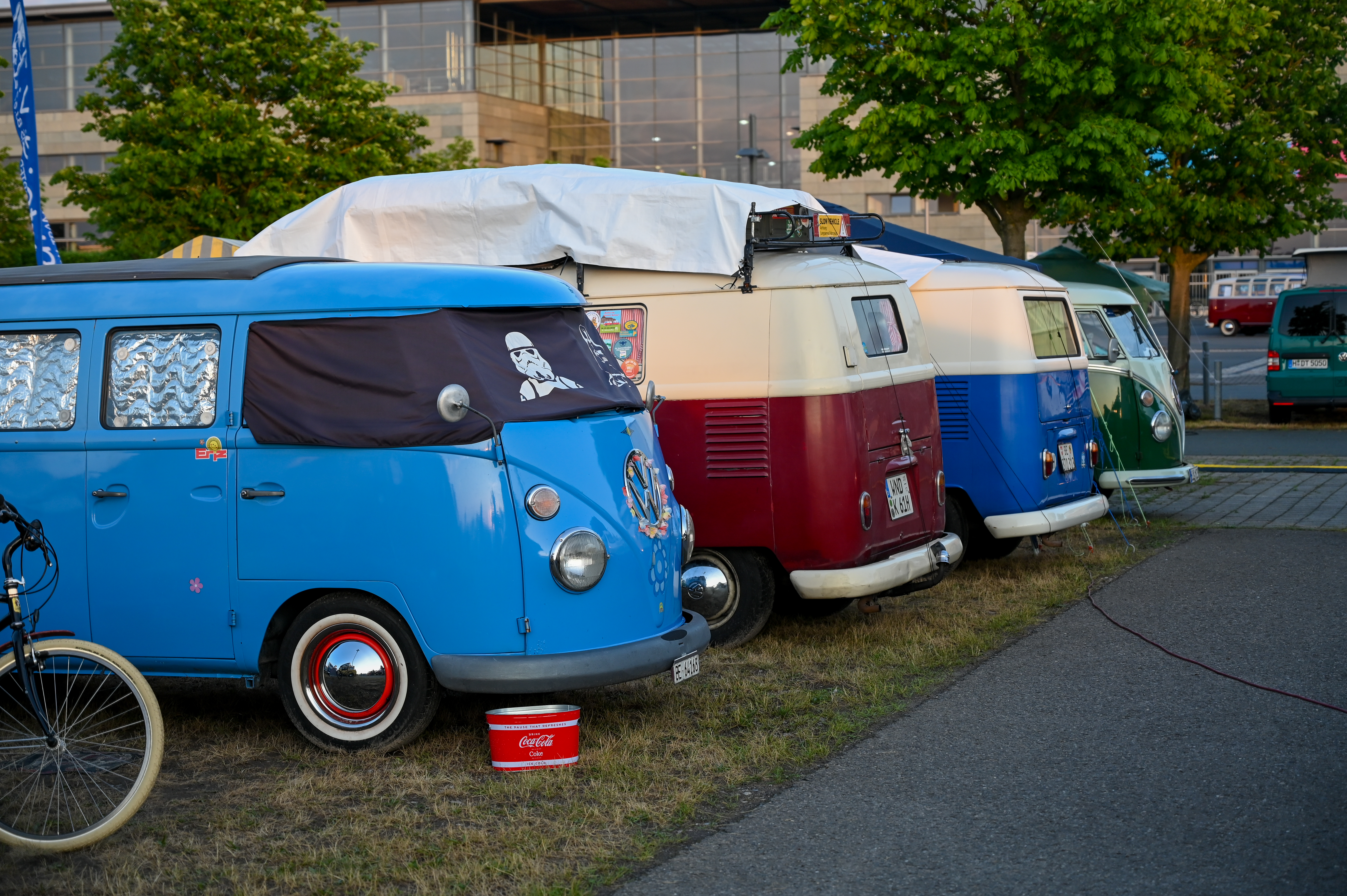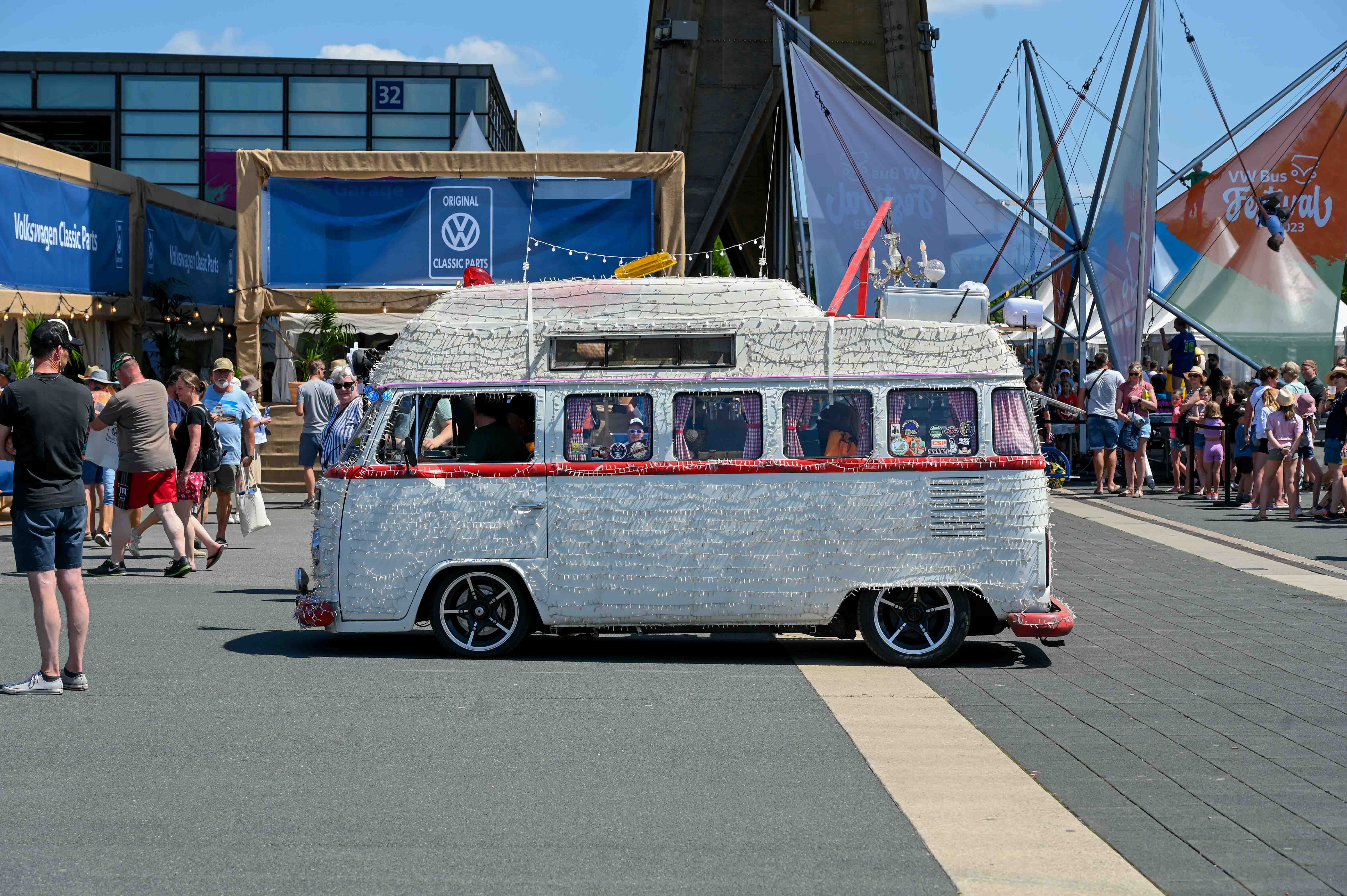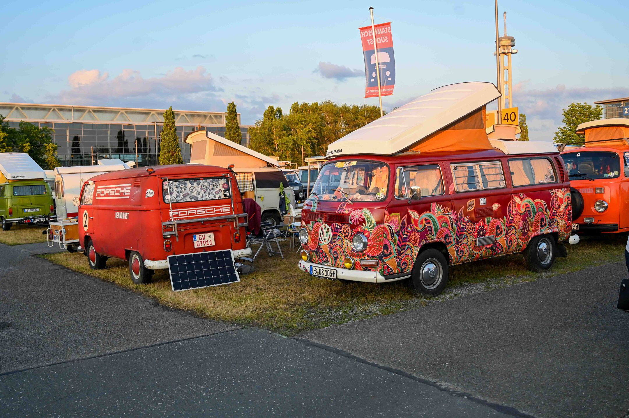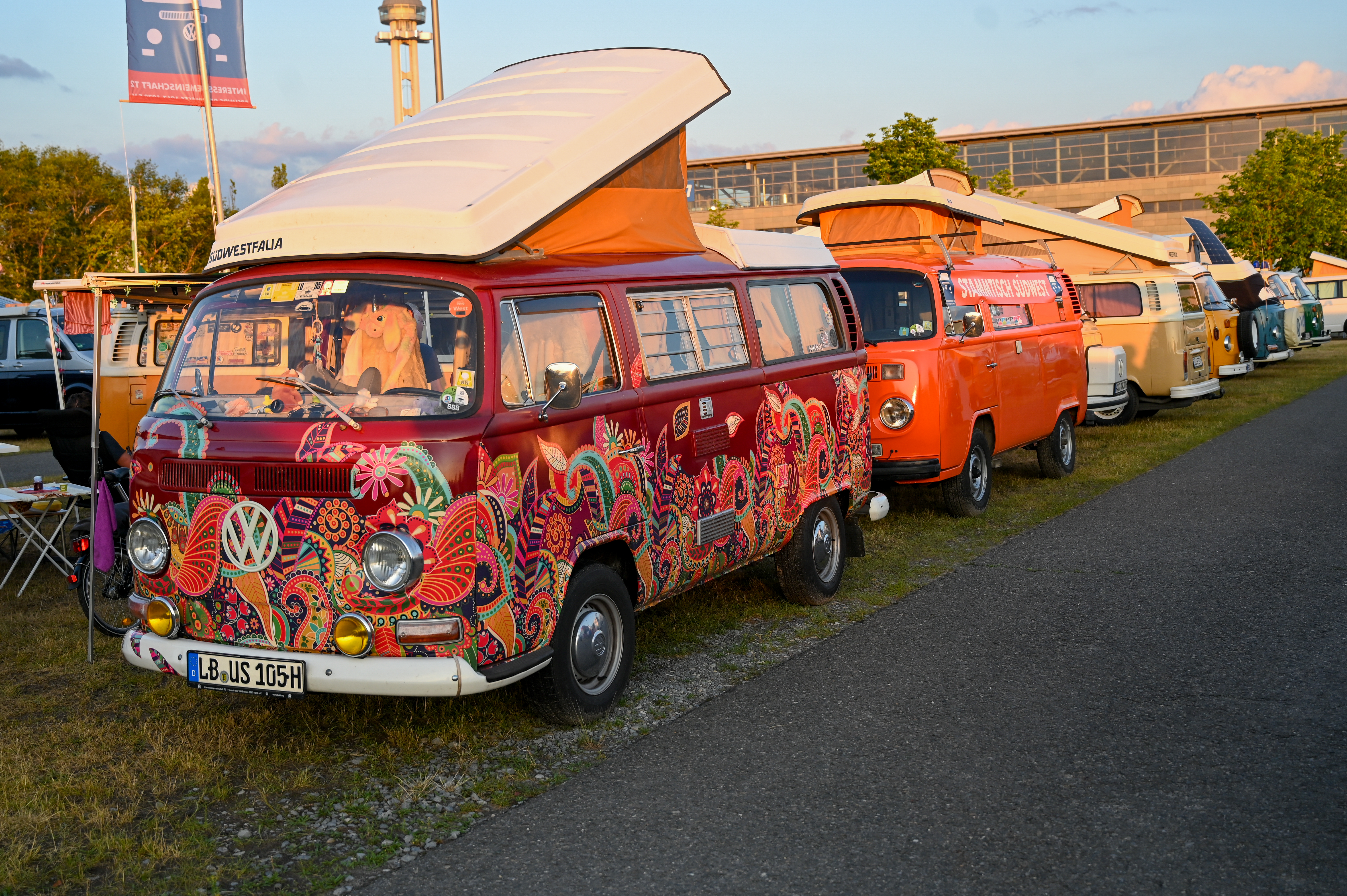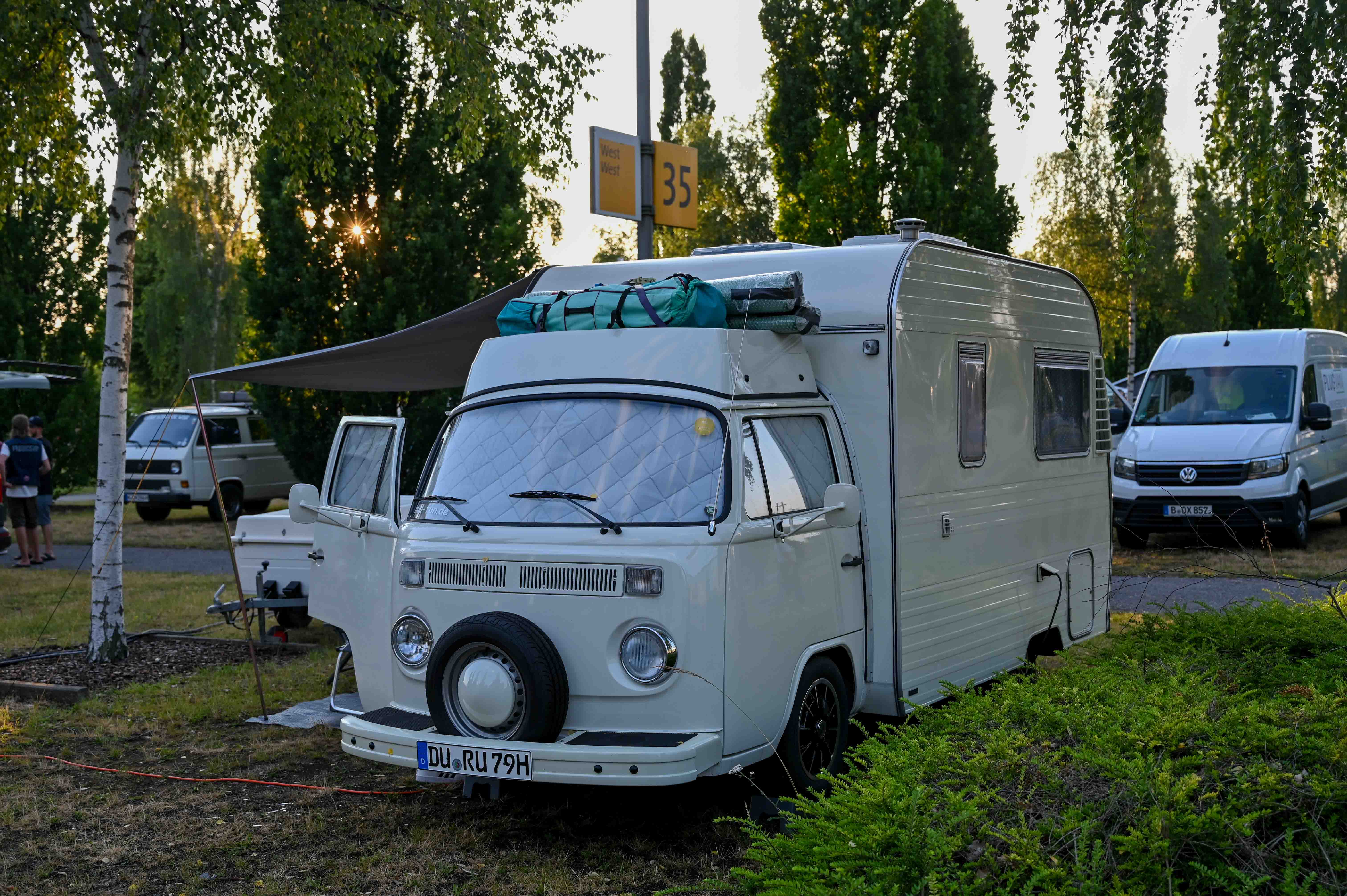 Prav neverjetno, koliko odlično ohranjenih, obnovljenih in nadgrajenih modelov T1, T2, T3 … smo videli na prizorišču. Kamp s 6000 parkirnimi parcelami je bil mesece pred začetkom festivala razprodan v vsega dveh tednih. V kampu je izključno v svojih bullijih, caravellah, multivanih, californijah in drugih izvedenkah serije T ter najnovejših električnih ID. buzzih bivalo približno 13.000 lastnikov in ljubiteljev teh kombijev. Parkirišče je bilo časovni stroj in je odsevalo in odzvanjalo širino avtomobilske duše tega kultnega kombija.