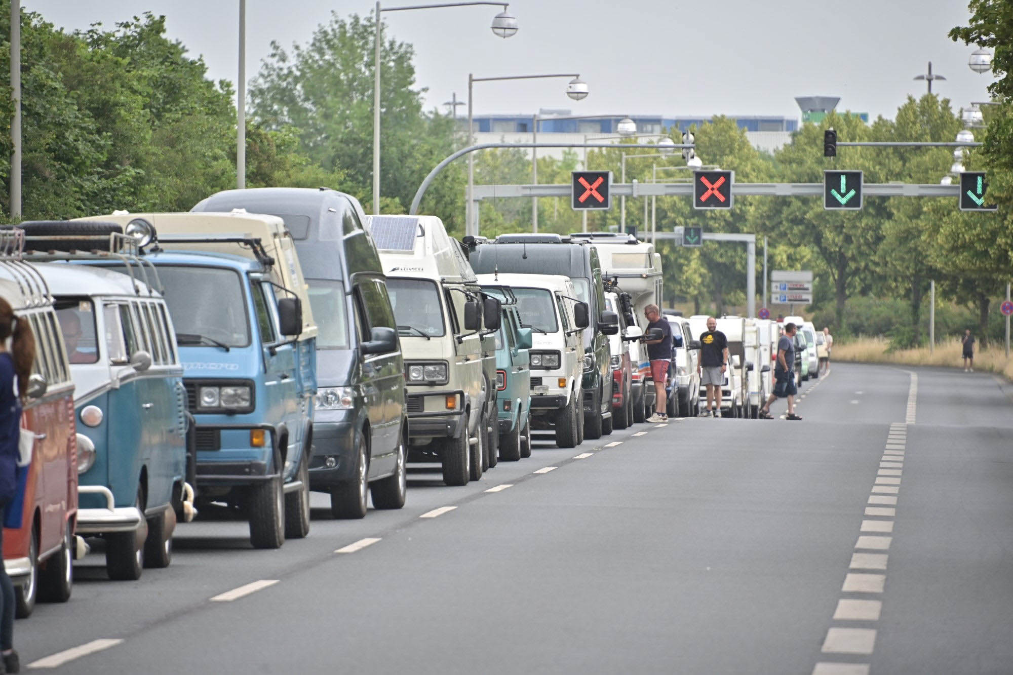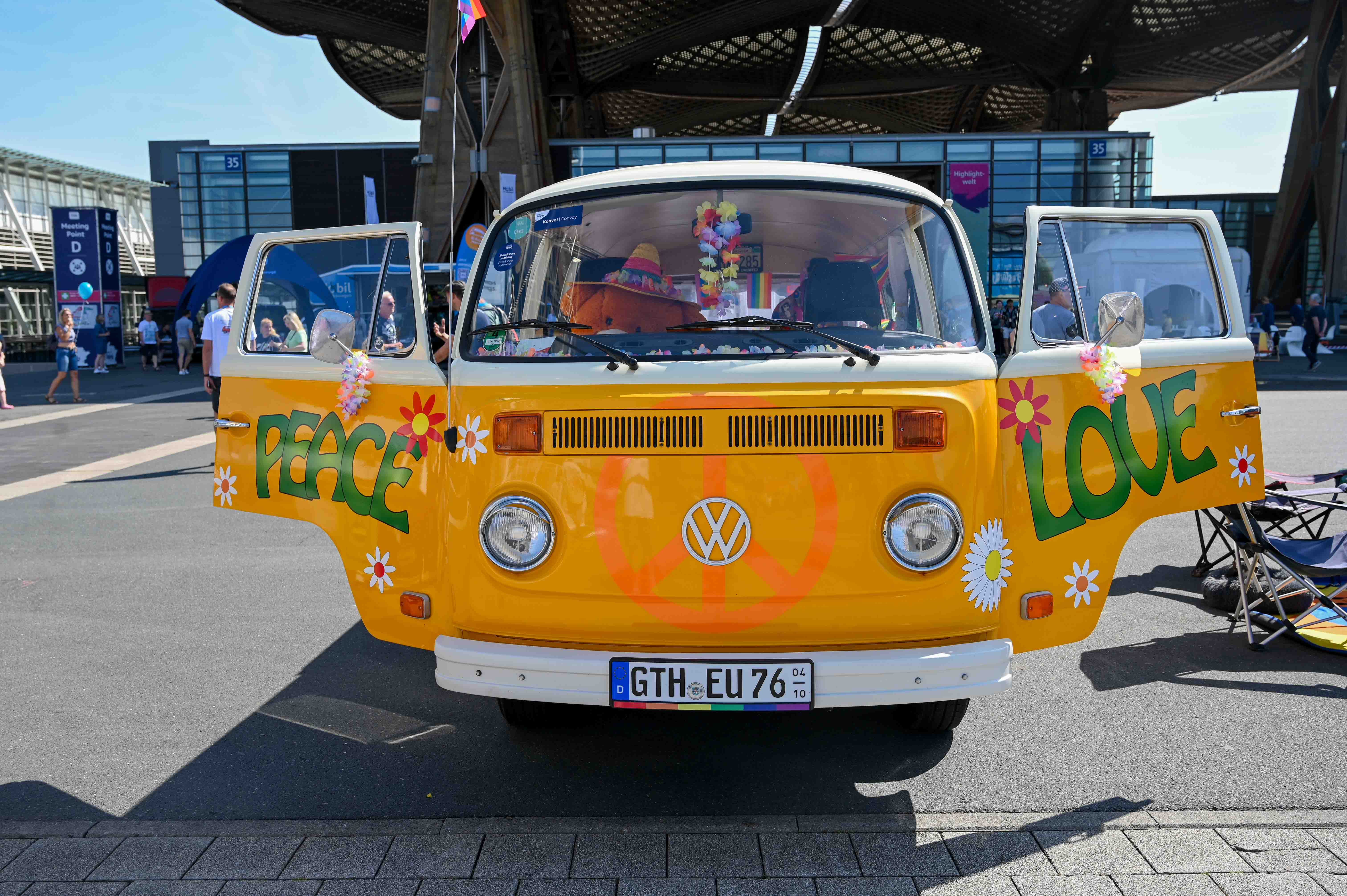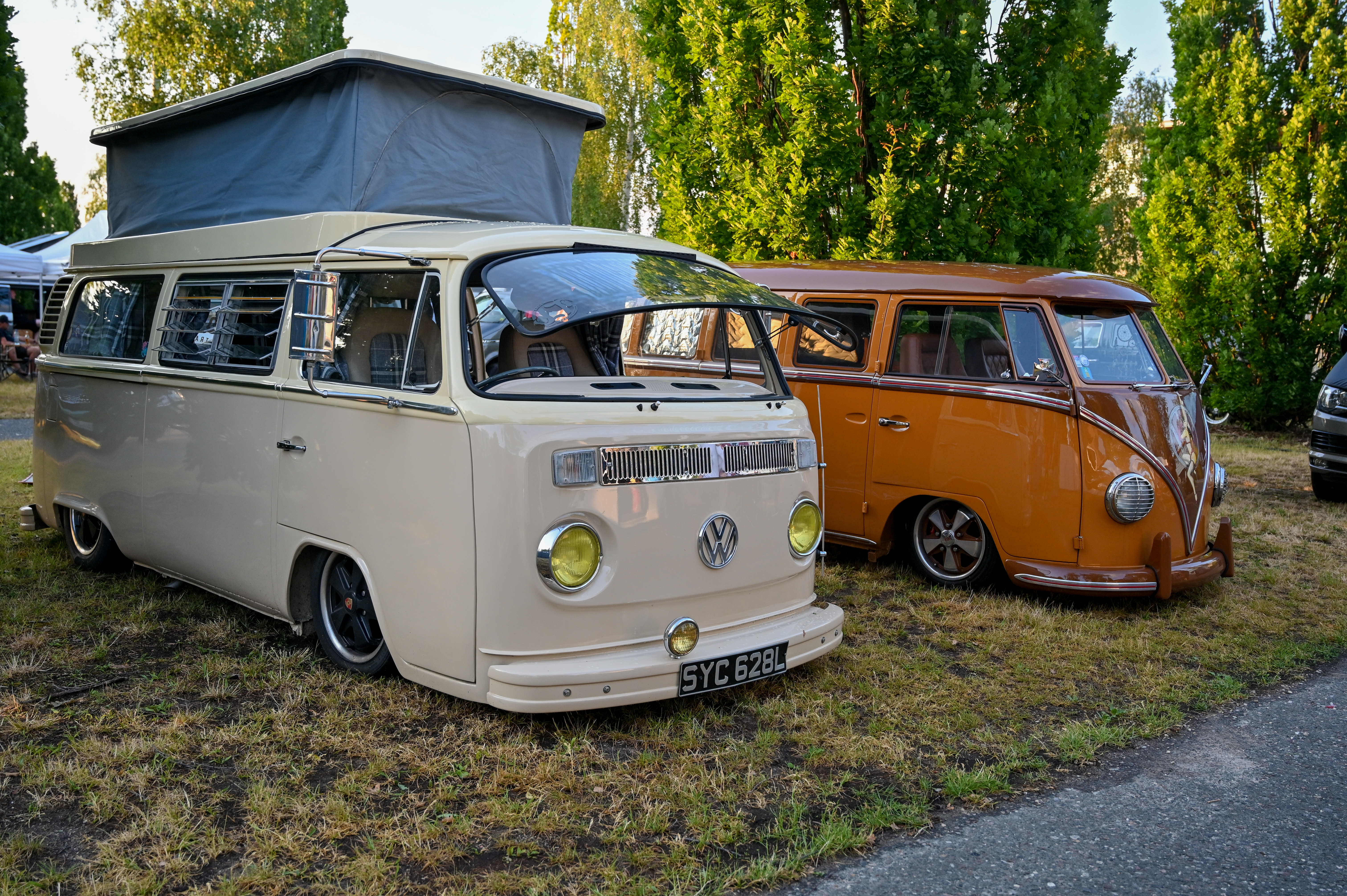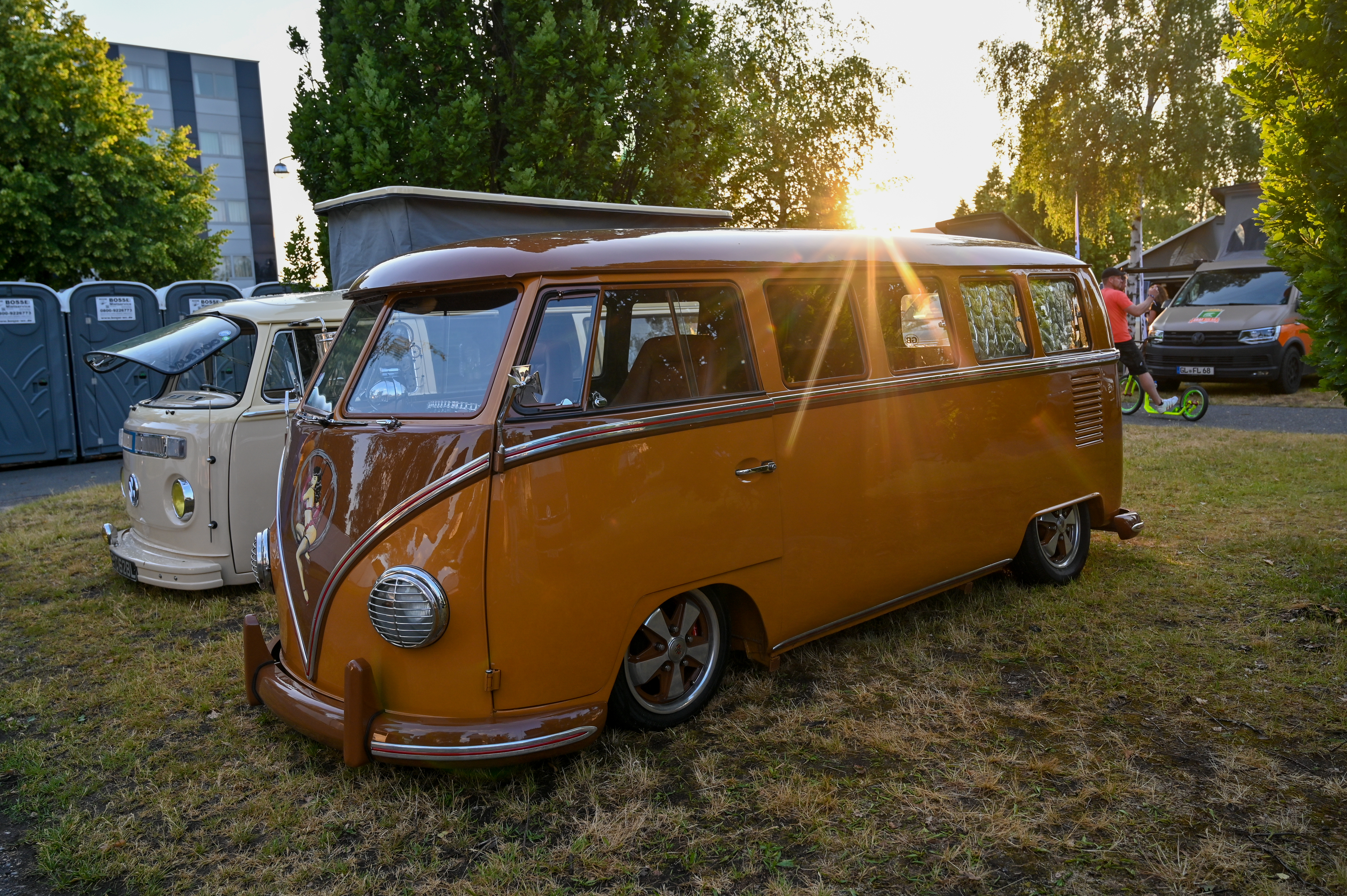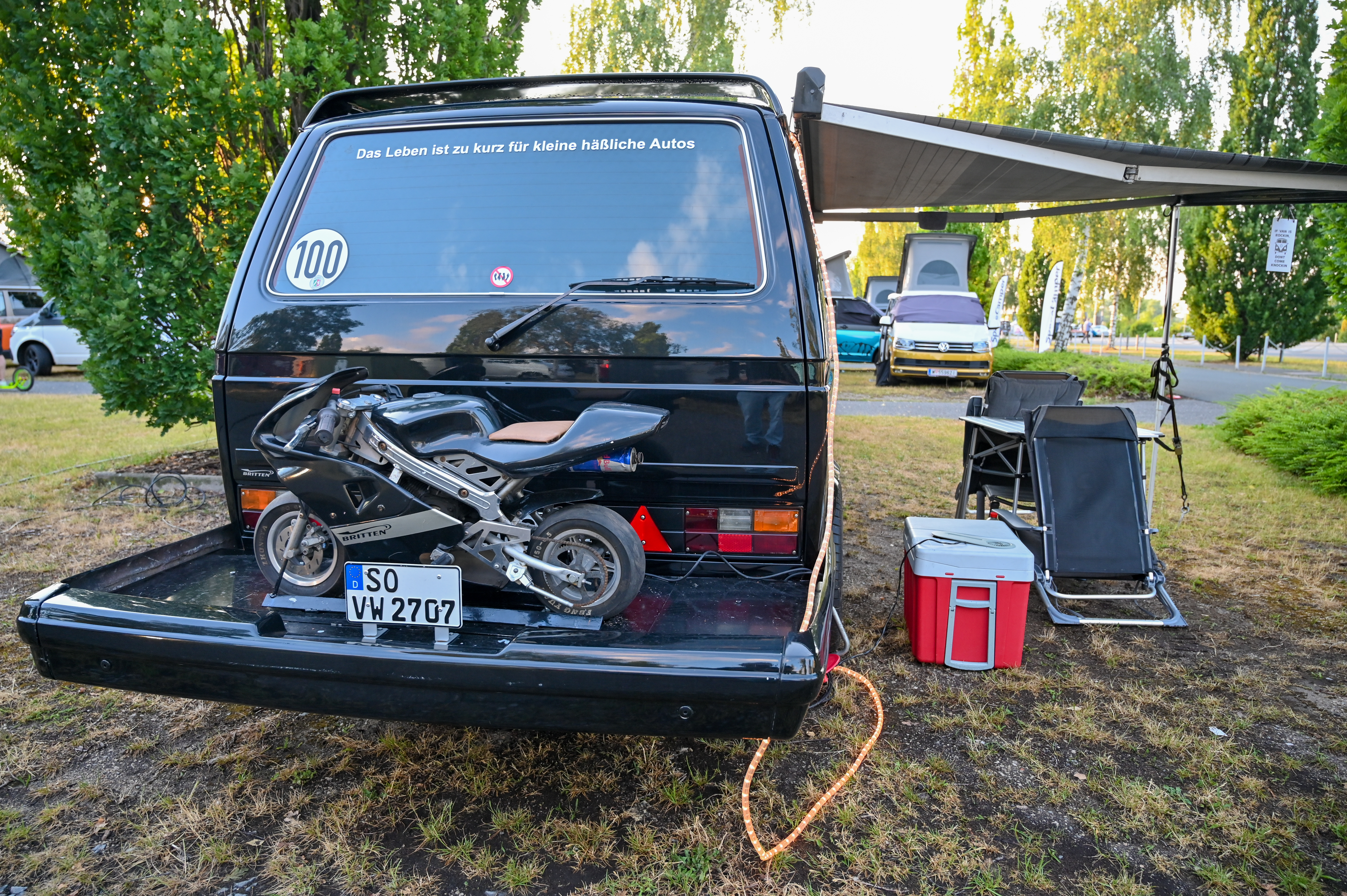 Prav neverjetno, koliko odlično ohranjenih, obnovljenih in nadgrajenih modelov T1, T2, T3 … smo videli na prizorišču. Kamp s 6000 parkirnimi parcelami je bil mesece pred začetkom festivala razprodan v vsega dveh tednih. V kampu je izključno v svojih bullijih, caravellah, multivanih, californijah in drugih izvedenkah serije T ter najnovejših električnih ID. buzzih bivalo približno 13.000 lastnikov in ljubiteljev teh kombijev. Parkirišče je bilo časovni stroj in je odsevalo in odzvanjalo širino avtomobilske duše tega kultnega kombija.