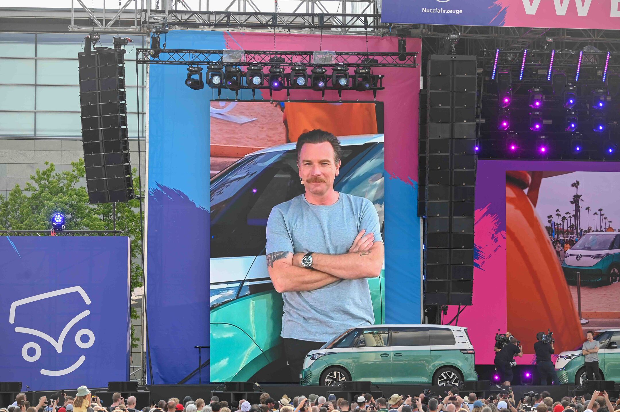 Seveda pa se danes pri Volkswagnu še kako zavedajo moči “ljudske” skupnosti, ki se je zgradila okoli modelov serije T. Zato so bullija na novo zgradili tudi na svoji prilagodljivi električni platformi MEB in za evropsko premiero podaljšane različice električnega ID. buzza s 25 cm daljšo medosno razdalo izbrali prav veliki festivalski oder v Hannovru. Skoraj pet metrov dolgega buzza (496,2 cm) pa je na oder pred številne ljubitelje znamke pripeljal filmski zvezdnik sage Vojne zvezd Ewan McGregor. Škotski igralec je seveda požel navdušen aplavz, ko je množici pod odrom zaupal svojo osebno avtomobilsko zgodbo, v kateri je glavno vlogo odigral VW hrošč iz sedemdesetih let, ki je bil prvi avto slavnega Škota.