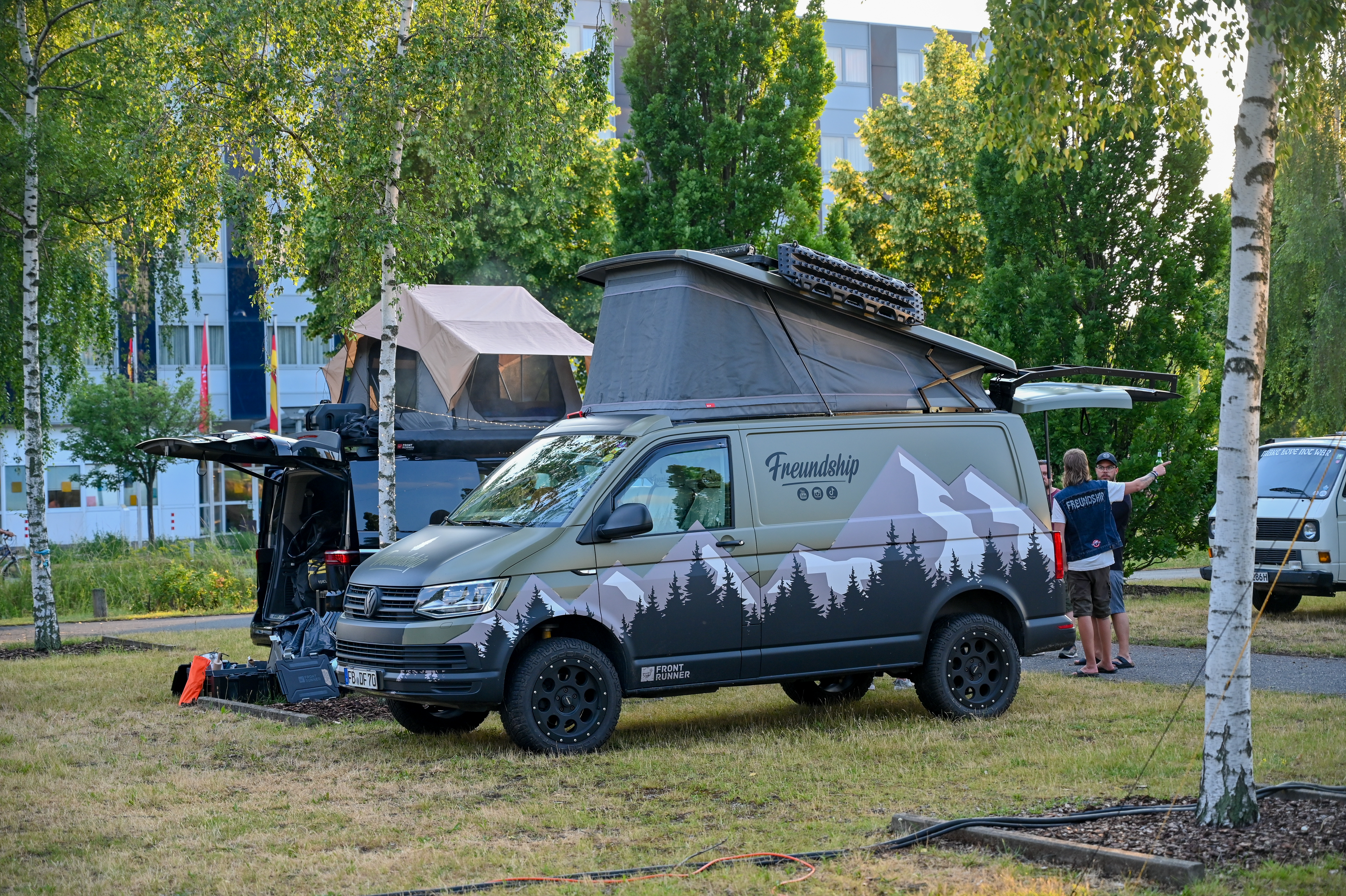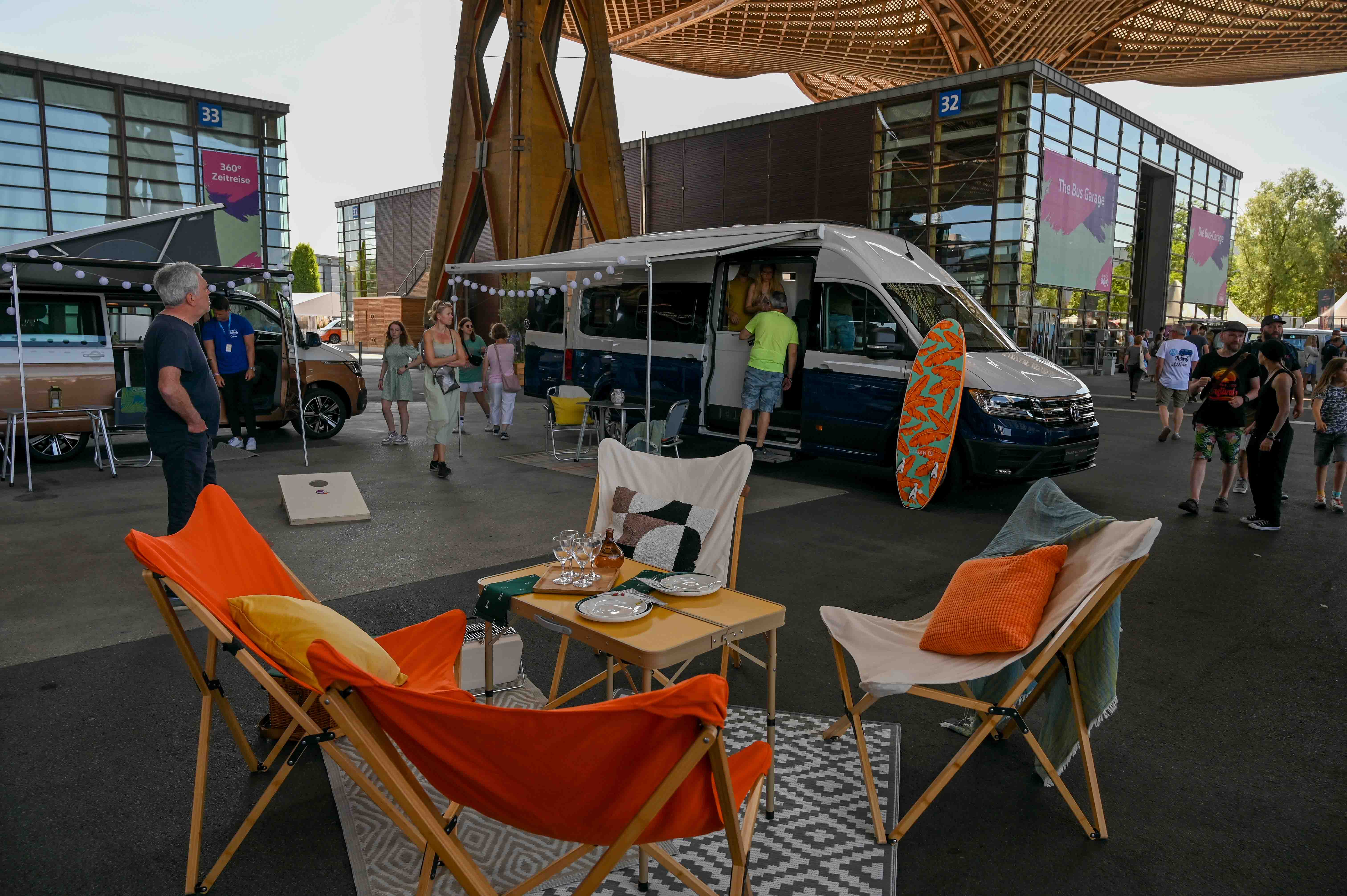 Pri Volkswagnu so seveda na festivalu ponudili tudi mobilni bazni tabor v tovarniških izvedbah bivalnih nadgradenj na multivanu, crafterju in caddyju. Modeli california bodo kmalu dobili tudi nadaljevanje na sedmi generaciji multivana in na električnem modelu ID. buzz, ki v podaljšani različici ponuja dovolj prostora za popotniško bivanje na kolesih. Kot zaislni bivak, pa celo v krajši različici že ponuja spodobno nočitev za dva, kar smo preskusili tudi v našem testu.
