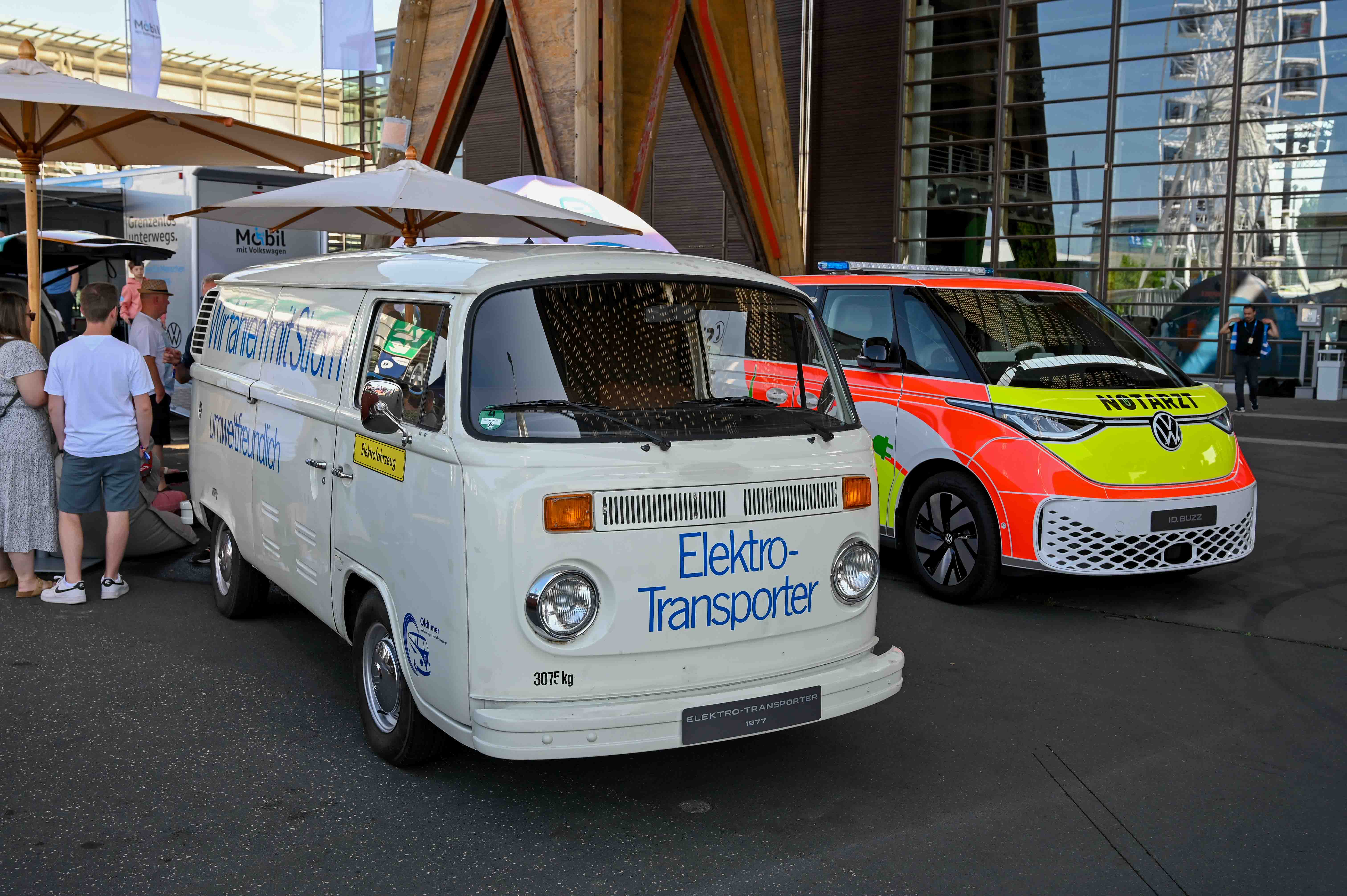 Podaljšanega ID. buzza pa so na ogled potencialnim kupcem v paviljonu razstavil ob legendarnem in čudovito obnovljenem samba busu iz petdesetih oziroma šestdesetih let s kar 23 okni v karoseriji. S tem so Volkswagnovi strategi spretno poudarili vse prednosti nove arhitekture, ki na sodoben način povzema tradicijo slavnega bulija. Ta neverjetni potencial ikone smo opazili tudi na testu najnovejšega električnega ID. buzza ko so k nam pristopali ljudje in v jih v resnici ni zanimala ne cena ne doseg, ampak stik z avtom.