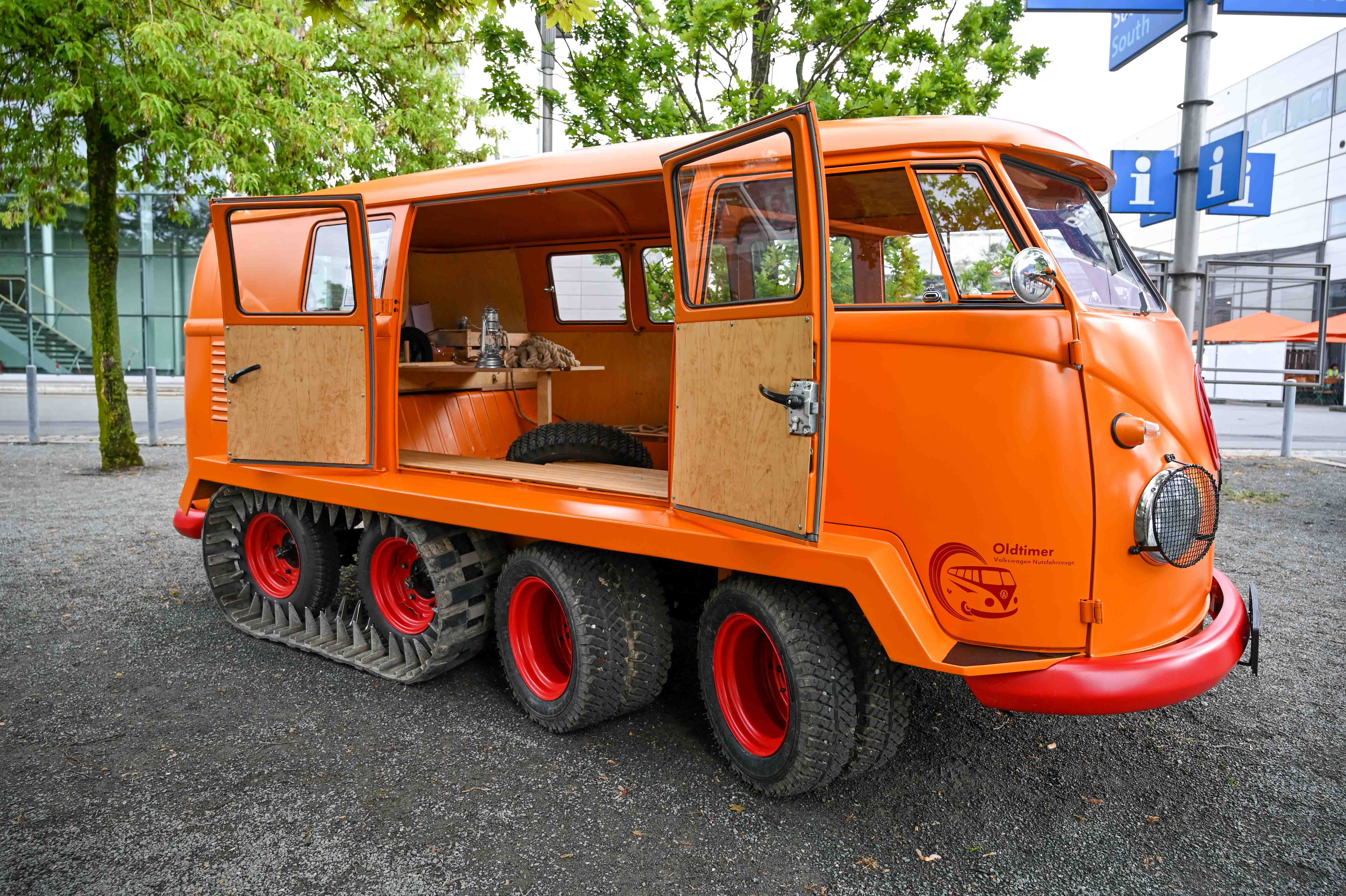 | 1968 - VW T1 half-track fox: polgoseničar oziroma smučarski bulli je nastal iz povsem običajnega T1, ki so ga izdelali v Hannovru in poslali k trgovcu v Avstrijo. Tam pa ga je ob pomoči Volkswagnovega izkušenega mehanika predelal Kurt Kretzner, menda navdušen smučar. Dobil je štiri osi, na zadnjih dveh pa še gosenice po vzoru teptalca in postal specialist za strme zasnežene alpske ceste. Za polkrožni obrat mu je zadostovalo le 6 m prostora. Predelani so bili le trije, Volkswagen pa je rešil, odkupil in obnovil le enega. Polgoseničar je zmogel 40 km/h, poganjal ga je serijski 1,4-litrski bokser motor z 31 kW. |