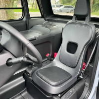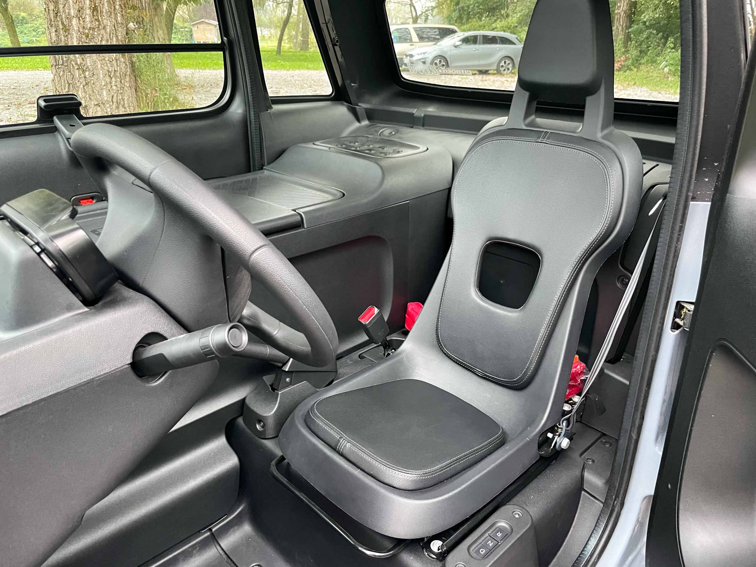 Voznikov sedež je preproste plastične konstrukcije, nastavljiv je le po dolžini, sicer pa tanki gumeni oblogi na sedalu in naslonjalu ne ponujata udobja: za plastičnim volanskim obročem je sedenje sicer ergonomsko pravilno, a na daljših vožnjah tudi precej neudobno. V avtu vseskozi malce piha, poleti je zaradi steklene strehe vroče, pozimi verjetno hladno, čeprav ima ami ventilator z grelnikom, ki je usmerjen v vetrobransko steklo.