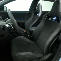 Filozofija oznake N je posegla tudi v notranjost avtomobila. Spredaj sta odlična športna školjkasta sedeža, ki odločno, a še vedno zelo udobno objameta in podpreta telo. V voznikove roke lepo sede športni trikraki volan, oblečen v perforirano usnje, na katerem so vsa ključna in še vedno klasična mehanska stikala za nadzor pogona, pa tudi obvolanski ročici za nadzor stopnje rekuperacije oziroma upravljanje virtualnega 8-stopenjskega N e-shift menjalnika, ki ob vklopu športnega oziroma dirkaškega programa simulira delovanje športnega menjalnika DCT z dvema sklopkama. Da, prav ste prebrali: čeprav ioniq 5 N nima menjalnika, pač pa reduktorski prenos, se na zahtevo odziva, kot bi imel menjalnik. A o tem malce pozneje.