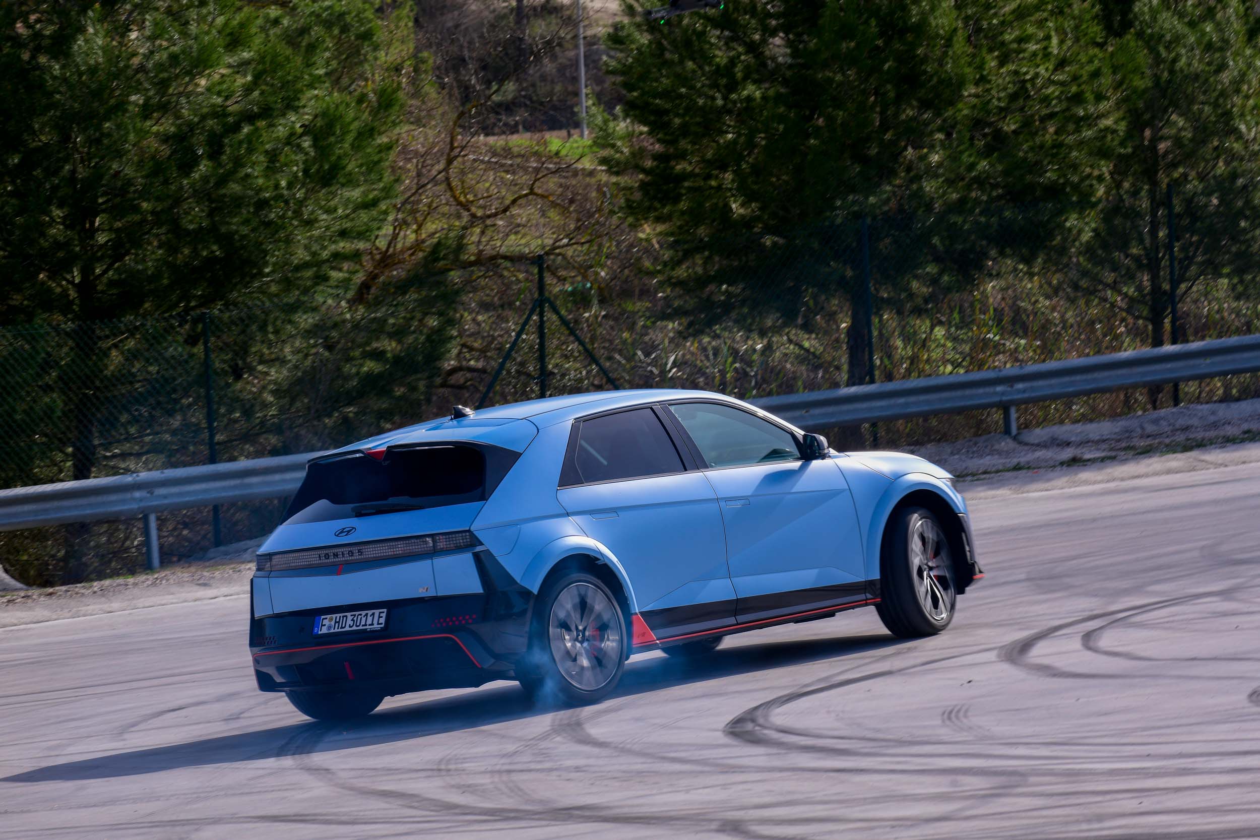 Težko je ubesediti, kaj se zgodi, ko z nekaj kliki na osrednjem zaslonu in pritiski na štiri ključna stikala na volanu spremeniš značaj in odziv avtomobila. Šele ko so Pirellijeve pnevmatike, ki so ob surovih udarcih navora in pojemkov 2,2 tone težkega električnega športnika, preživljale peklenske trenutke, začele kazati znake obrabe, se zaveš, da to ni lahkoten i20 N ali i30 N.