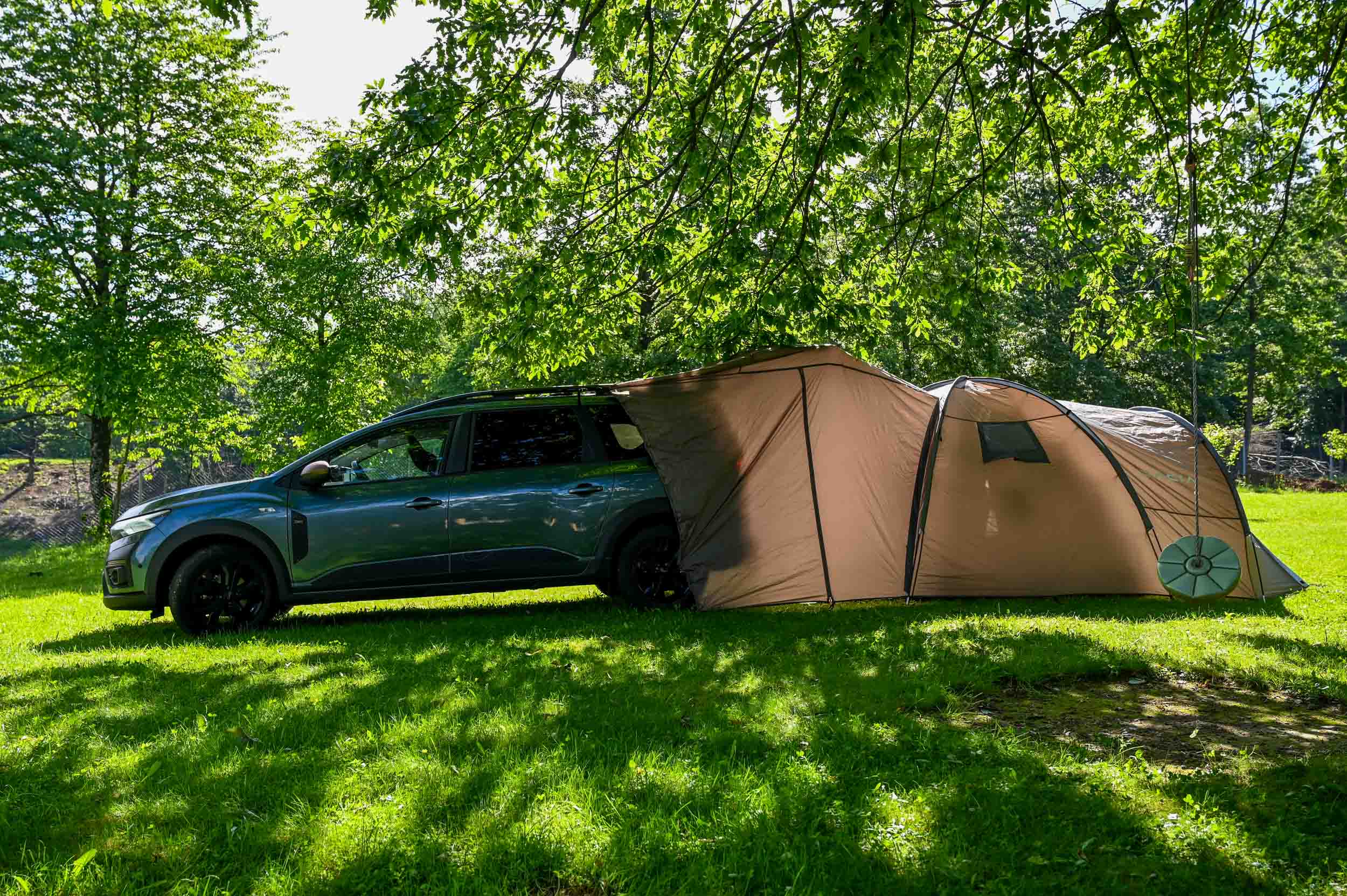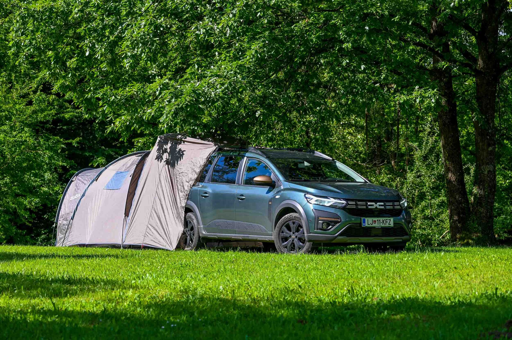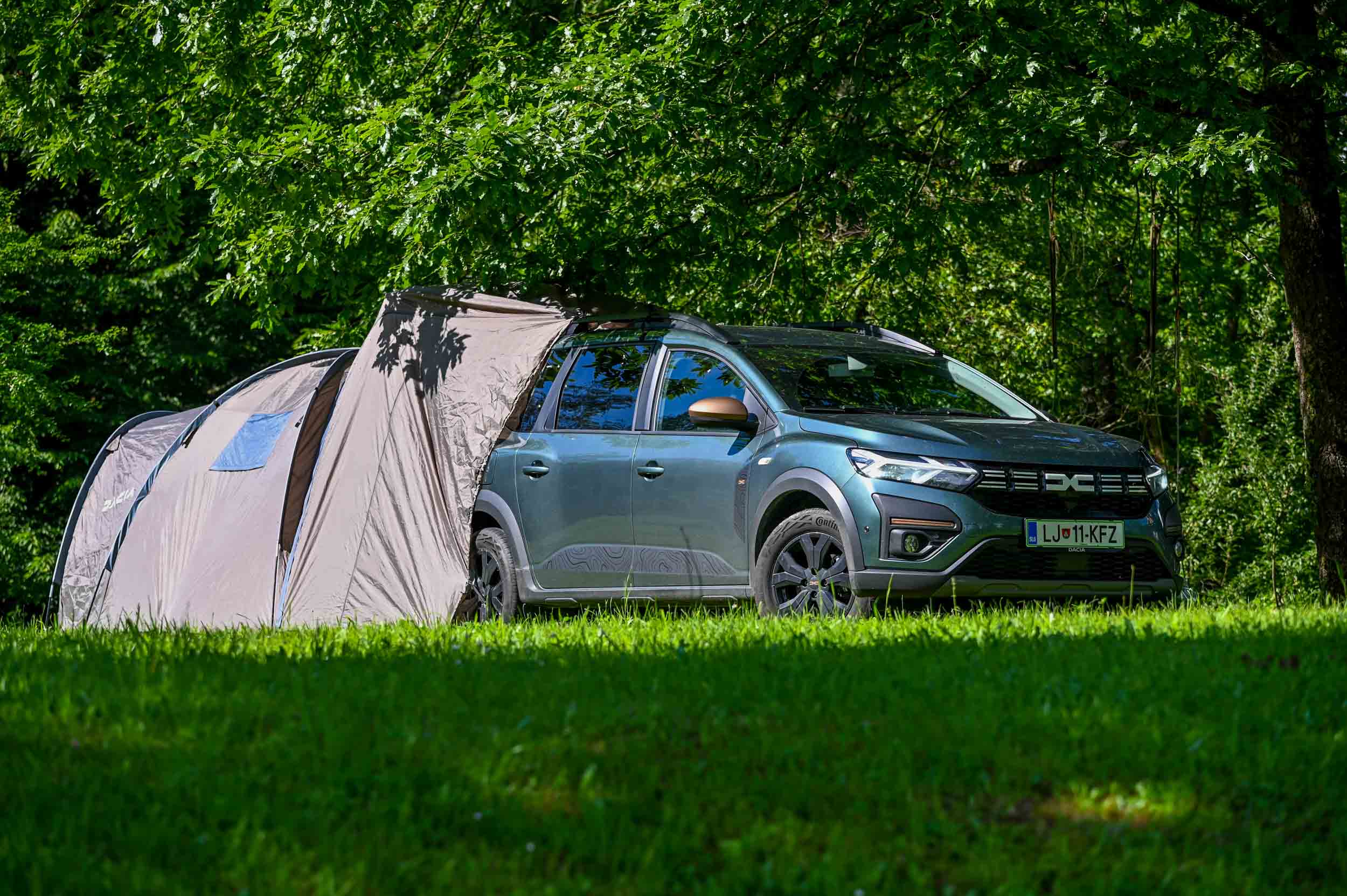Pri Motoreviji smo preizkusili že veliko rešitev počitniškega bivanja na kolesih, še nikoli doslej pa nismo prtljažnika povsem običajnega družinskega avtomobila v petih minutah spremenili v čisto pravo posteljo. Dacia jogger je najmanjši avtomobilski avtodom, v katerem je mogoče prespati kjerkoli. Avtomobilsko potovanje v dvoje bo s tem Daciinim spalnim paketom marsikoga zapeljalo v povsem novo dimenzijo počitniške svobode na poti. Ni prav veliko družinskih avtomobilov s posteljo in šotorom v prtljažniku.