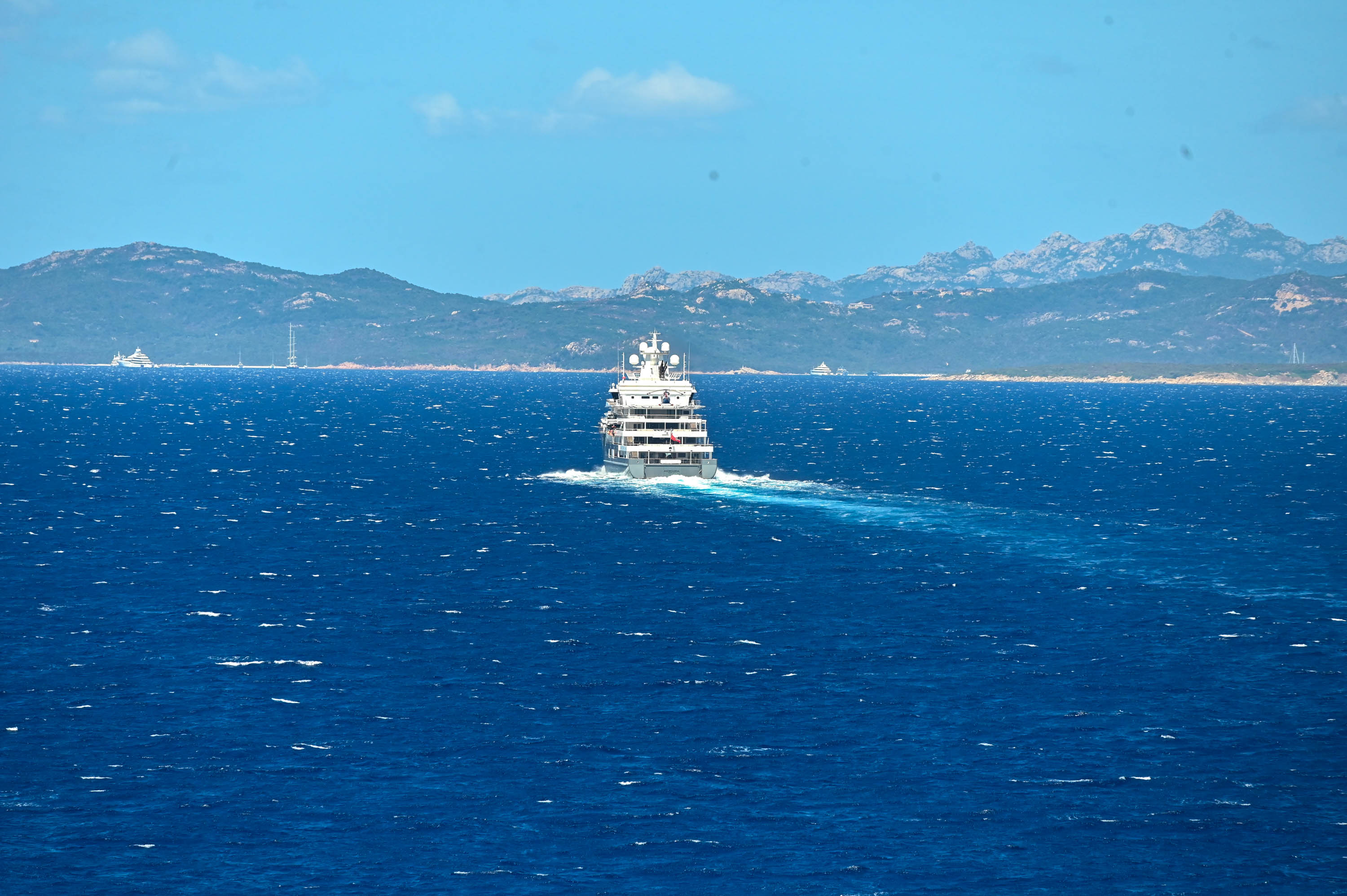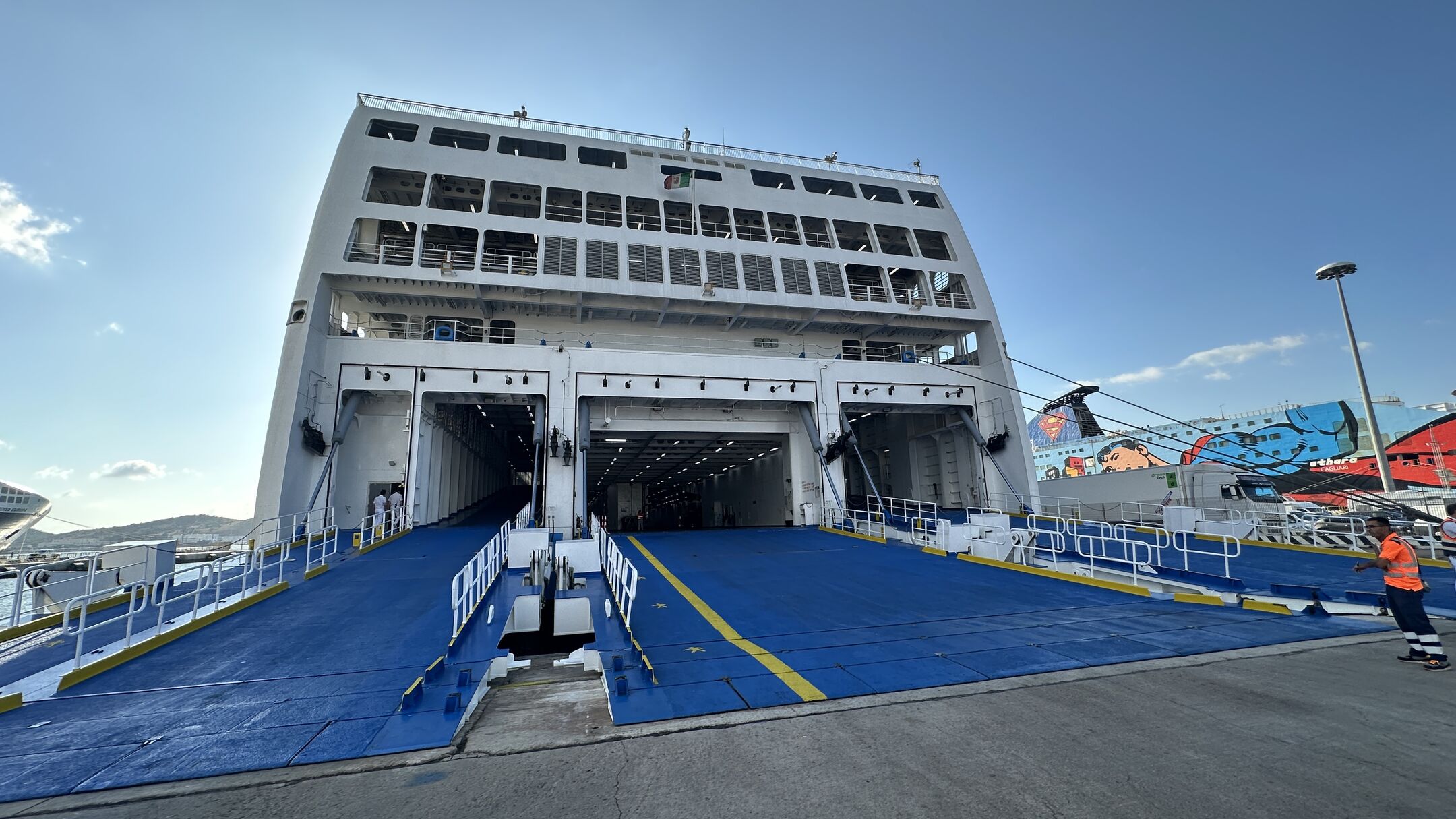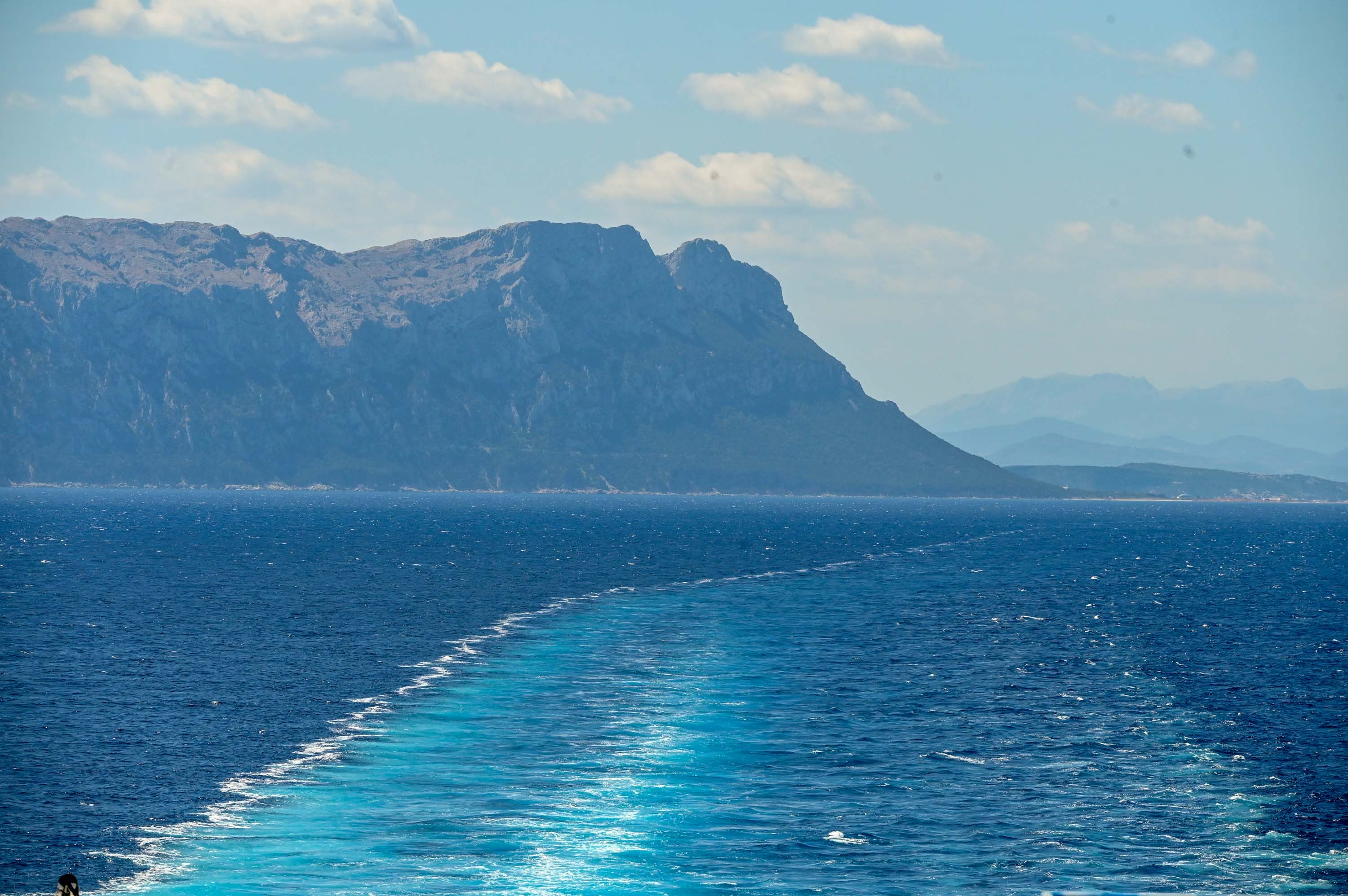 Avtomobilsko doživetje Sardinije se začne že v pristanišču Livornu, kjer smo se vkrcali na velikanski trajekt, dolg 237 metrov, v trupu katerega je v več palubah za kar 3,8 kilometra skupne dolžine parkirnih mest, kar pomeni, da vanj lahko zapelje 300 velikih vlačilcev in 1300 osebnih avtomobilov. Na takem trajektu je dovolj prostora za 3000 potnikov, ki imajo na voljo 441 kabin. Plovba 69.500 ton težkega orjaka, ki ga čez Tirensko morje poganja 10,8 MW moči, traja od 8 do 9 ur. Cena povratne vozovnice za trajekt je odvisna od tega, kdaj se odpravite na Sardinijo. Za štiričlansko družino v avtomobilu, dolgem do 5 metrov, je na vrhuncu sezone treba odšteti približno 600 evrov (z nočitvijo v kabini), zunaj sezone pa je povratna vozovnica lahko cenejša tudi za več kot polovico tega zneska.