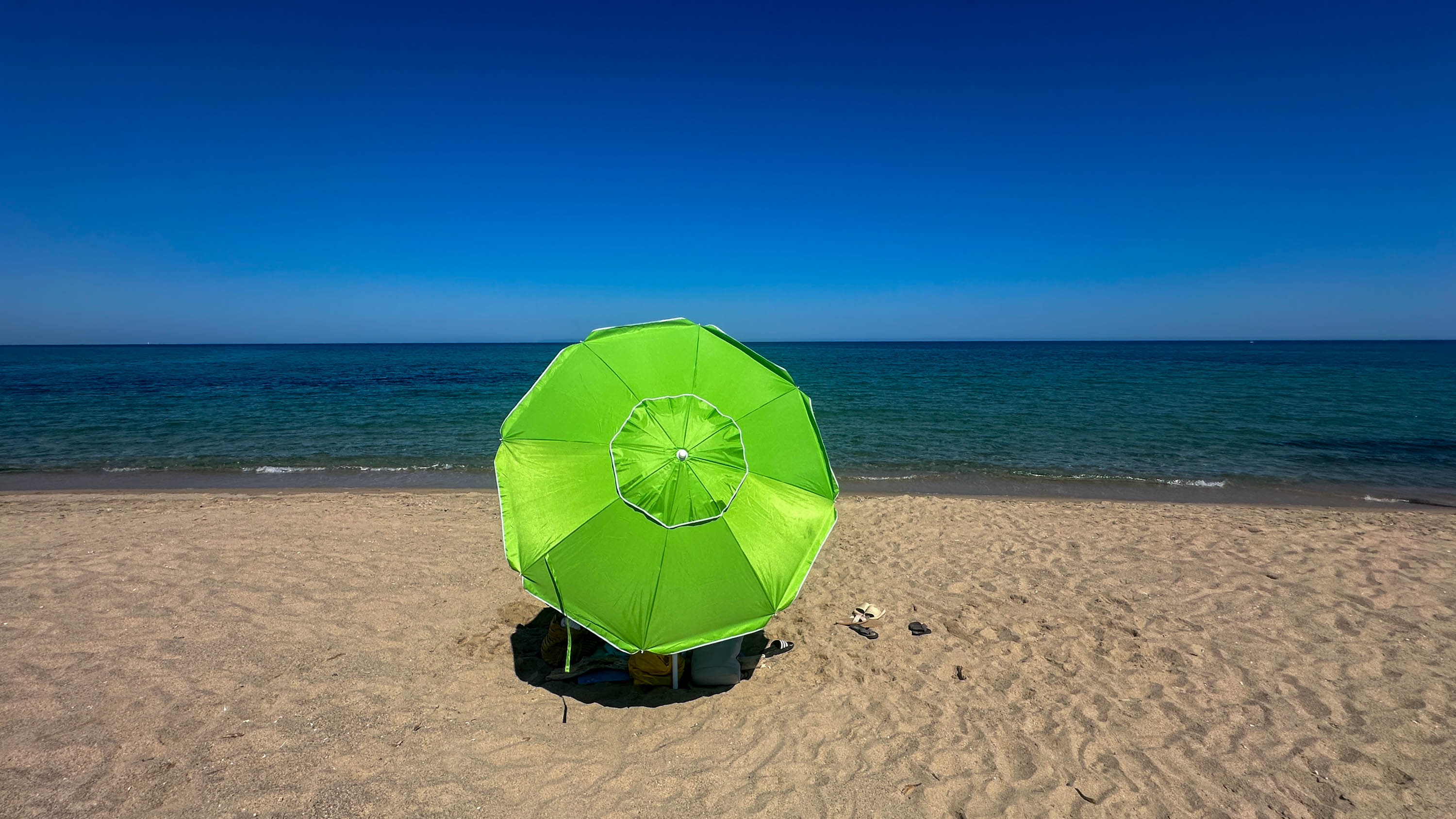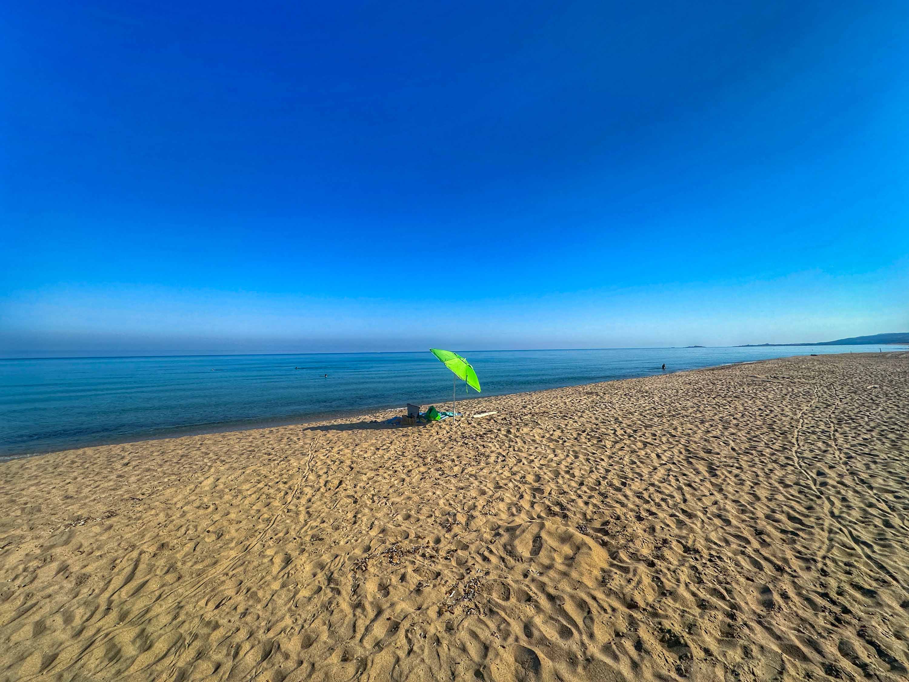 V 12 dneh smo predvsem na severozahodni obali do drugega velikega trajektnega pristanišča Porto Torres proti severu odkrili zares prekrasne plaže, na katerih ni bilo nobene gneče. Teh čudovitih zalivov pod vasicami in kilometrov od valov negovanih peščenih kilometrov je toliko, da lahko v krogu polurne vožnje za vsak dan počitnic najdete svoj rajski kotiček ob morju. Obvezna oprema na teh peščenih obalnih prostranstvih je seveda senčnik, saj pas vegetacije ne sega do valov, kot smo to vajeni na jadranski obali.