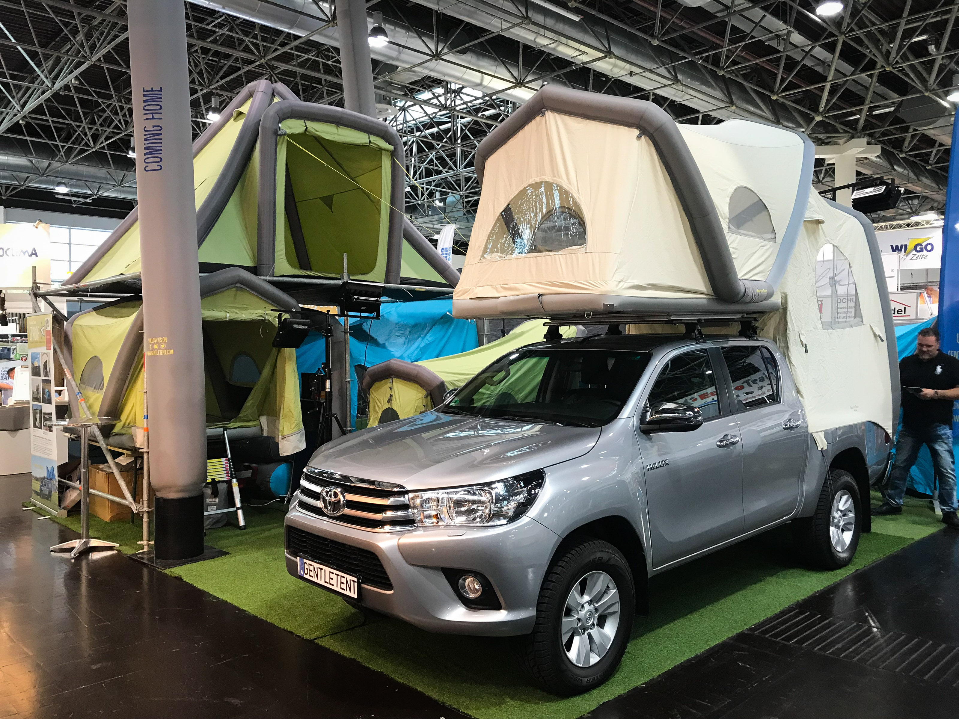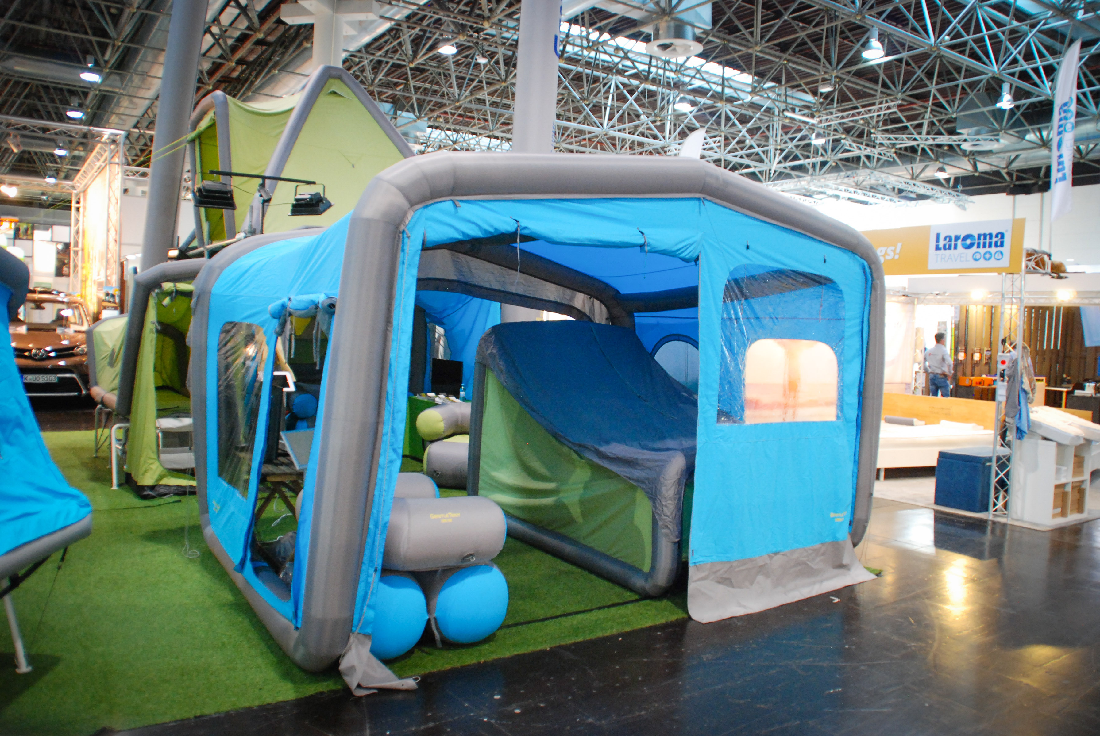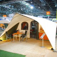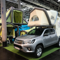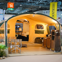 | Karavaning se z zanimivimi rešitvami integriranih šotorov na avtomobilskih strehah, na prikolicah in tovornih kesonih pickupov vrača h koreninam bivanja v naravi. Je pa vse skupaj precej poenostavljano in praktično z napihljivimi nosilnimi strukturami predprostorov, šotorov in šotorskih prikolic. |