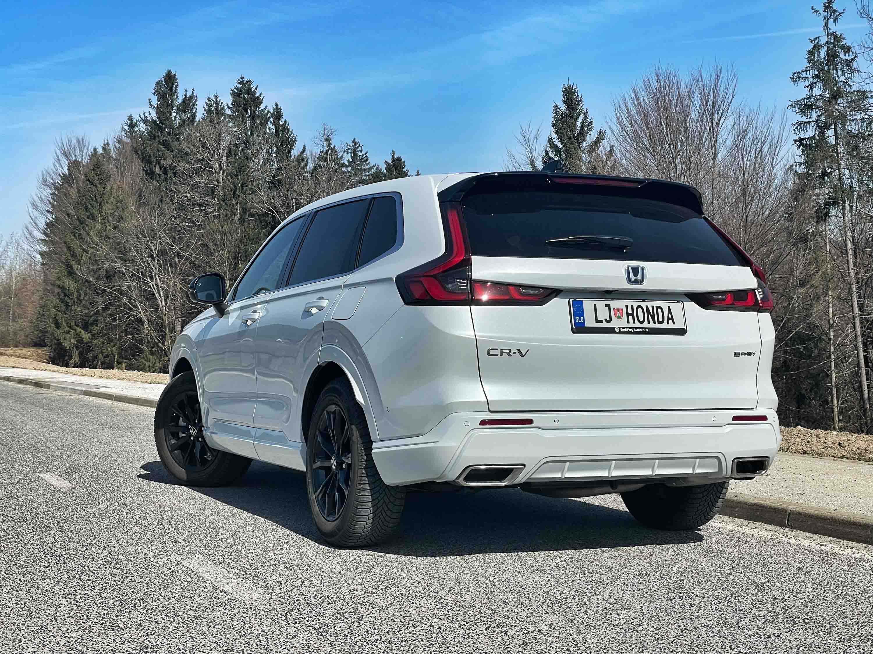 Ko govorimo o številkah, velja omeniti zanimivost o prostornini prtljažnika: v hibridnem CR-V-ju ta meri 579 litrov, v priključno-hibridnem avtu pa 587 litrov, torej 9 litrov več. Razlog je v tem, da ima ima hibridni CR-V svoj manjši akumulatorski sklop nameščen pod prtljažnim dnom, priključno-hibridni CR-V pa svoj večji energetski zalogovnik v karoserijskem dnu.