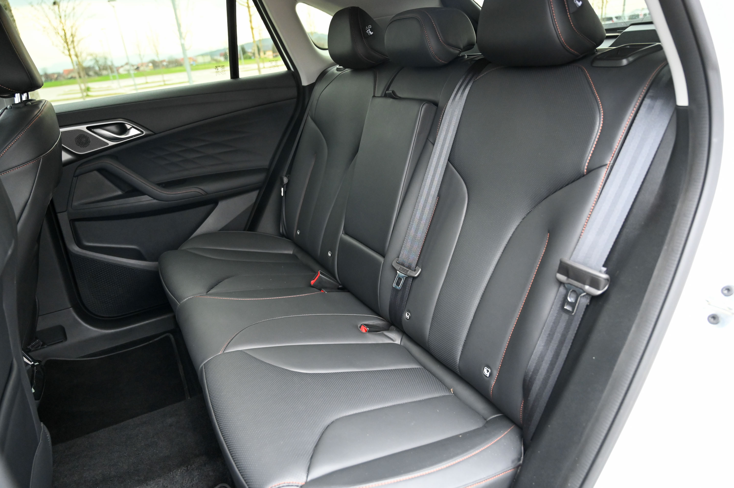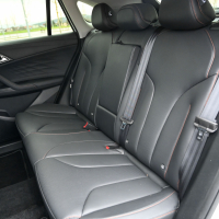Potniška kabina se odlikuje s prostornostjo. Na zadnji klopi je tudi ob povsem nazaj pomaknjenih prednjih sedežih zelo veliko prostora za kolena potnikov, pa tudi po višini je prostora dovolj. Tudi na prednjih, v usnje oblečenih sedežih je prostora dovolj, njun pomik je zadosten tudi za višjerasle. Voznikov sedež je tudi temeljito električno nastavljiv, kar ob dvojno pomičnem volanu omogoča dobro voznikovo ergonomijo.