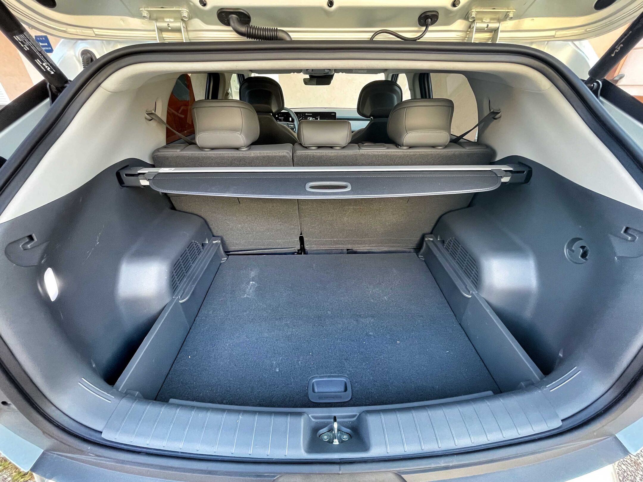 Kljiub razmeroma kratki karoseriji prtljažnik v EV3 meri 460 litrov, k temu pa je treba dodati še ličen prostor za kable pod prednjim pokrovom (“frunk”); nad uporabnostjo in prilagodljivostjo noben ne more vihati nosu …