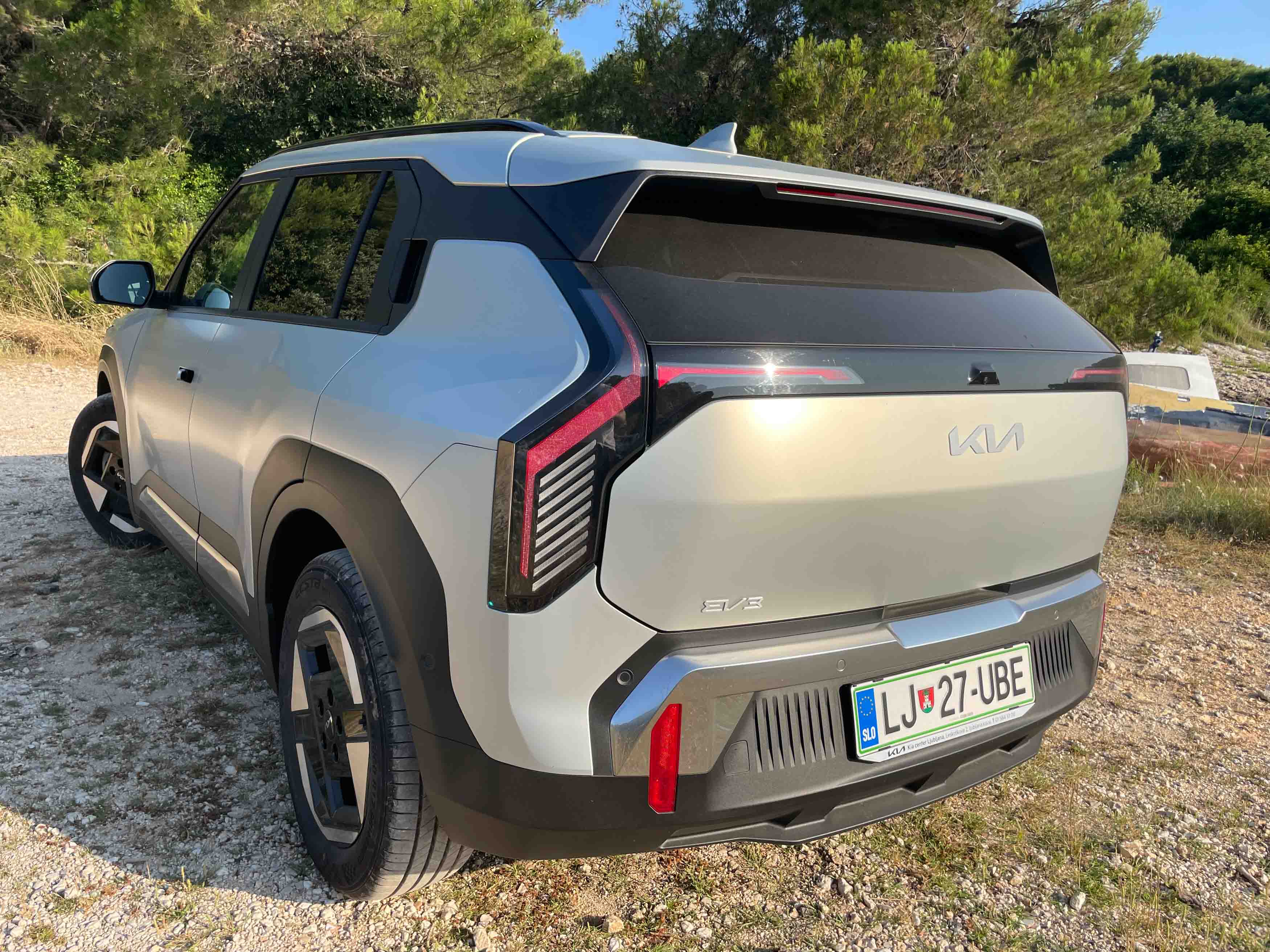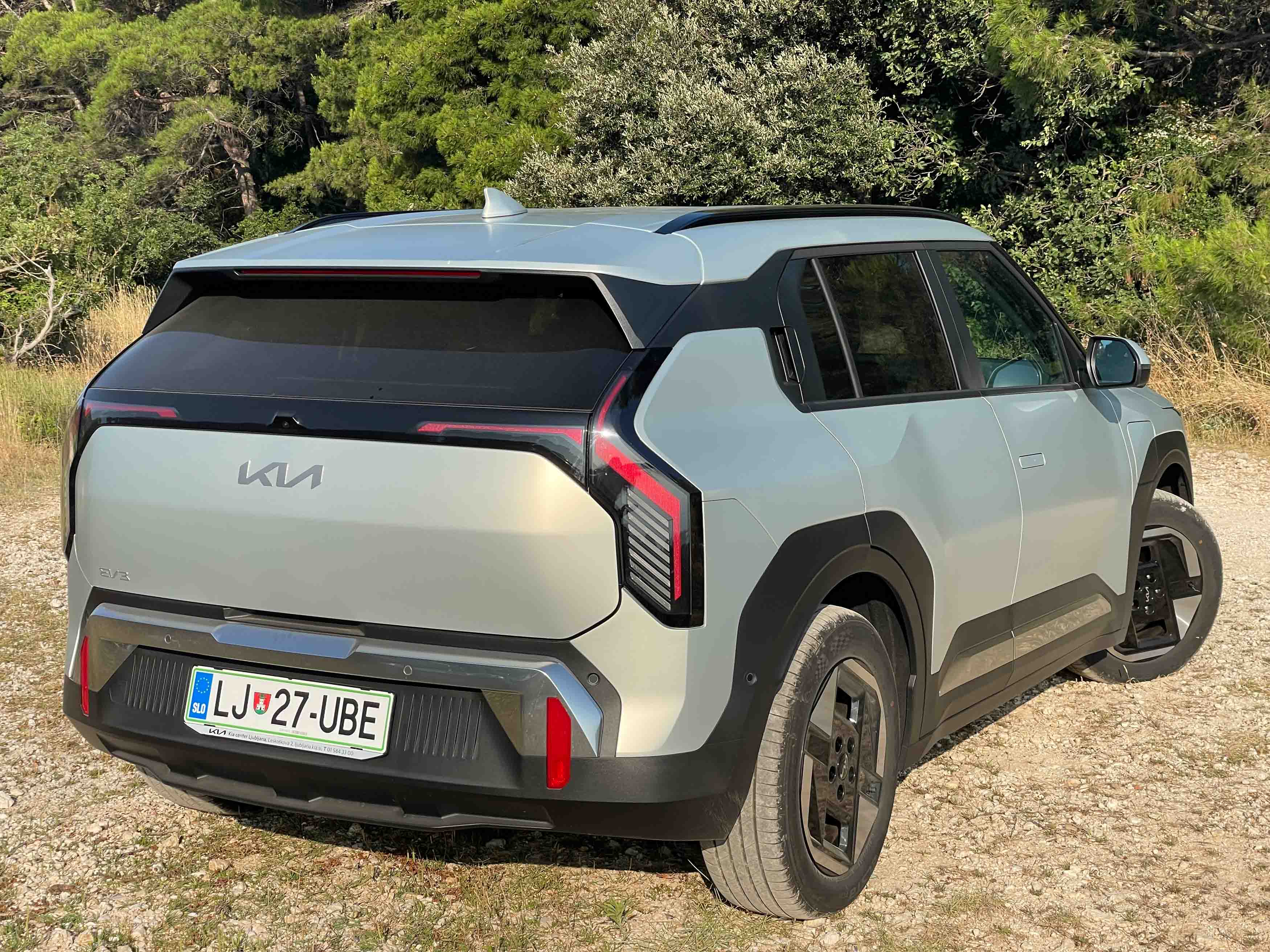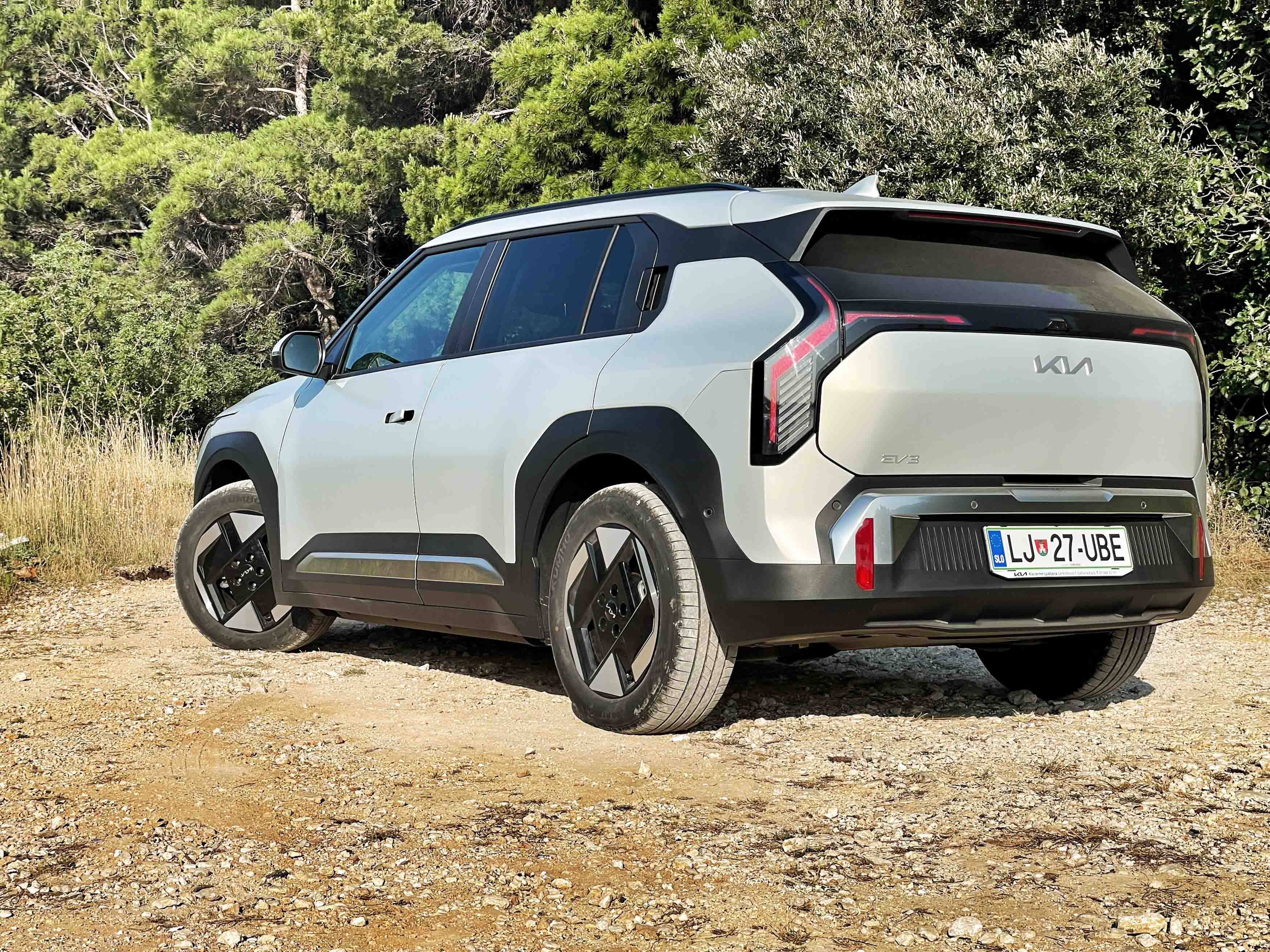 Da je Kia lastniško in tehnično tesno povezana s Hyundaijem, je bolj ali manj znano, a oba južnokorejska izdelovalca avtomobilov je treba pohvaliti za samostojni oblikovni poti. Kiina prisega na nekakšen elektro-futurizem; EV3 ima res kombilimuzinsko petvratno karoserijo, a podčrtano z malce večjo oddaljenostjo od tal in številnimi zanimivimi oblikovnimi podrobnostmi, kot so poudarjene kolesne odprtine, nekaj ostrih karoserijskih prelomov in zanimive oblike svetil.