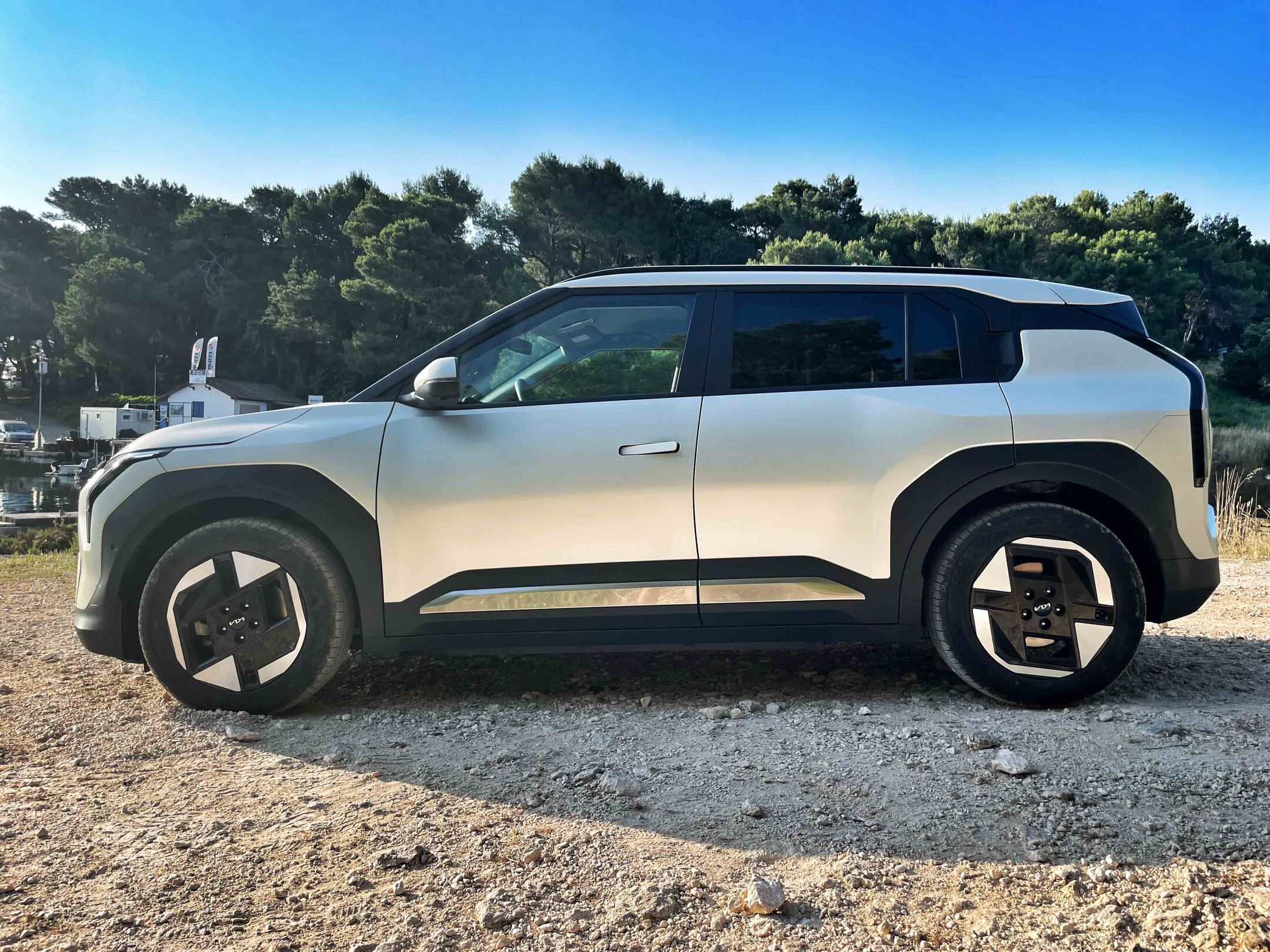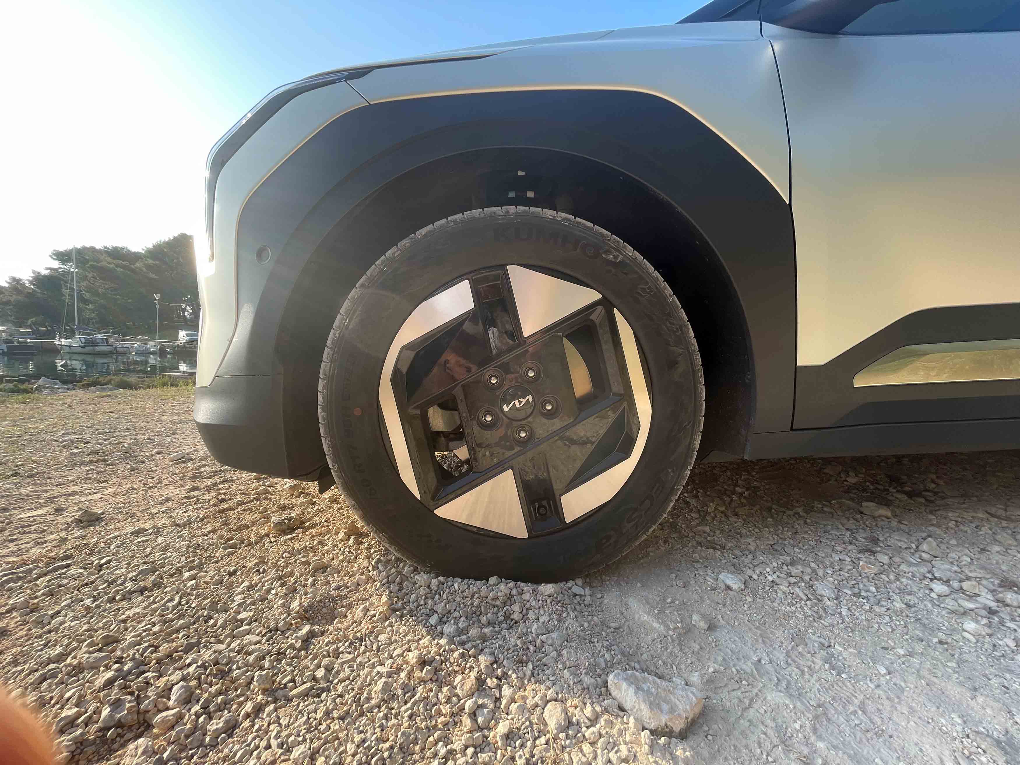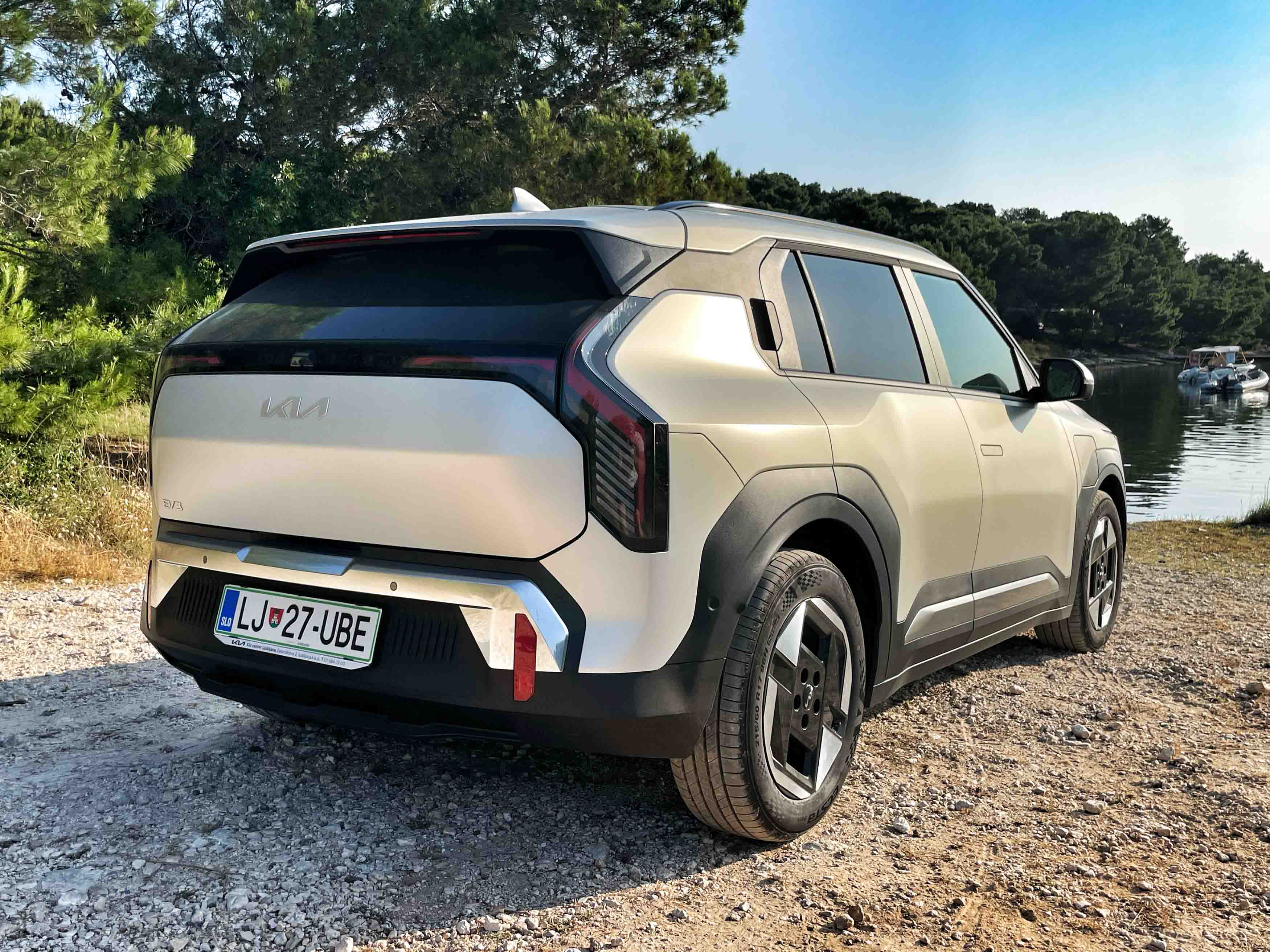Da je Kia lastniško in tehnično tesno povezana s Hyundaijem, je bolj ali manj znano, a oba južnokorejska izdelovalca avtomobilov je treba pohvaliti za samostojni oblikovni poti. Kiina prisega na nekakšen elektro-futurizem; EV3 ima res kombilimuzinsko petvratno karoserijo, a podčrtano z malce večjo oddaljenostjo od tal in številnimi zanimivimi oblikovnimi podrobnostmi, kot so poudarjene kolesne odprtine, nekaj ostrih karoserijskih prelomov in zanimive oblike svetil.
