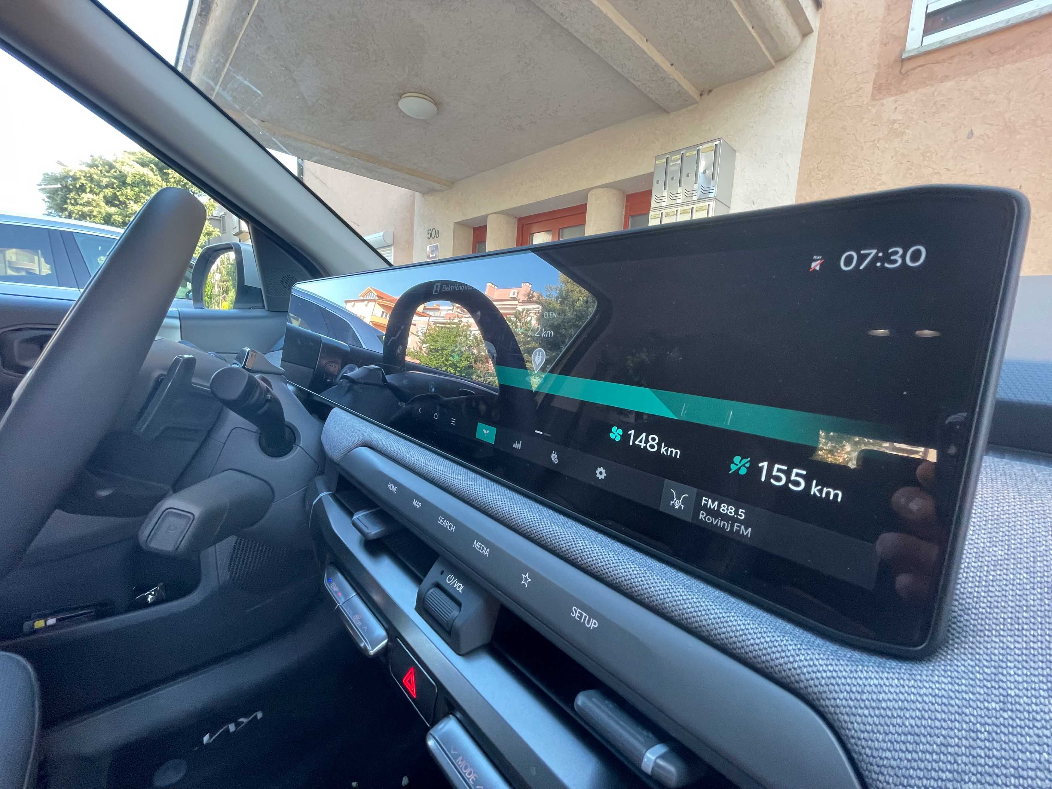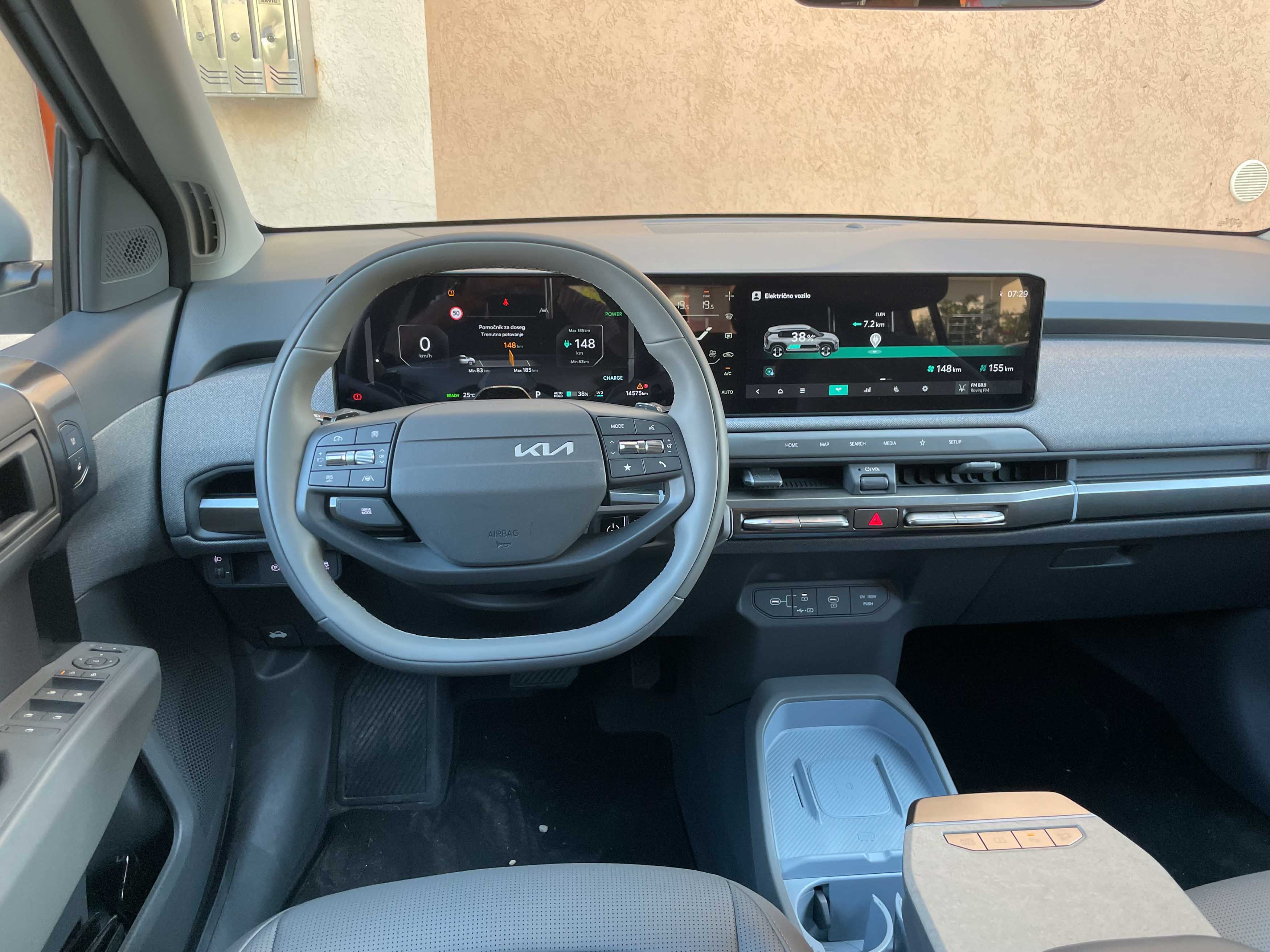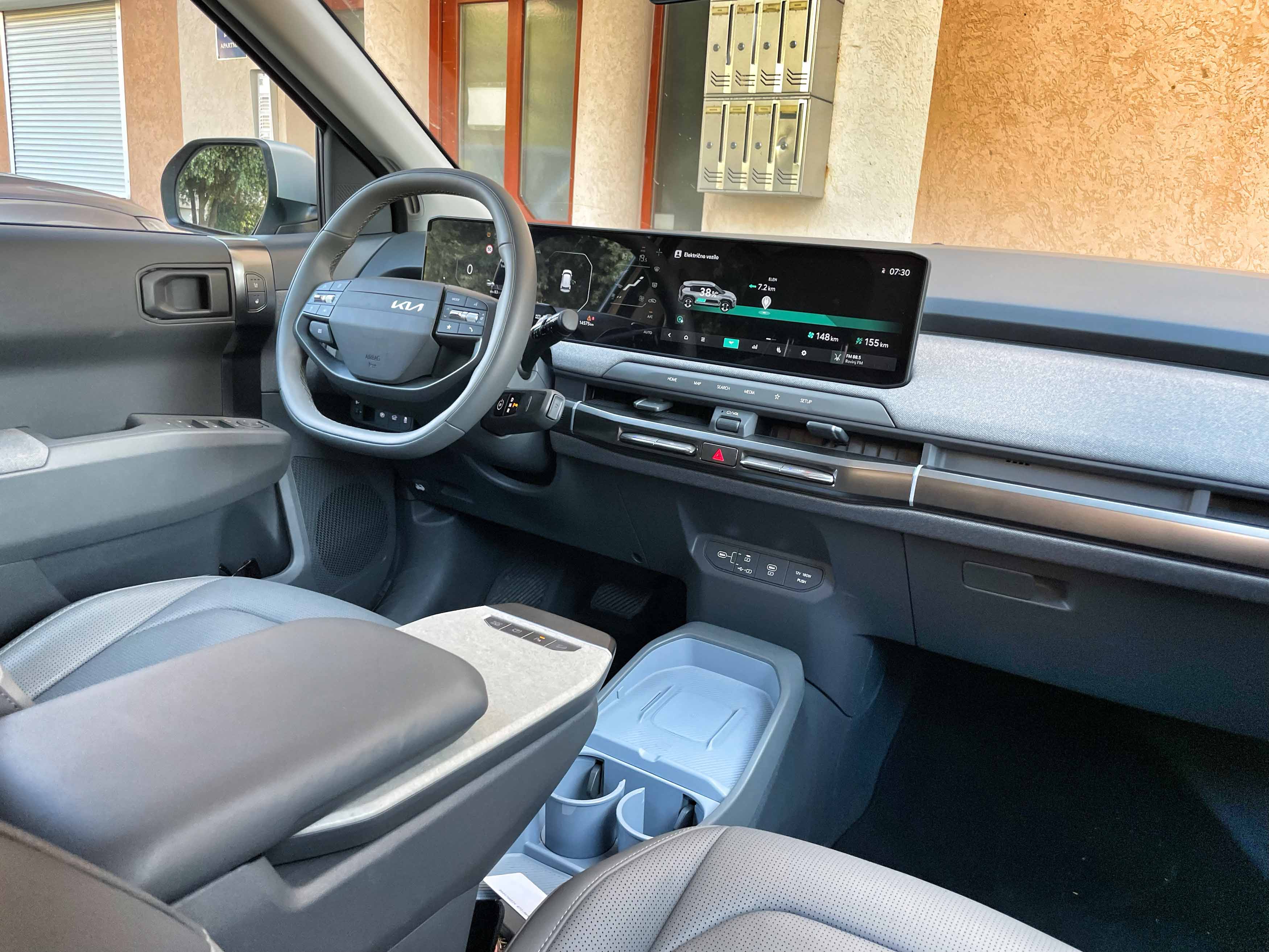 Povsem digitalnih armaturnih plošč smo pri južnokorejskih avtih že vajeni in glede na to, da si kie digitalno vsebino delijo s hyundaiji, smo preglednega uporabniškega vmesnika v EV3 že dobro navajeni.