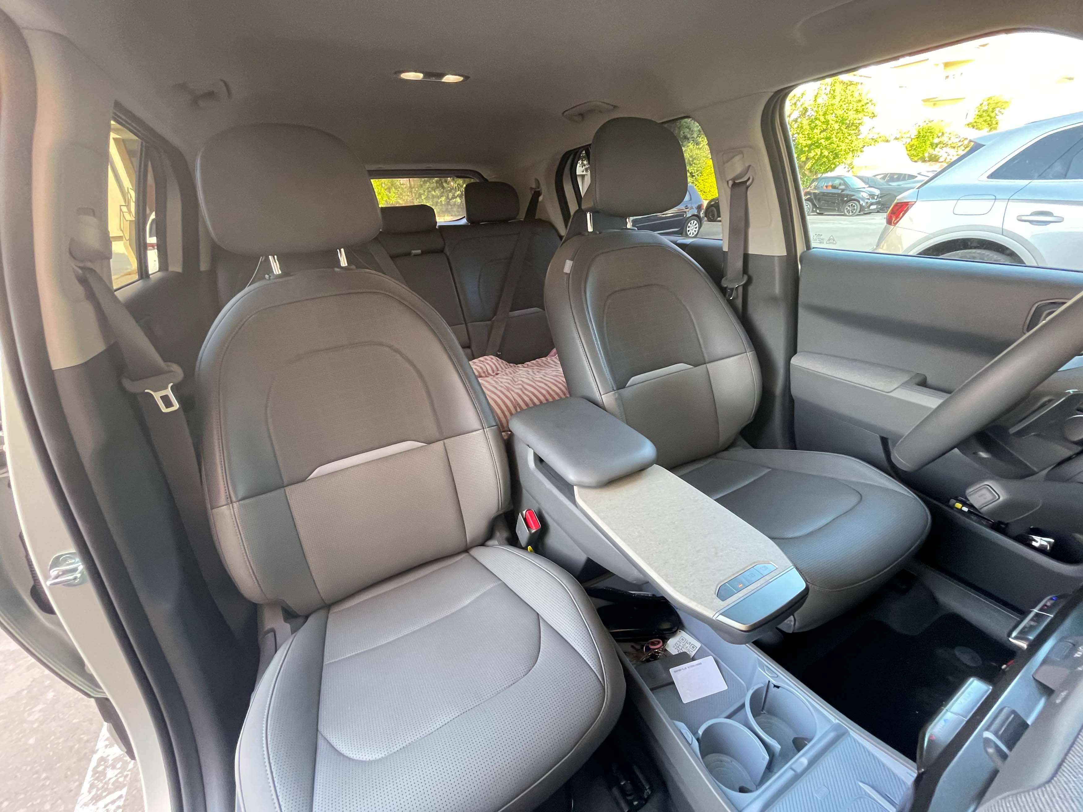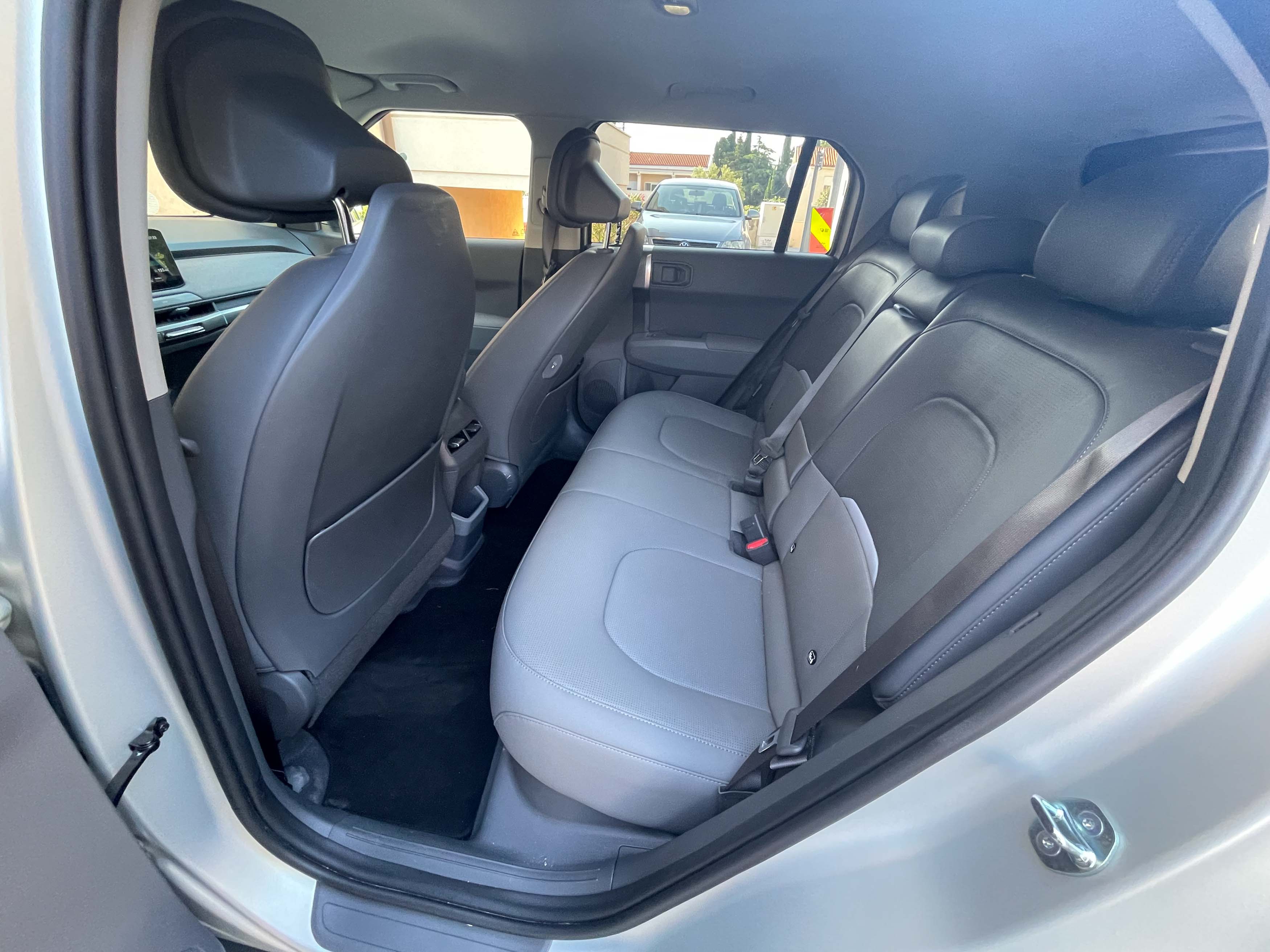 4,3 metra dolg EV3 je precej visok avto, kar izdaja tudi notranjo prostornost in uporabnost; v avtu se sedi precej pokončno, a vselej udobno in tudi zadaj dovolj prostorno tudi za odrasla potnika.