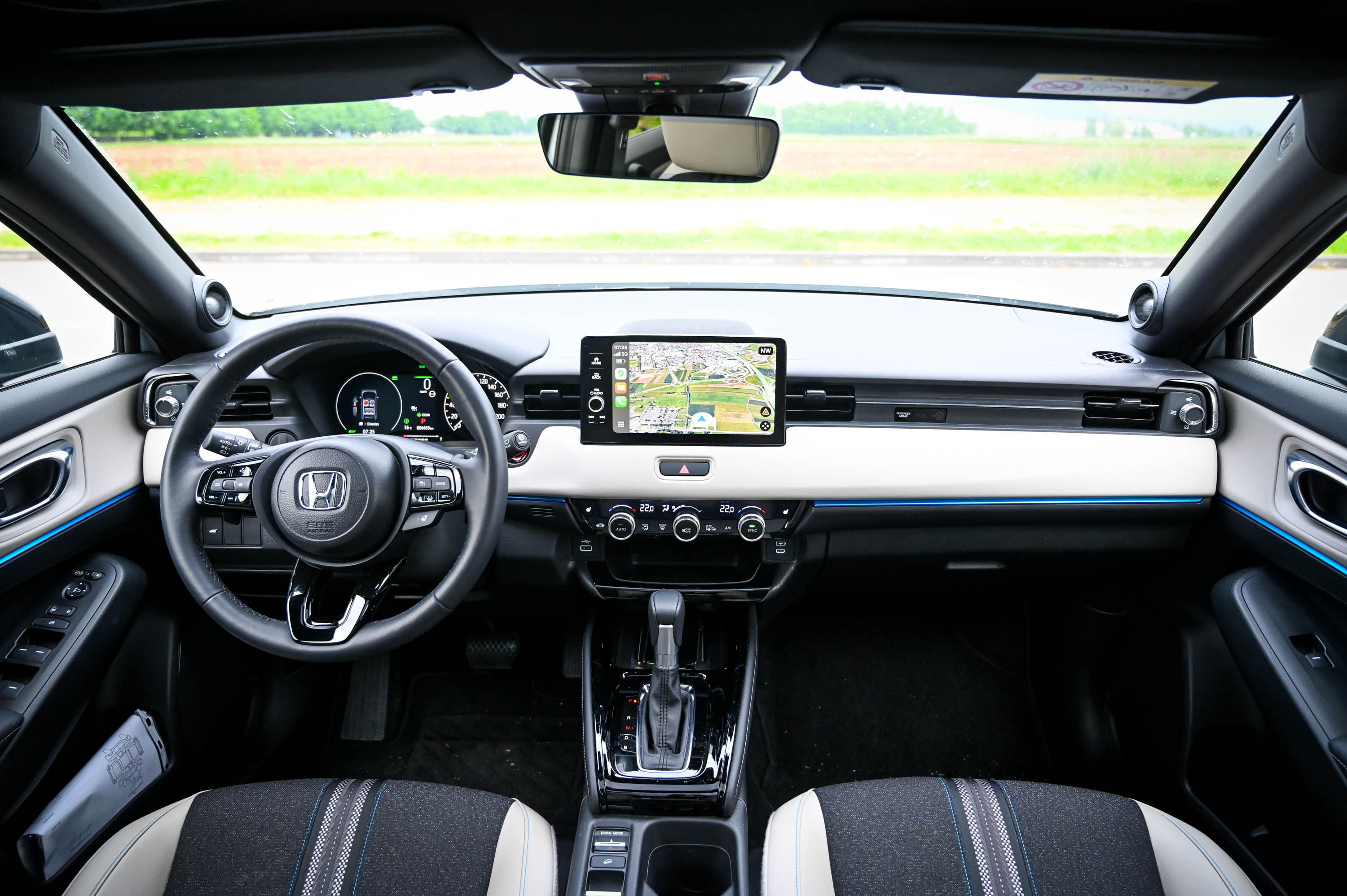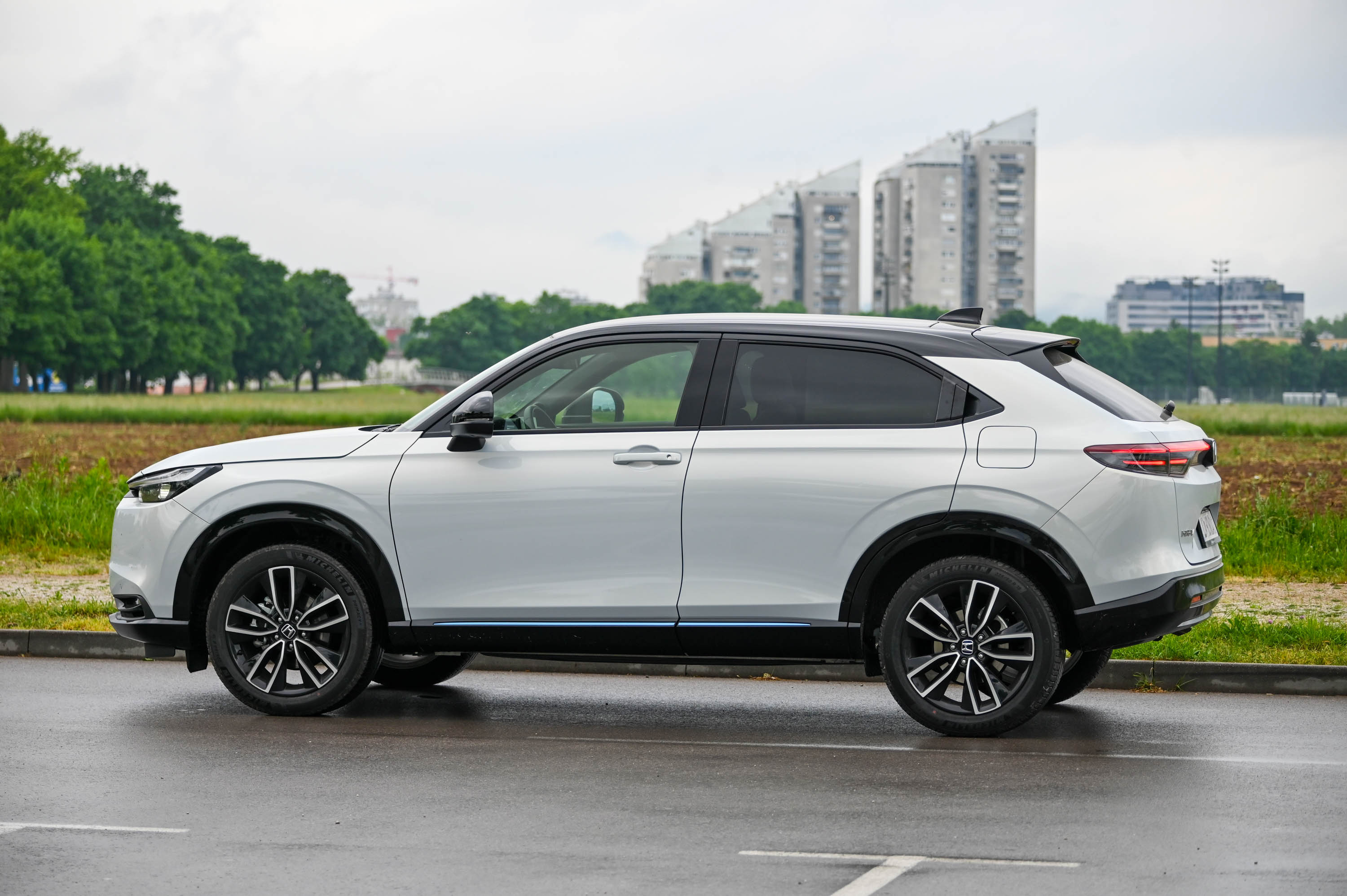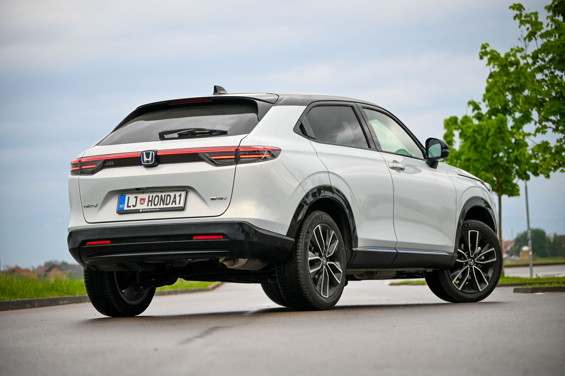 Prenovljeni HR-V se pelje tako, kot se za pravo hondo spodobi: vzmetenje učinkovito opravlja svoje delo, podvozje je zelo dobro uravnoteženo in volan je bolj radodaren z informacijami izpod koles kot pri prejšnji generaciji. Tudi na slabših podlagah ta honda ostaja dobro vodljiv in predvidljiv avtomobil. S prenovo so inženirji še dodatno izpili sodelovanje iskrivega 1,5-litrskega bencinskega atmosferskega motorja in 96-kilovatnega elektromotorja, ki mu energijo dobavlja litij-ionski pogonski akumulator zmogljivosti 0,92 kWh. V praksi to pomeni, da ta tandem hitreje obnavlja zalogo elektrike in se predvsem ob vklopu programa sport zelo prijetno odziva na voznikove ukaze. Na prednji kolesni par tako zelo hitro prenese prepričljivih 253 Nm navora, ob tem pa so z novo programsko opremo in posegom v e-CVT menjalnik inženirji zmanjšali še raven hrupa pri polnem pospeševanju in kar je najpomebneje, tudi delež na elektriko prevoženih kilometrov se je občutno povečal.
