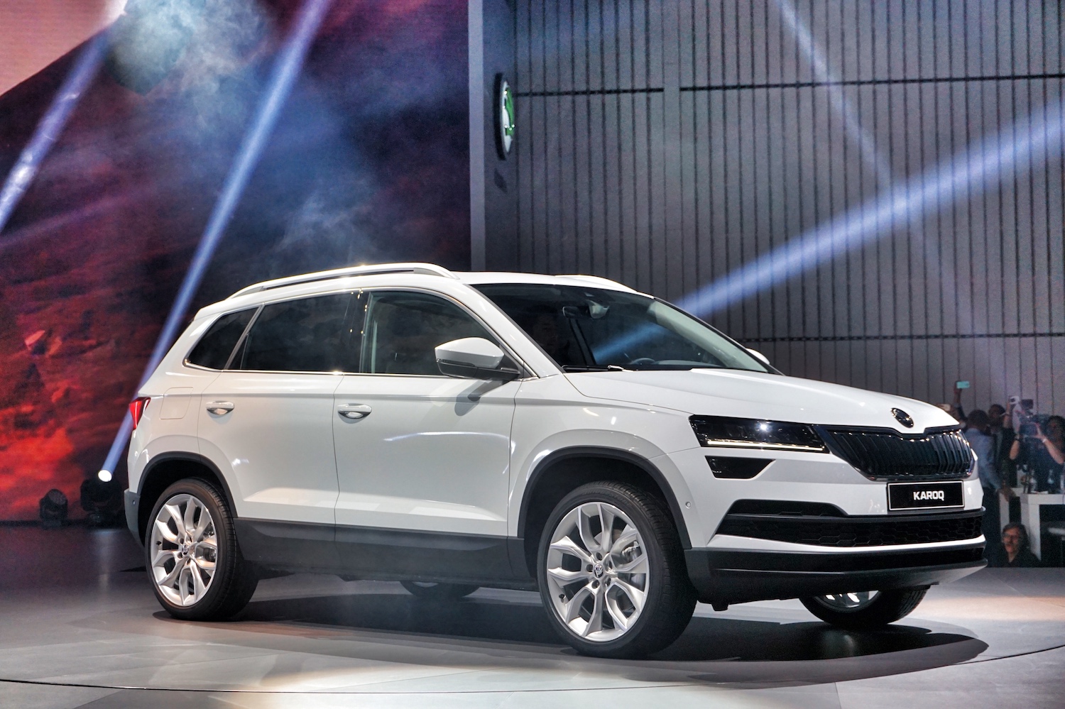 Karoqova motorna paleta bo ob začetku prodaje sestavljena iz dveh bencinskih in treh dizelskih motorjev. Bencinsko motorno paleto začenja litrski turbo trivaljnik s 85 kW, ki ga poznamo že iz drugih avtomobilov koncerna VW – bomo videli, kako se bo spopadel s karoqovo maso in velikostjo. Zahtevnejšim je namenjen novi 1,5-litrski TSI štirivaljnik s tehnologijo izklopa dveh valjev – 110 kW in 250 Nm navora bi moralo zadovoljiti tudi najzahtevnejše. Osnovna dizelska različica bo imela 1,6-litrski TDI s 85 kW, 2-litrski TDI pa bo na voljo v različici s 110 in 140 kW. Slednji motor bo na voljo zgolj s štirikolesnim pogonom in DSG menjalnikom, pri ostalih bodo imeli kupci izbiro – tako med prednjim ali štirikolesnim pogonom, kot med ročnim ali DSG menjalnikom. Pri štirikolesno gnanih različicah ima karoq zadaj večvodilno premo, različice s prednjim pogonom pa poltogo premo, vozniku v pomoč pa bo možnost izbire voznega programa. Omeniti velja še prilagodljive LED žaromete, ambientalno osvetlitev notranjosti, ogrevan volanski obroč in številne “simply clever” praktične rešitve.