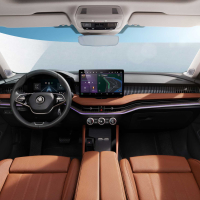 Veliko bolj nov kot navzven je superb videti v kakovostno izdelani kabini, ki je kljub uporabi recikliranih materialov na pogled in na otip zelo elegantna. Na armaturni plošči se bohoti 13 palcev velik in odziven prostostoječi zaslon, ki je dodatno povezan še s tremi satelitskimi vrtljivimi stikali oziroma menijski bližnjicami, ki jih poznamo tudi iz novega kodiaqa. Ta haptična stikala z vgrajenimi zasloni premera 3,2 cm poenostavljajo upravljanje s podatkovno bogatim in komunikacijsko naprednim vmesnikom ter hkrati v analognem slogu vozniku omogočajo hitro upravljanje s ključnimi sistemi, povezanimi z vožnjo in udobjem. Brez umika pogleda s ceste je mogoče s temi stikali nastaviti delovanje klimatske naprave, izbrati ustrezen vozni program, povečati navigacijsko karto … Pri digitalizaciji velja omeniti še 10-palčni zaslon prilagodljivih merilnikov, ki so odlično pregledni in enostavno nastavljivi.