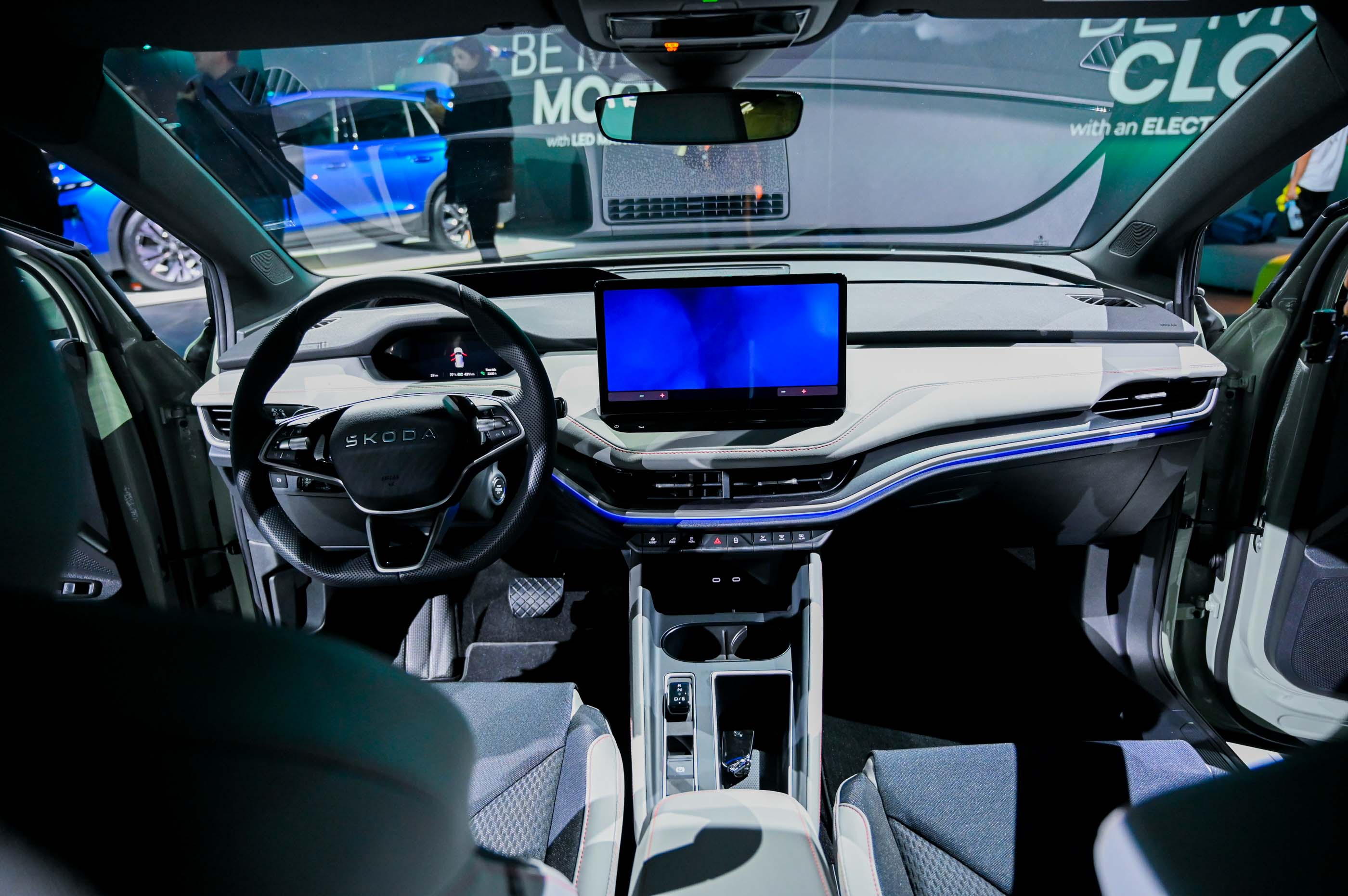 V kabini velja izpostaviti za ta avtomobilski razred zelo dobre materiale, odlično ergonomijo, pregledno armaturno ploščo z novo generacijo 13-palčnega komunikacijskega zaslona visoke ločljivosti in praktičnost, saj je okoli voznika in sovoznika ter ostalih potnikov za 48 litrov odlagalnih mest. Ob tem velja poudariti, da bo elroq vozniku ponujal zelo izdatno pomoč z aktivnimi varnostnimi sistemi ter pri digitalnih storitvah pomagal z umetno inteligenco ChatGPT.