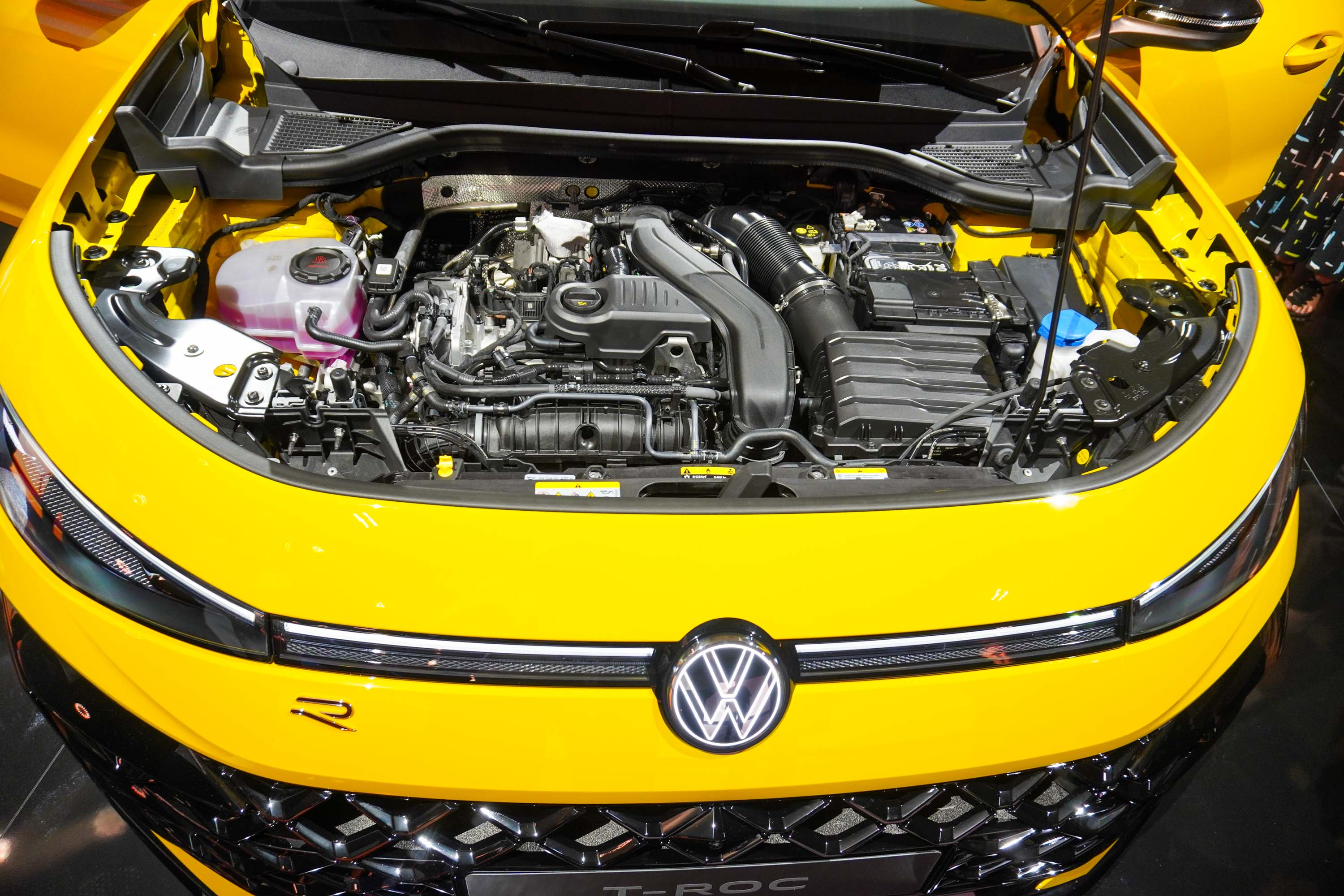 Novi T-roc bo sprva na voljo zgolj z 1,5-litrskim štirivaljnim bencinskim motorjem. Gre za že dobro znan, a posodobljen motor s prilagodljivim turbinskim polnilnikom in z možnostjo izklopa dveh valjev za večjo gospodarnost, ki je dobil blagi hibridni pogon. Motor bo na voljo v dveh različicah: s 85 ali 110 kW moči. Posebnost blagega hibridnega pogona je sklop zaganjalnika in generatorja, ki deluje z 48 voltno napetostjo zagotavlja 14 kW moči in 56 Nm navora. Rekuperirana električna energija se shrani v litij-ionski akumulator, ki ima tudi 48 voltno napetost. Pretvornik poskrbi za pretvorbo v 12 voltno napetost, s katero delujejo ostale naprave v avtu. Prenos moči na prednji kolesi bo prek 7-stopenjskega DSG menjalnika z dvojno sklopko. Prihodnje leto bodo ponudbo dopolnili z 2-litrskim bencinskim motorjem z blagim hibridnim pogonom in štirikolesnim pogonom. Največje presenečenje pa je Volkswagnova napoved, da bo v drugi polovici prihodnjega leta na voljo tudi enak 1,5-litrski bencinski motor s samooskrbnim hibridnim pogonom, torej s tehnologijo, ki so se je pri Volkswagnu vse doslej izogibali, a očitno niso mogli spregledati uspehov tekmecev s takšnimi motorji. Motor s hibridnim pogonom bo na voljo v dveh različicah: s 100 ali 125 kW. Poraba goriva naj bi bila manjša za 15 odstotkov kot brez hibridnega pogona. Zmogljivosti akumulatorskega sklopa in podatkov o voznih zmogljivostih pri VW še ne želijo razkriti. Presenetljivo pa novi T-roc ne bo ponujal priključno hibridnega pogonskega sklopa, čeprav ga VW ima v svoji ponudbi in bi ga tudi lahko vgrajeval v T-roca, ki temelji na MQB-evo platformi.