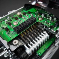 | Napredni krmilnik oziroma pretvornik (AC/DC) kar 10.000-krat na sekundo preverja, kdaj pognati elektromotor oziroma zajemati energijo z generatorjem od zaviranju |