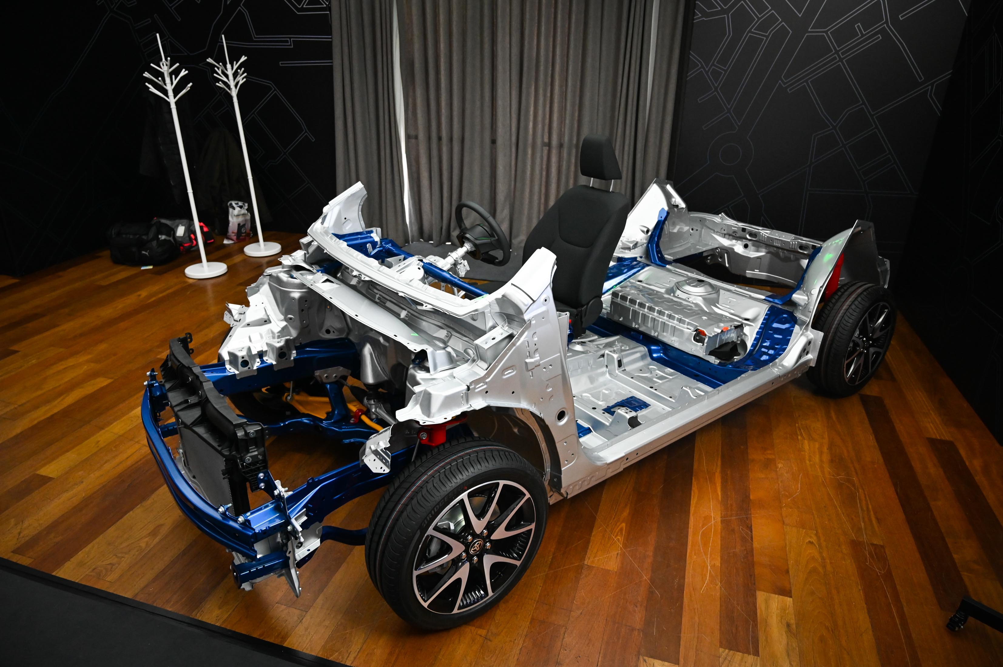 Ob prerezu nove karoserije smo se pogovarjali z razvojnim inženirjem Lucom Nuytsom, ki nam je pojasnil, kaj vse so naredili za več prostora, boljšo vodljivost in večjo varnost: “Gre za popolnoma novo zgradbo karoserije na platformi TNGA z oznako GA-B. Voznik ima v tej karoseriji veliko bolj naraven občutek gibanja, kar pomeni, da bolje občuti cesto oziroma med vožnjo od avta dobi večji odziv. To v voznikove občutke prinaša več zaupanja, varnosti in samozavesti. Voznik zaradi odzivnosti avtomobila pridobi čas za ustrezne reakcije. Celotna karoserija je za 37 odstotkov bolj čvrsta kot pri predhodniku. Osnovne strukturne ojačitve so med seboj povezane v celoto od sprednjega do zadnjega dela avtomobila. Poleg napredne tehnologije varjenja so določeni deli karoserije lepljeni, kar še povečuje trdnost in učinkoviteje duši tresljaje. Avto je tišji. Težišče smo znižali za dober centimeter (12 mm) in pomaknili še bolj proti sredini. Ključna novost je novi litij-ionski akumulatorski sklop, s katerim smo privarčevali kar 20 kilogramov in obenem poskrbeli za učinkovitejše shranjevanje energije. Energijska shramba je v celoti nameščena pod zadnjo klopjo in deležna enakih klimatskih razmer kot voznik v kabini. To pomembno vpliva na dobo trajanja. Prednja sedeža smo vpeli neposredno na osnovno strukturo karoserije . Voznik sedi 2,1 cm nižje, da bolje čuti avto. Yaris je dobil novo, veliko bolj uravnoteženo podvozje. V prid boljše vodljivosti smo spredaj natančneje nastavili geometrijo MacPhersonovih vzmetnih nog, zadaj pa smo vgradili kar za 80 odstotkov trdnejšo poltogo premo, a namestili nekoliko mehkejše vzmeti. Zadnji kolesi tako veliko bolj zanesljivo držita stik s podlago in ohranjata smer.”