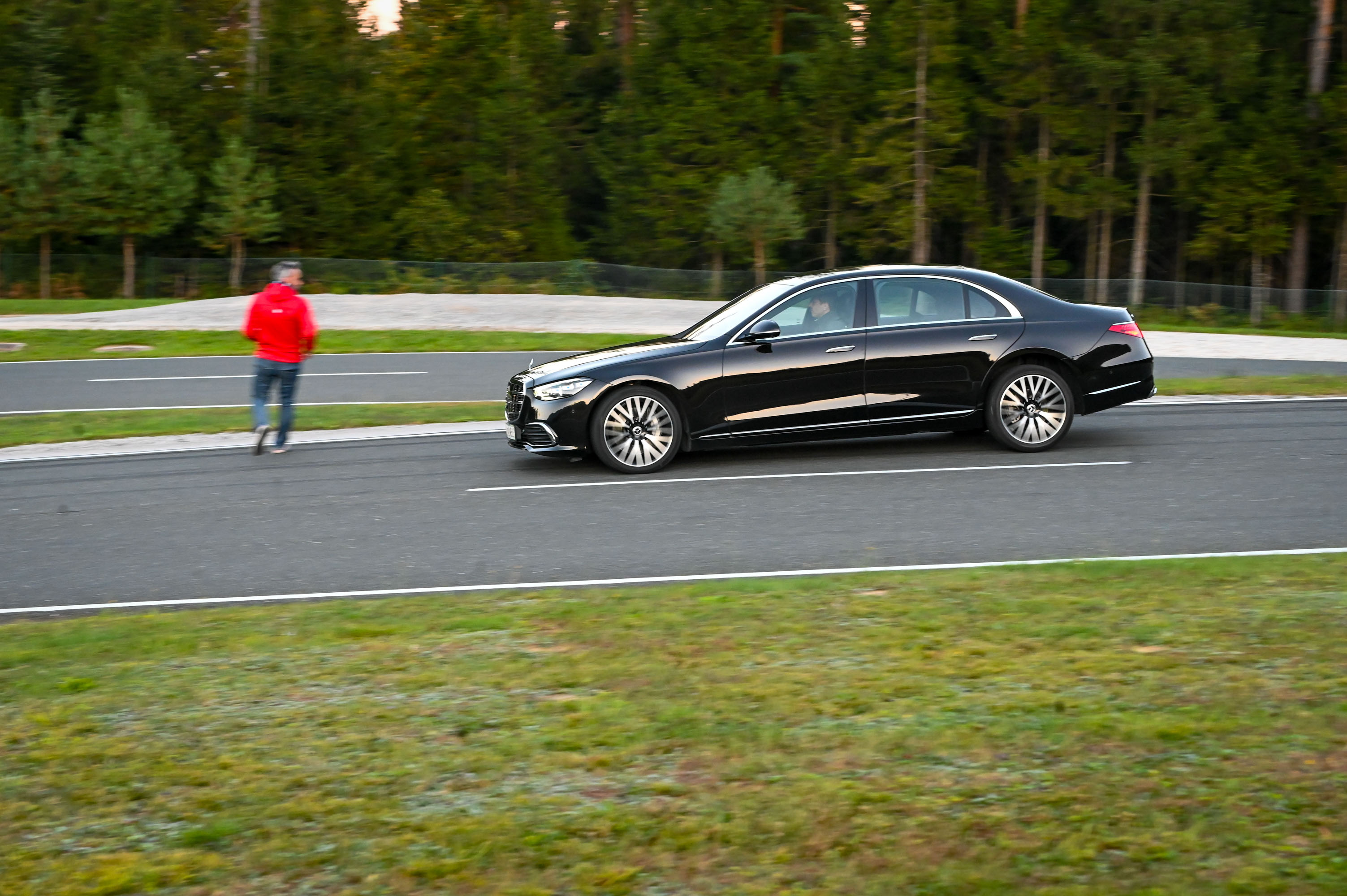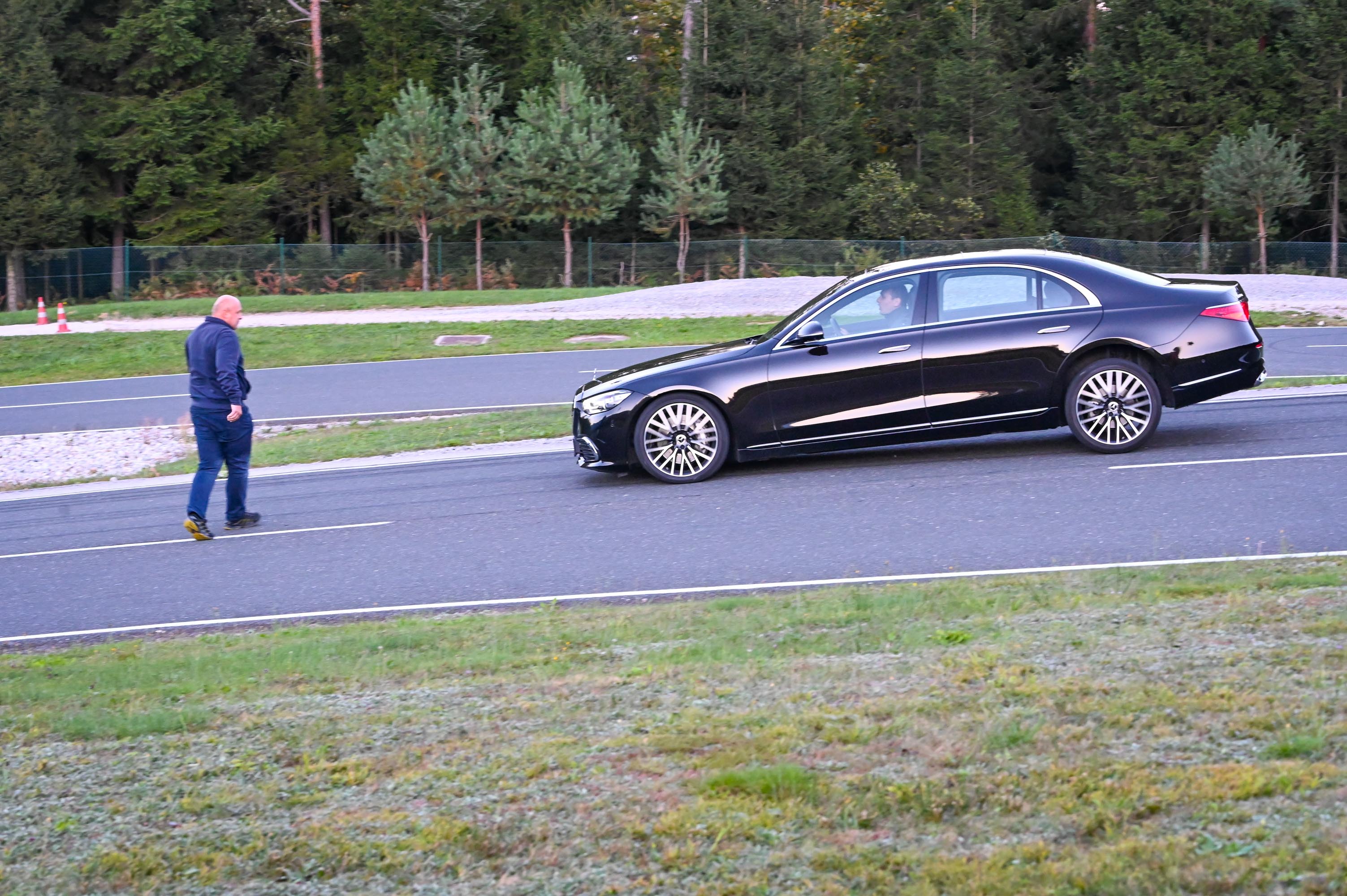Tudi najpametnejšemu mercedesu so AMZS inštruktorji varne vožnje pripravili resen izziv, ki smo ga izvedli na poligonu z izkušenimi voznikom in strogim varnostnim protokolom: pri vožnji s hitrostjo 50 km/h na uro je eden od inštruktorjev iz popolnega mrtvega kota izza avtomobila ob cesti pritekel pred mercedes S. Ob vklopljenem radarskem tempomatu je 5,3 metrska limuzina z bliskovitim posegom dokazala svoj primat najpametnejšega avtomobila. Ob tem velja povedati, da smo to izvedli na površini, ki jo Mercedesova navigacija ne prepozna kot cesto z omejitvami. Umetna inteligenca iz navigacijskih podatkov ni dobila podatkov, da vozi na cesti. Ko smo še bolj zaostrili pogoje reakcije, pa smo tudi dobili dokaz, da je novi S izjemen, a nikakor ne vsemogoč. Če je prostora premalo, se čudež ne more zgoditi - tudi tehnika ne more premagati fizikalnih zakonov. Vozite varno!