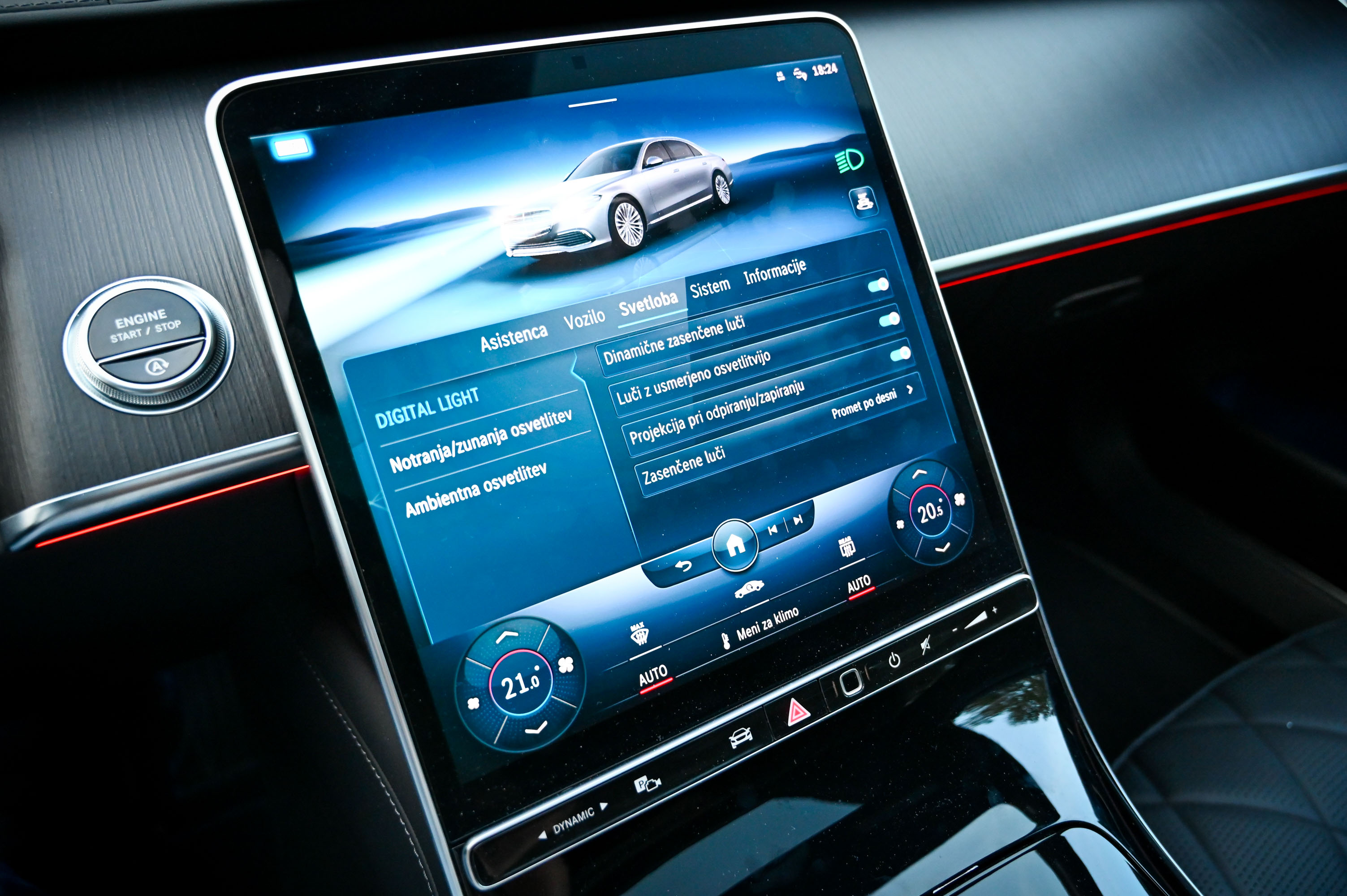 Temo novi mercedes S para s svetlobnim snopom visoke ločljivosti, ki seže 650 metrov daleč. Digital light je nova in najbolj natančna tehnologija Mercedesovih žarometov. Na 100-metrski razdalji je natančen in popolnoma prilagodljiv snop visoke ločljivosti sestavljen iz 1,3 milijona svetlobnih točk v velikosti 3,5 krat 2,3 cm. To pomeni, da sestavljeni snop lahko osvetli celega pešca, le njegove oči z natančnim izrezom pa pusti v temnem okvirčku. Voznik bo na zadostni razdalji videl osvetljenega pešca, pešca pa dolgi snop ne bo zaslepil. Pri običajnih pametnih žarometih je posamična svetlobna točka na 100-metrski razdalji velika kot garažna vrata 1,745 m krat 2,33 metra.