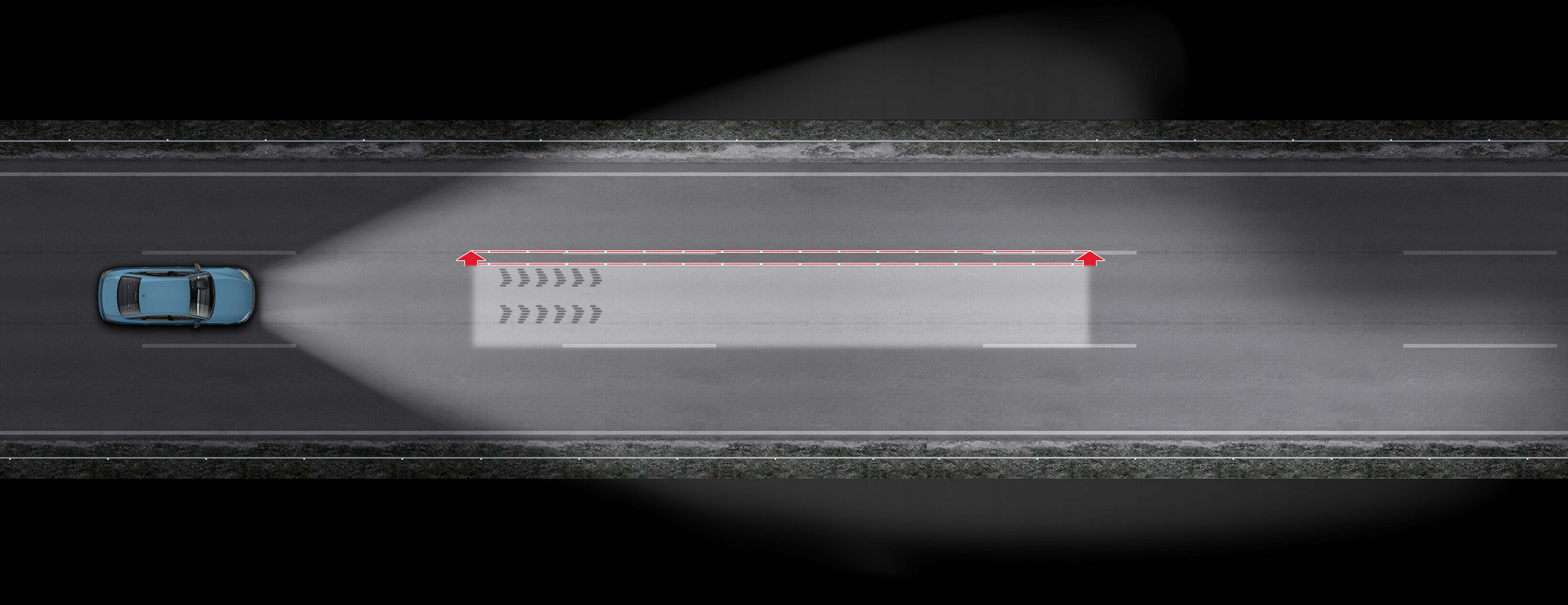 Ko smo z audijem A8 ponoči zapeljali na avtocesto, smo presenečeni opazili dodatne svetlobne označbe, ki so se brezhibno prilagajale radiju ovinkov in nekaj metrov pred nami natančno označevale širino avtomobila. Matrična žarometa imata namreč smerna in orientacijska modula, s katerima ponoči na avtocesti izredno dobro osvetlita vozni pas, poleg tega pa z orientacijskim snopom smernih luči vozniku ob straneh izrišeta “svetlobno preprogo” v obliki puščic. Te prediktivno prikazujejo položaj avtomobila na voznem pasu in v temi pomagajo vozniku voziti čim bolj po sredini voznega pasu. Voznik natančno vidi svetlobne orientacijske meje širine avtomobila. Te so zelo dobrodošle pri zoženih voznih pasovih zaradi del na cesti. Takrat je glavna osvetlitev snopa namenoma usmerjena le na voznikov vozni pas in ne na vse vozne pasove na cestnem gradbišču, da se voznik osredotoči na natančno vožnjo na zoženem odseku ceste. Svetlobni pasovi novih Audijevih žarometov so natančnejši in senčenje oziroma širjene snopa še hitrejše od primerljivo zmogljivih digitalnih žarometov, ki smo jih nedavno preskušali v novem Mercedesovem razredu S.