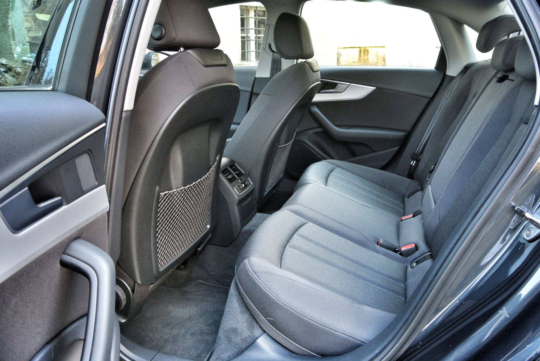 V notranjosti je bolje; A4 je dobil povsem novo armaturno ploščo s prostostoječim zaslonom multimedijske naprave in sklopom merilnikov iz večjih audijev; materiali so kakovostni, izdelava brezhibna, glede ergonomije ni nobenih pripomb. Skrit, a vendarle občuten je dimenzijski prirastek v notranjosti; kljub enaki medosni razdalji je v A4 zdaj več prostora za kolena potnikov zadaj, kjer zdaj lahko sedita dva odrasla precej udobno tudi na daljših vožnjah. Malce več prostora – predvsem za glave – je tudi na prednjih sedežih. V prtljažnik gre natanko toliko prtljage kot prej (480 litrov), je pa limuzinski prtljažnik – kljub možnosti povečanja s prevračanjem zadnjih naslonjal naprej.
