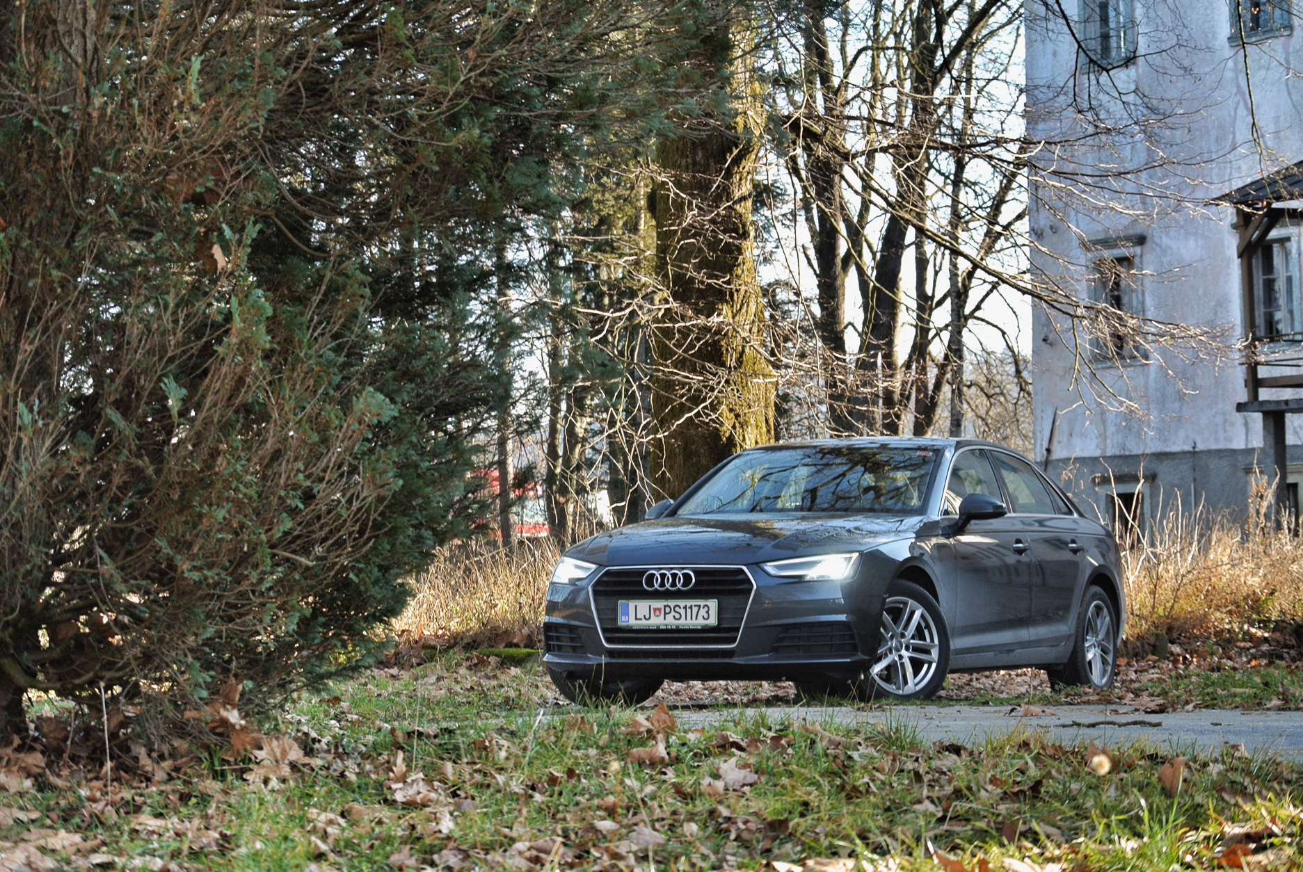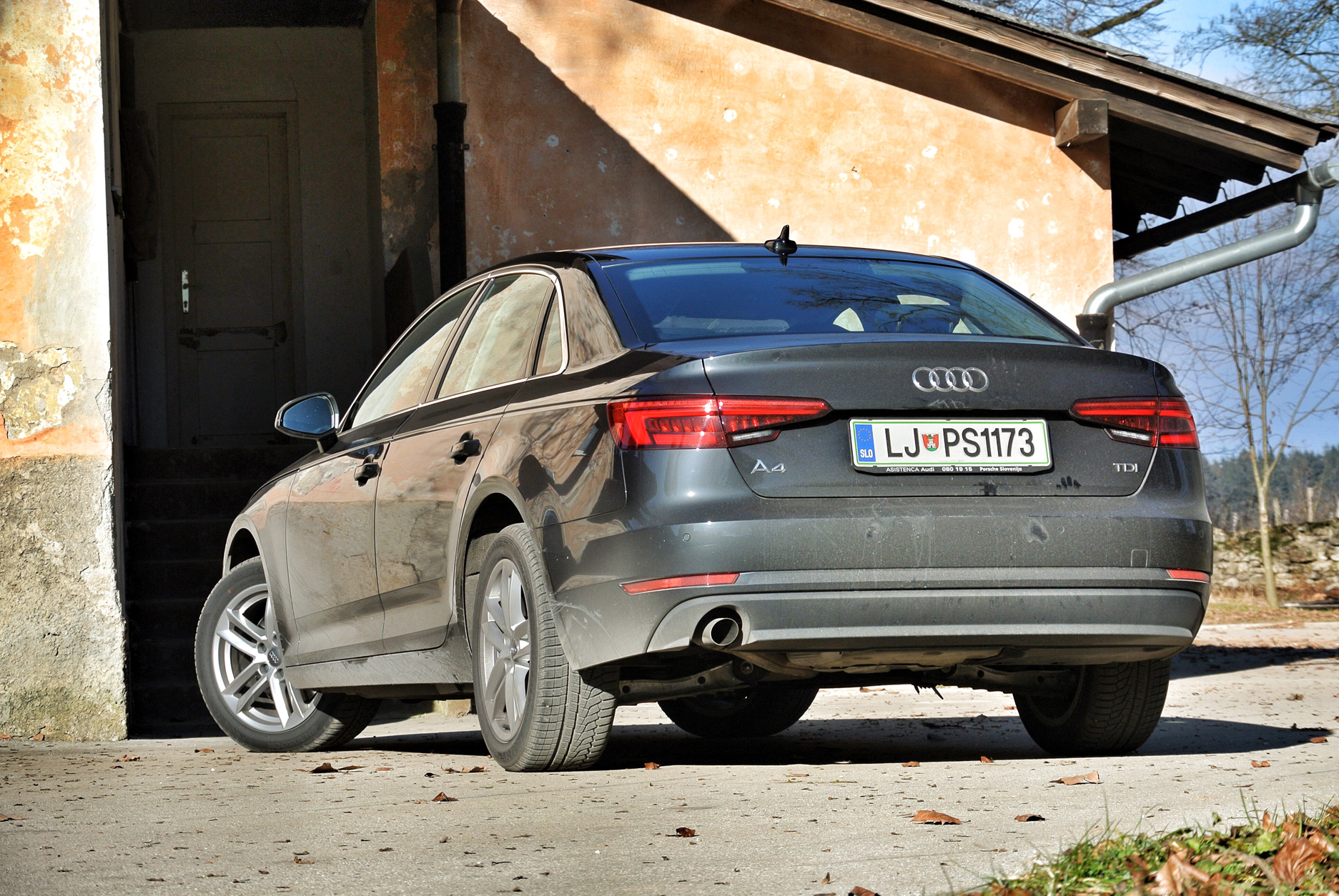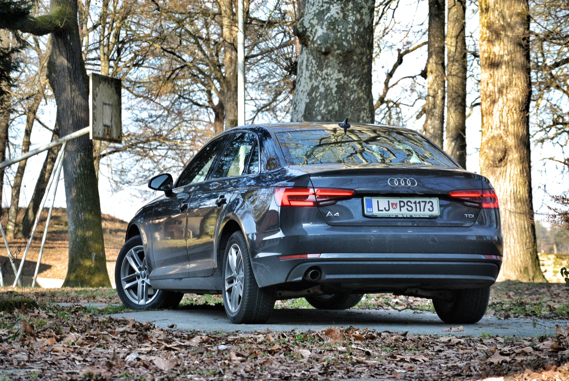 Na preskusu smo imeli A4 z najšibkejšo različico 2-litrskega dizelskega TDI motorja, ki zmore 110 kW in ima 320 Nm navora. Oboje – moč in navor – motor doseže pri nižjih motornih vrtljajih kot prej (3250 in 1500 vrt./min), kar pomeni boljšo prožnost in večje uporabno območje motornih vrtljajev. Motor je odlično zvočno zadušen. Čeprav gre za najšibkejši motor v ponudbi, so zmogljivosti in vozni občutki zelo dobri; do 100 km/h avto pospeši v manj kot 9 sekundah, kjer lahko, pa avto pospešuje vse do 221 km/h. Povprečje porabe goriva je skromnih 6,1 l/100 km.