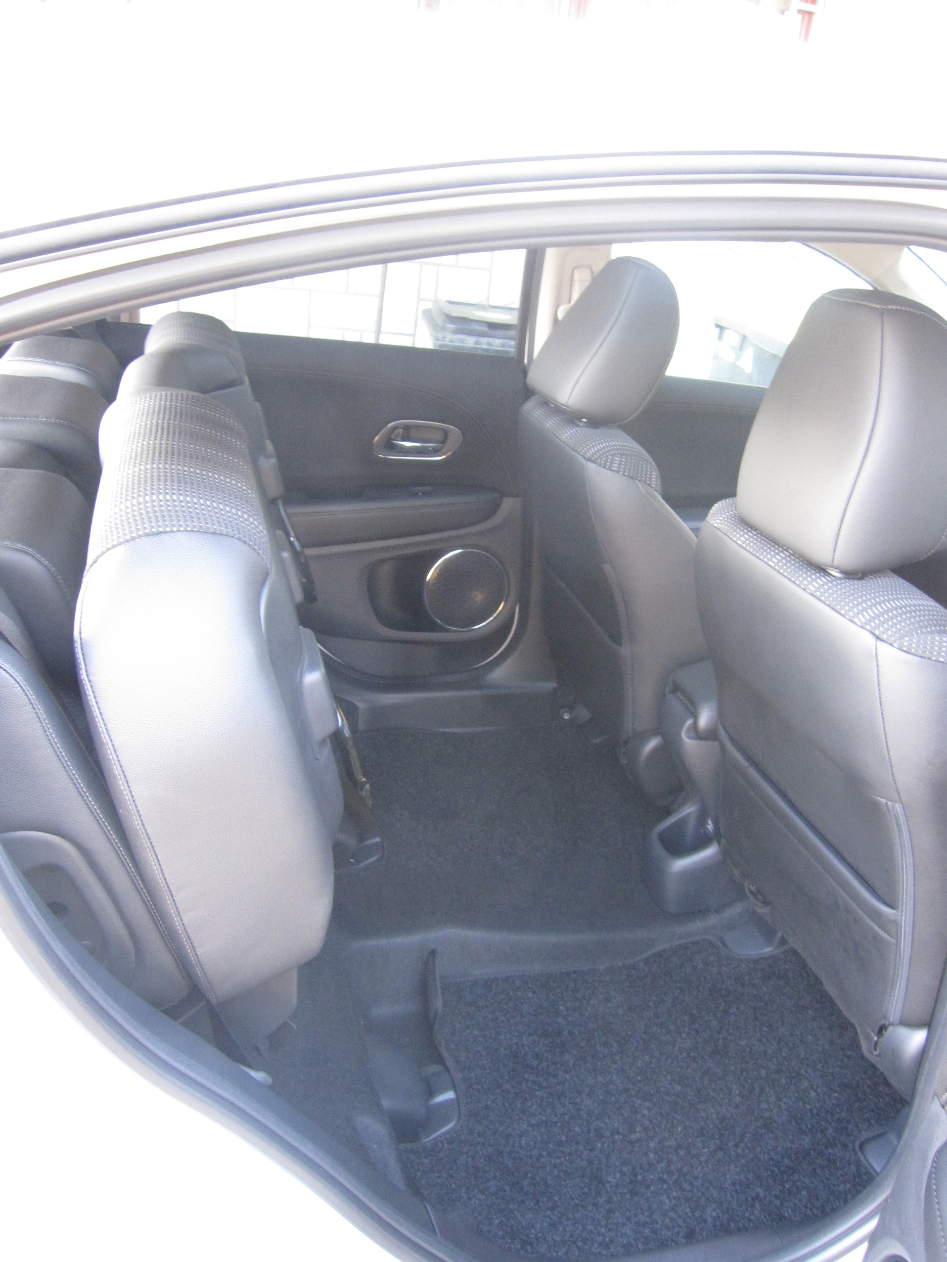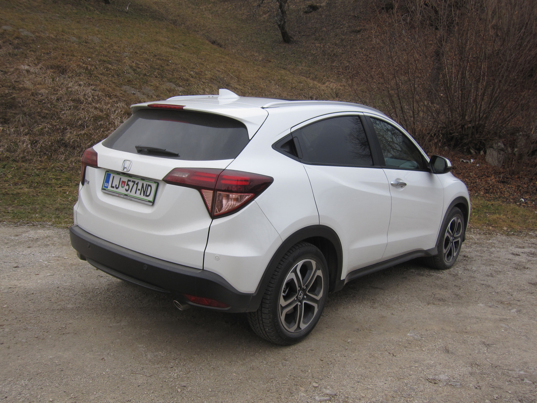 Njegova oblika je zasnovana zelo dina-mično, k čemur pripomorejo ozke steklene površine, pa tudi zadnja bočna vrata z zakritimi kljukami za odpiranje. A kljub takšni zasnovi je potniška kabina za 4,3 metra dolg avto zelo prostorna, še zlasti na zadnji klopi, kjer imajo tudi višjerasli dovolj prostora tako za kolena kot v višino, a tudi na račun dokaj kratkega pomika prednjih sedežev. Višjerasli vozniki bi si vsekakor želeli daljši pomik sedeža, saj bi s tem noge dobile boljšo oporo pri sedenju, kar bi pripomoglo k udobju. A to je praktično edina zamera glede ergonomije, saj je sicer volan dvojno nastavljiv, stikala so enostavno dosegljiva, preglednost instrumentne plošče je zelo dobra, prestavna ročica je postavljena priročno visoko na sredinsko konzolo med prednjima sedežema, v kateri je kar nekaj prostorov za odlaganje drobnarij, dobrodošel pa je tudi sicer očem dokaj skrit, a zelo priročen prostor pod sredinsko konzolo. Bi bili pa žepi na vratih lahko večji. Pohvalno je brezstopenjsko odpiranje vrat avta, že zlasti na ozkih parkiriščih, višje sedenje pripomore k udobju. Prtljažni prostor je primerno velik, asimetrično deljeno zadnjo klop lahko enostavno prekucnemo v ravno dno prt-ljažnika z nizkim nakladalnim robom. Posebnost zadnje klopi je možnost dviga sedalnega dela, ki ga enostavno zaskočimo v navpičnem položaju, kar omogoča varen prevoz višjih predmetov. Rešitev se izkaže za zelo uporabno. Je pa HR-V brez prekrivne police prtljažnika – ta je na voljo kot dodatna oprema.