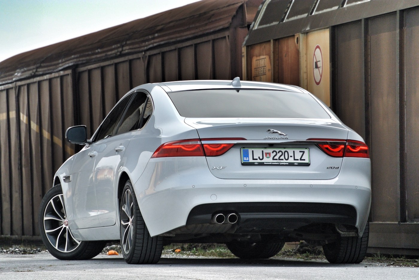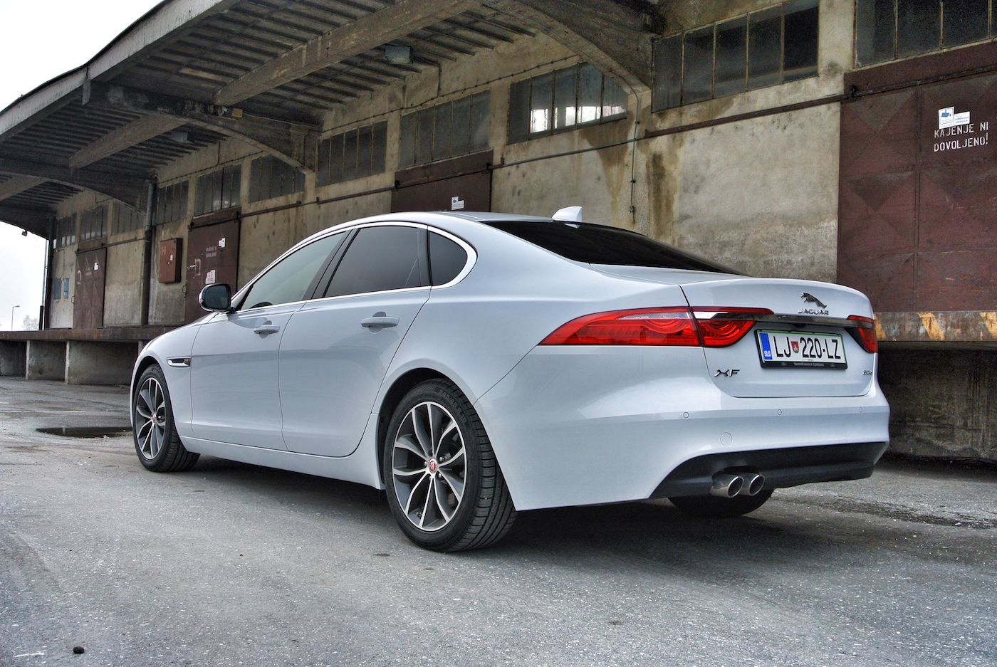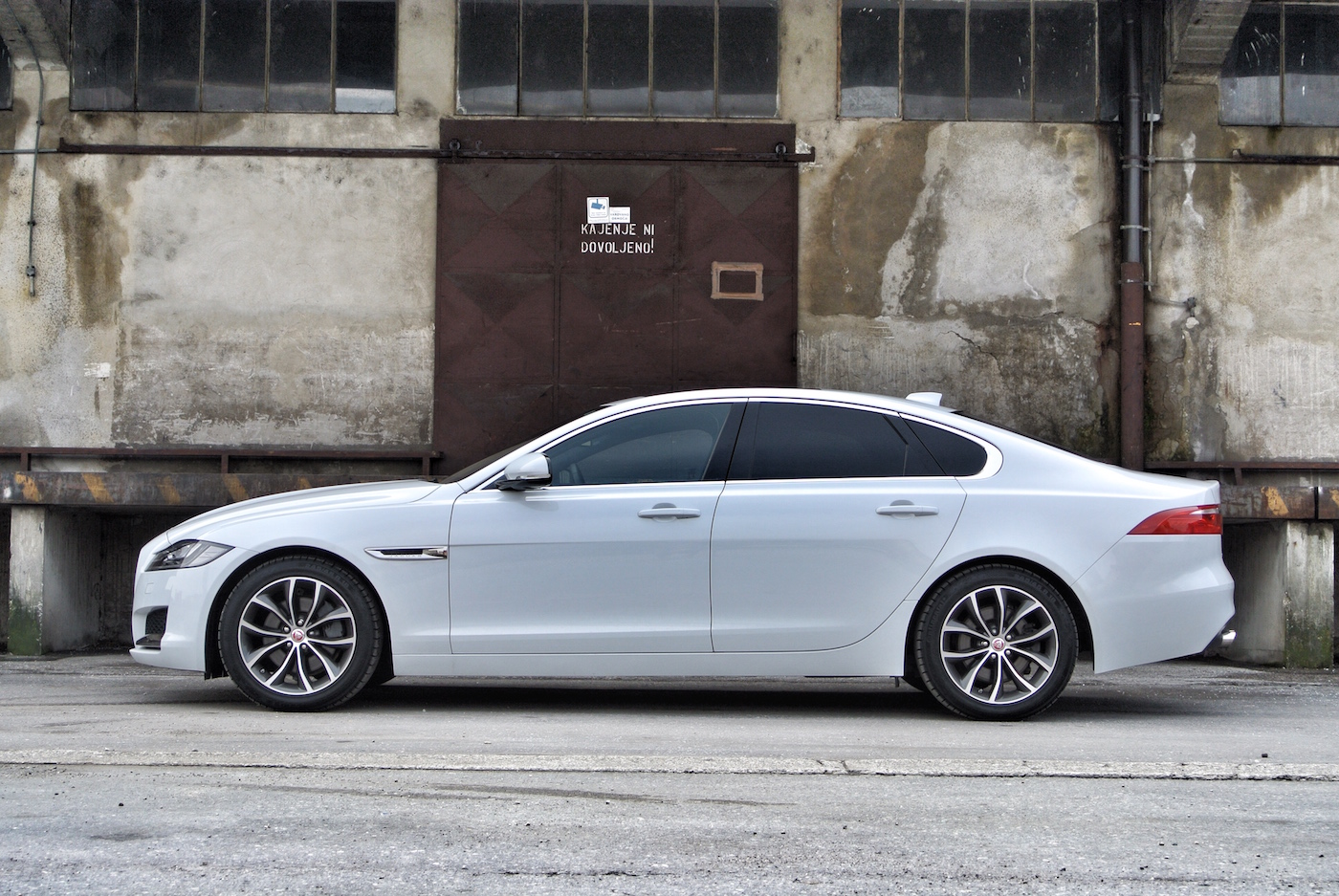 Tudi pri obliki je tako; XF je skoraj 5 metrov dolga limuzina klasičnih velikostnih razmerij, z dolgim pokrovom motornega prostora in poudarjeno široko stojo. Avto je eleganten in skladen, hkrati tudi prikrito športen – in s tem zelo britanski.
