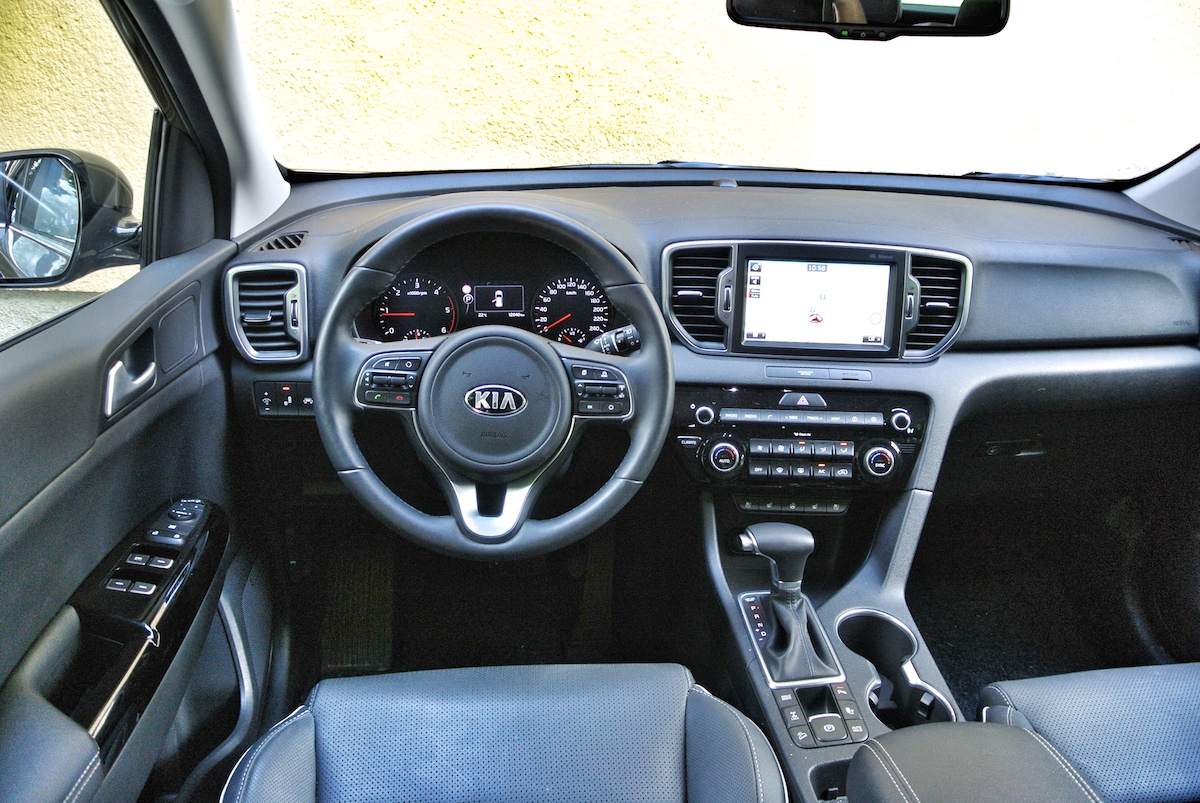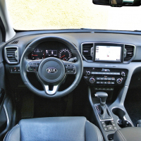Dodatni centimetri se poznajo v notranjosti; sportage ponuja več prostora potnikom na zadnji klopi, prostornejši pa je tudi prtljažnik, ki ima premično polico in zato dvojno dno, v tem paketu opreme pa je tudi električni dvig prtljažnih vrat. Armaturna plošča je pregledna, oblikovana malce konzervativno, a hkrati tudi kakovostno izdelana. Nasploh daje sportage v notranjosti občutek solidnosti in čvrstosti – tudi zaradi zajetnih in prijetno čvrstih prednjih sedežev ter odlične nastavljivosti položaja za volanom. Na dotik občutljiv zaslon multimedijske naprave je med večjimi (in preglednejšimi) v tem razredu, upravljanje z vsemi glavnimi elementi pa je – kljub precejšnjemu številu gumbov in stikal – enostavno in intuitivno. Tudi zato daje sportage zrel in odrasel vtis.