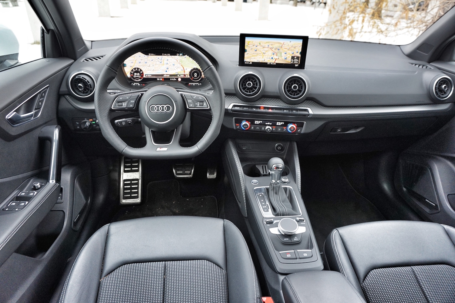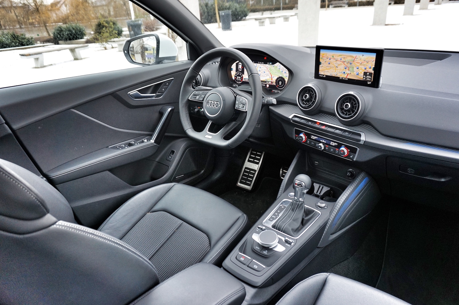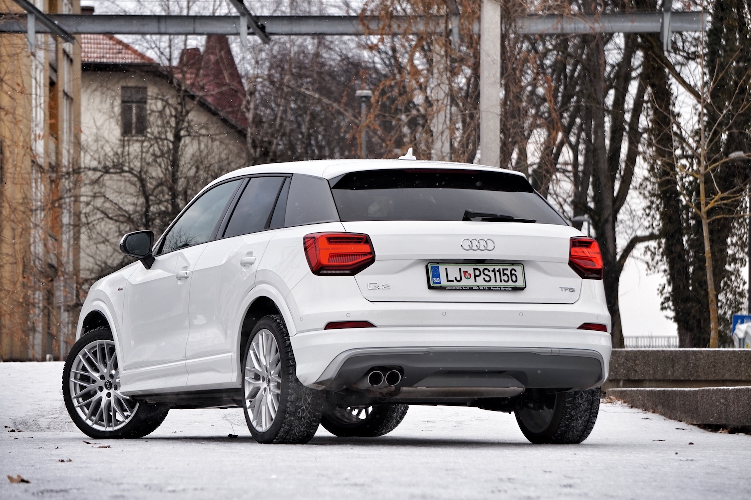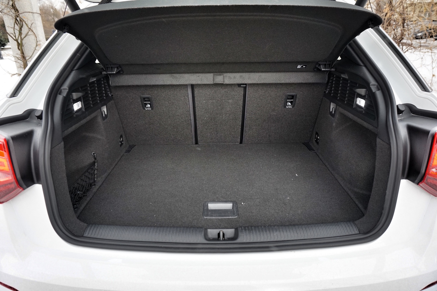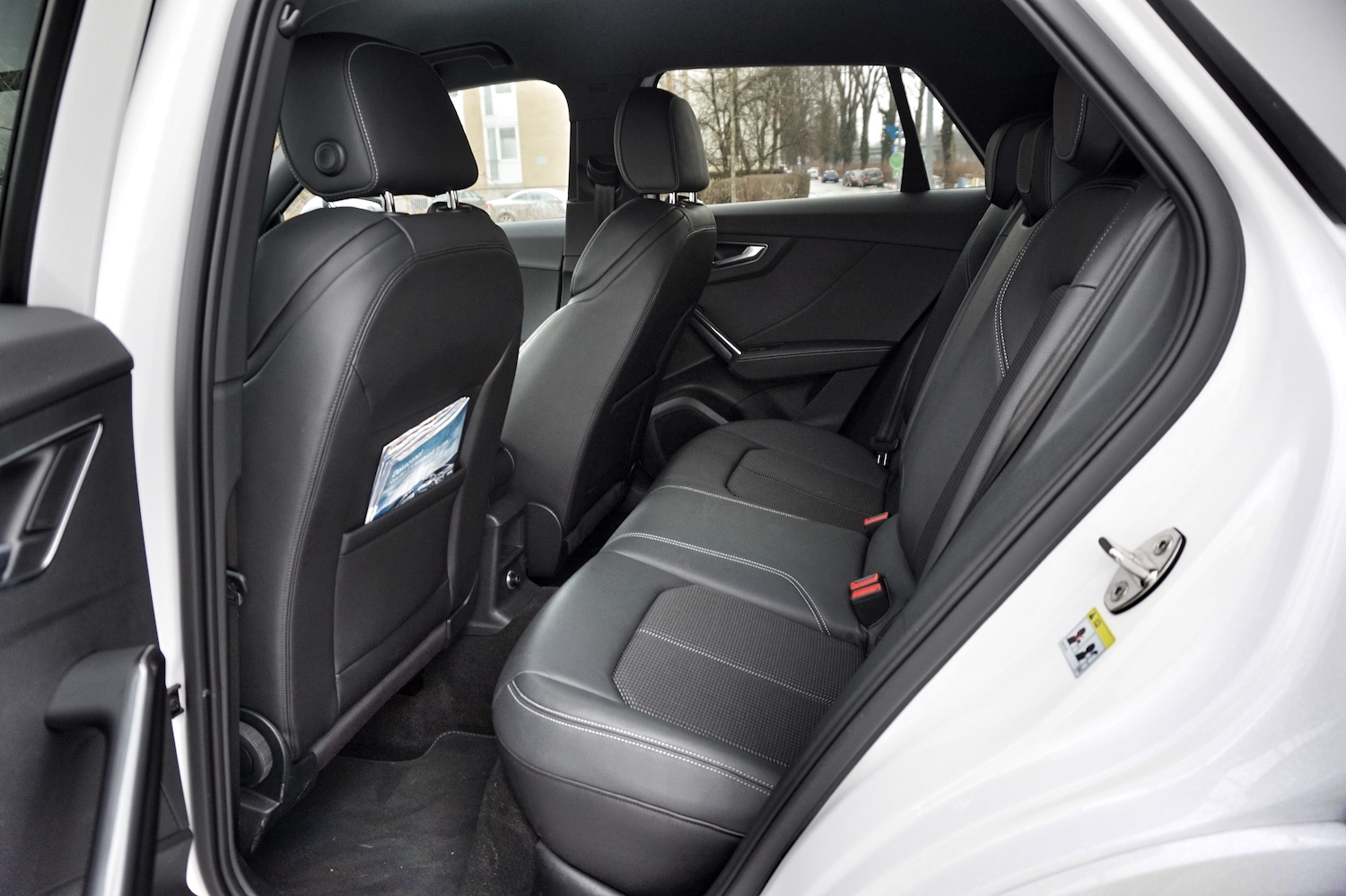 Q2 je prijetno radodaren tudi s prostorom; že omenjeno višje in bolj pokončno sedenje zagotavlja več prostora za kolena potnikov zadaj, kot je to videti od zunaj, nadpovprečno prostoren je tudi 405-litrski prtljažnik, katerega vrata lahko po vzoru na večje audije (in za doplačilo) odpiramo tudi z zamahom noge pod odbijačem.