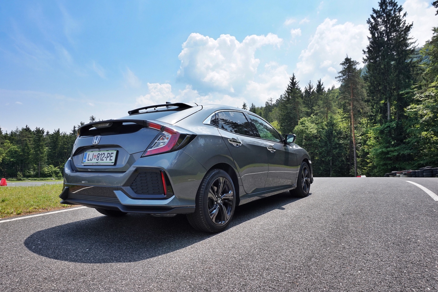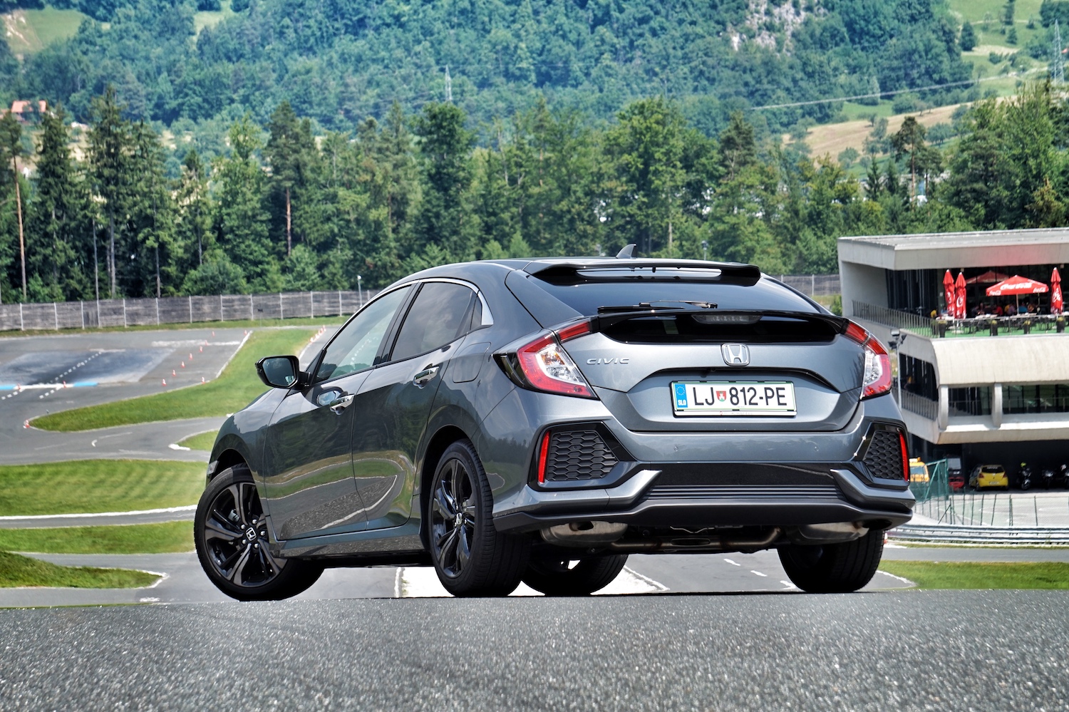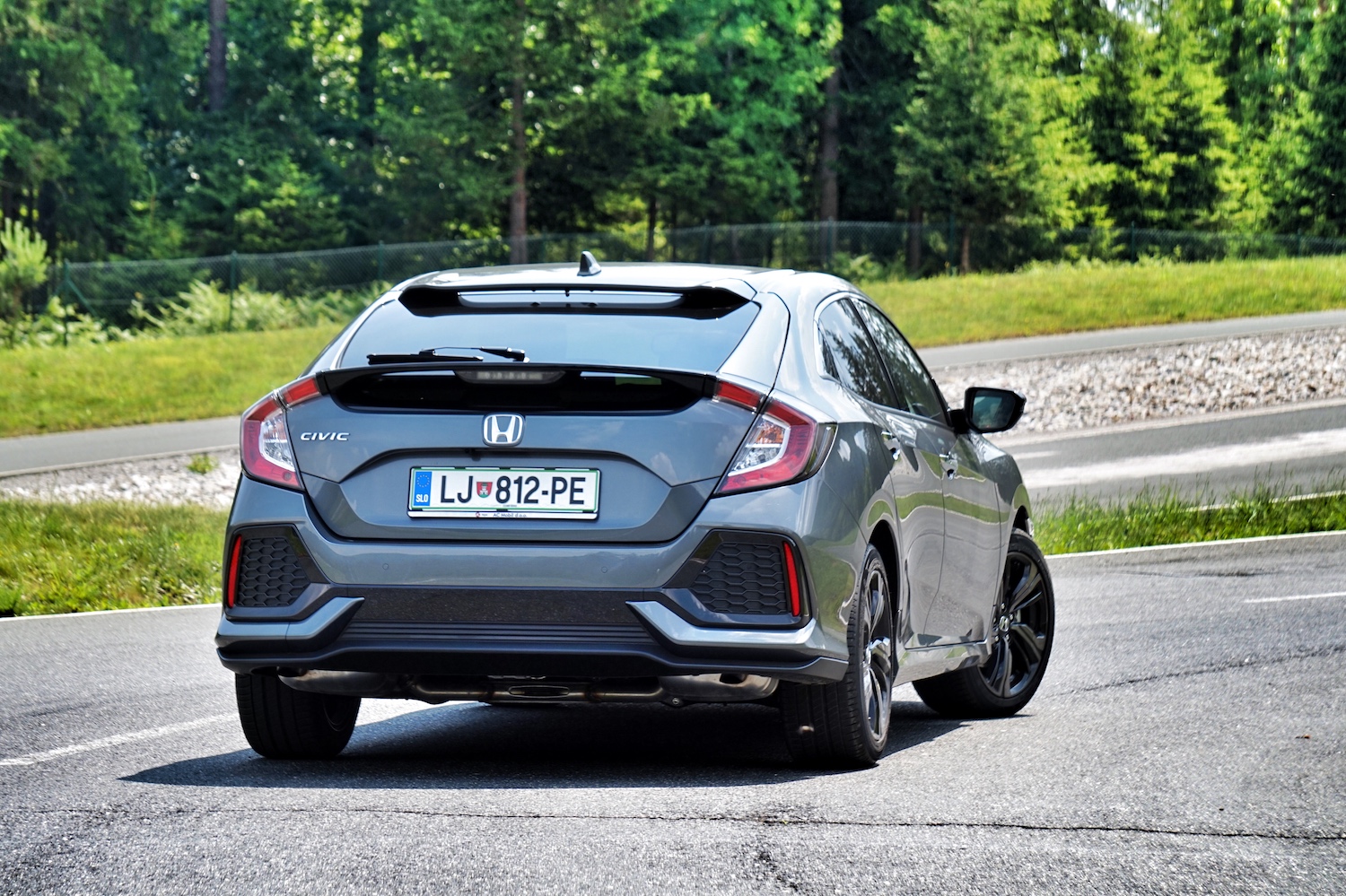 Drugo oceno “odlično” si zasluži civicov motor – prostorninsko skromen, a zelo učinkovit in zmogljiv 1,5-litrski štirivaljnik s turbinskim polnilnikom. Gre za prvi Hondin bencinski turbo motor; v motorju so inženirji združili prožnost, ki jo nudi turbinski polnilnik, in dirkaško veselje do visokih vrtljajev, ki ga zagotavlja prilagodljivo krmiljenje ventilov VTEC. 134 kW (182 KM) moči in 240 Nm navora je dovolj za 8,4 sekunde pospeška do 100 km/h in 220 km/h največje hitrosti, kar so zmogljivosti športnikov. Edina moteča lastnost motorja je vztrajanje pri visokih vrtljajih, ko odvzamemo plin – kot da bi imel motor predimezioniran vztrajnik. Motor je tudi prijetno varčen; kljub 1,4 tone mase in dinamičnemu načinu vožnje je bila povprečna poraba goriva na preskusu le 7,4 l/100 km.