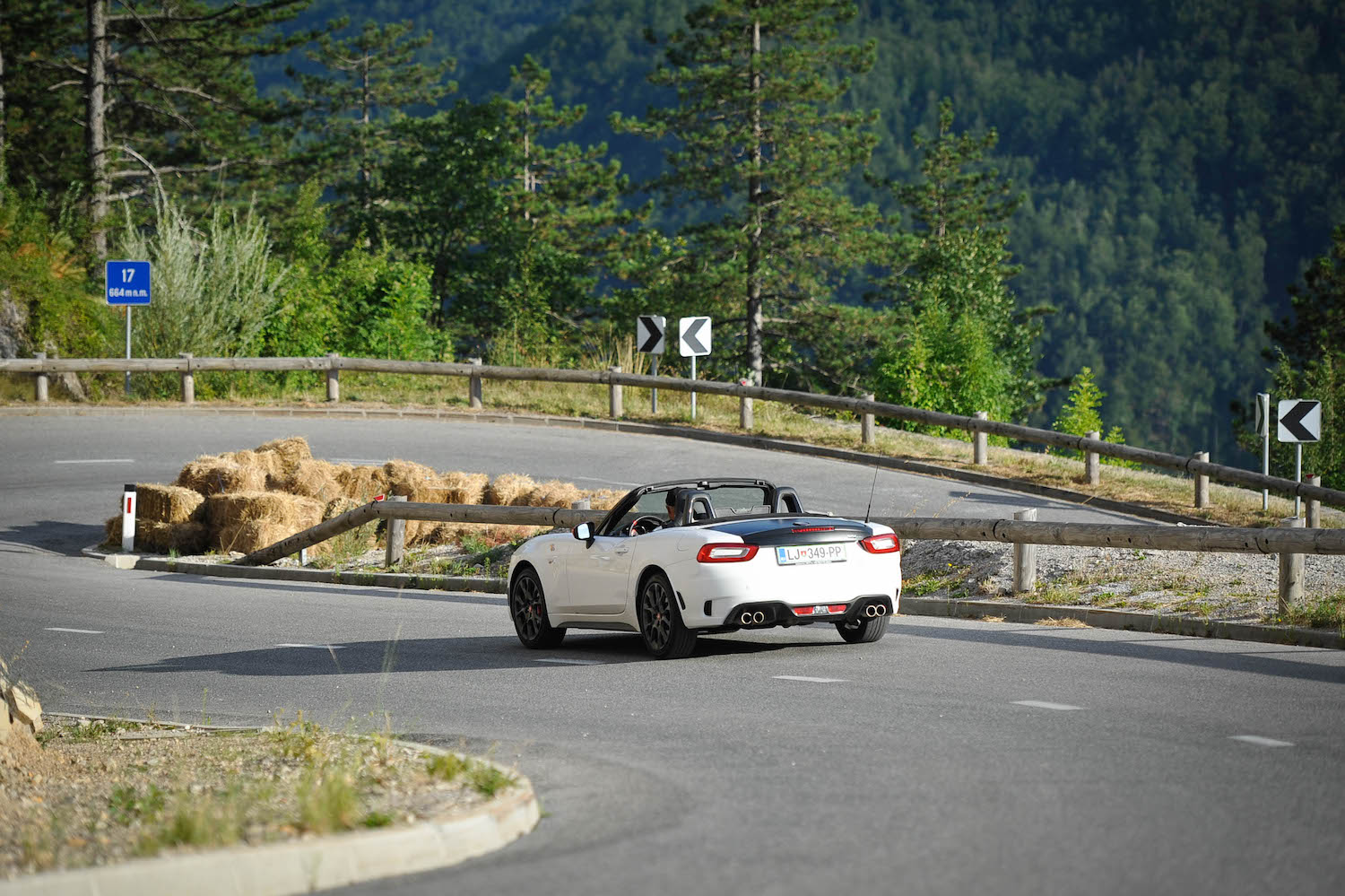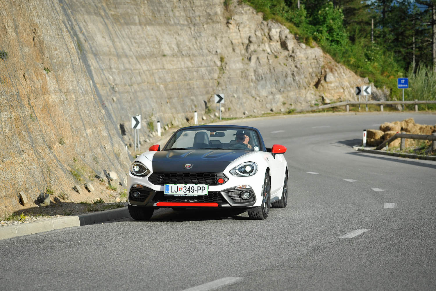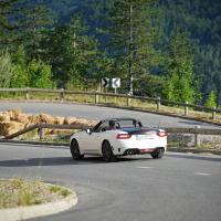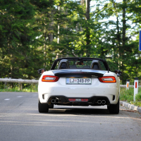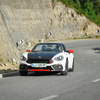 V abarthu 124 smo se na te zavoje dobro pripravili. Njegova mehanika, ostrina, natančnost podvozja in odziven turbo motor še vedno stojijo na prvotni filozofiji Carla Abartha iz leta 1949: “zmogljivost za vsako ceno!” Zanimivo je, koliko zgodovine so skozi čudovite detajle in odlične vozne lastnosti v Torinu dejansko uspeli preliti v novodobno različico legendarnega dvosedežnega rodasterja. Res pa je, da so jim pri gradnji tokrat pomagali Mazdini inženirji, ki so uravnotežili in v popolno razmerje kilogramov ter moči spravili telo tega abartha; anatomsko abarth 124 namreč izhaja iz mazde MX-5. Kljub temu pa ima stroj svoj značaj, oster in strupen ter karizmatičen, ki sovpada z nebesnim znamenjem na logotipu. Gre za avto, pri katerem že podoba pove veliko, ko pa se oglasi, od prvega trenutka naprej budi željo po iskanju meja – najprej in najbolj slišno prav s svojim zvokom iz dvojne izpušne cevi. Odlično je prilagojen užitkom gibanja in risanju linije na podlago. Cesto bere zelo dobro in fiziki kljubuje z resnim športnim podvozjem, dvojnima trikotnima prečnima vodiloma spredaj in z večvodilno premo zadaj. Menjava smeri iz ovinka v ovinek mu gre zelo dobro, kar malce pobalinsko izpod koles. Ponuja klasično koreografijo vseh najlepših prvin zadnjega pogona, vključno s hitrim zadkom. Vse skupaj pa je zaradi odlične uravnoteženosti z malo vaje lahko zelo zabavno in obvladljivo – tudi, ko je prostora na cesti malo. Piko na i dodajo na pregrevanje odporne Brembove zavore in Bilsteinovi blažilniki.