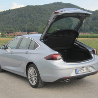 Ta je na voljo le še v dveh karoserijskih različicah, kar je bila povsem logična odločitev glede na tržni (ne)uspeh klasične limuzine, saj je petvratna kombi limuzina z dvižnimi petimi vrati, ki je bila na našem testu, precej bolj praktična, a zato nič manj elegantna. Celo nasprotno: s svojo sloko, razpotegnjeno postavo v kupejevski obliki deluje všečno, z značilnimi Oplovimi oblikovalskimi elementi prepoznavno, z nekaterimi rešitvami tudi malce neobičajno, a ne ekstravagantno. Avto so razpotegnili na dolžino 4,9 metra, a tega s svojo podobo ne izkazuje. Je pa velika dolžina občutna v potniški kabini, ki je postala prostornejša, še zlasti na zadnji klopi, kjer tudi visokorasli lahko udobno sedijo, saj imajo dovolj prostora tako za kolena kot po višini, v zakup morajo vzeti le omejen pogled navzven.