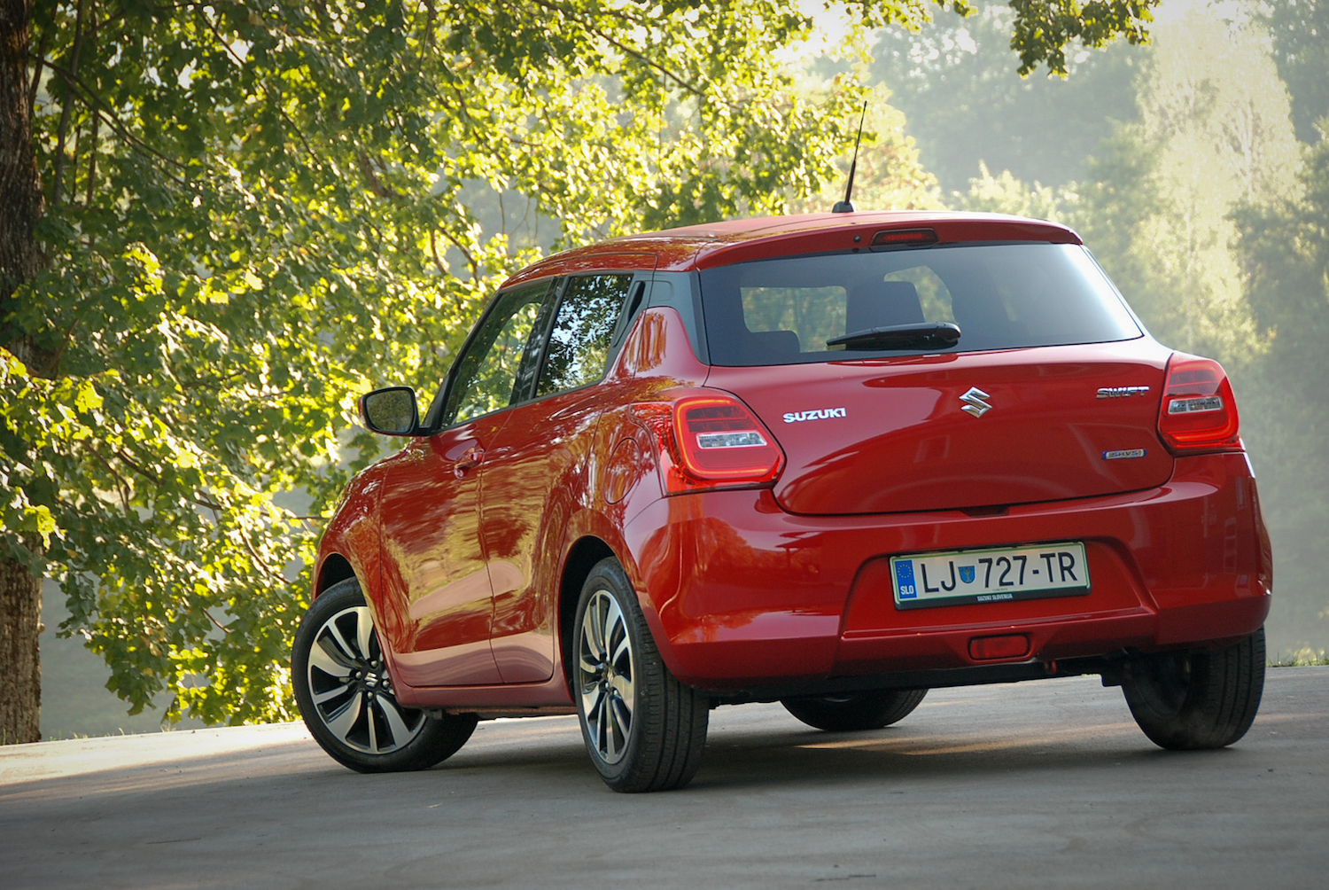 Pri zaviranju swift rekuperirano energijo shranjuje v baterijo, iz katere napaja električne porabnike in poskrbi za učinkovit zagon pri delovanju start in stop sistema. Škoda le, da je ta mikro-hibrid na voljo zgolj s 5-stopenjskim menjalnikom.