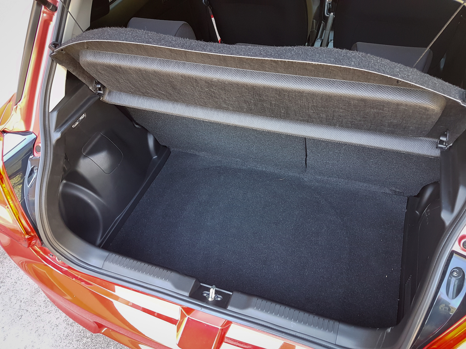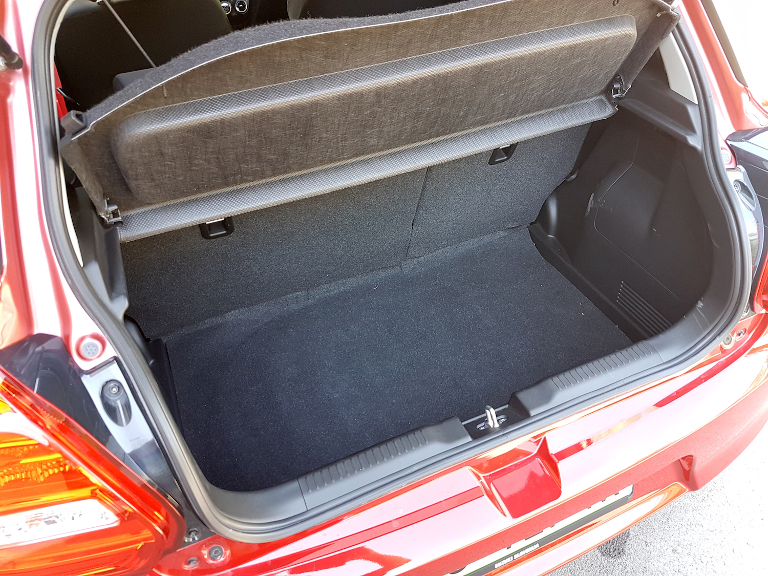 Ergonomsko pripombo si nedvomno zasluži zunanja kljuka na obeh zadnjih vratih, ki je nameščena nekoliko previsoko. Zadnja klop, deljiva v razmerju 60:40, pa preseneti predvsem s prostorom nad glavami. Obe isofix sidrišči za otroške sedeže zadnje klopi sta lepo dostopni. V dobre 3,8-metra velikem avtomobilu čudežev glede prostora ne gre pričakovati, kar potrdi 265-litrski prtljažnik. Škoda, ker swift po vzoru mikroterenca ingnisa nima vzdolžno pomične klopi. Če je prevrnjena zadnja klop, prostor sicer doseže skorajda cel kubični meter (947 l), a nima ravnega dna, saj ob zloženi klopi nastane stopnica.