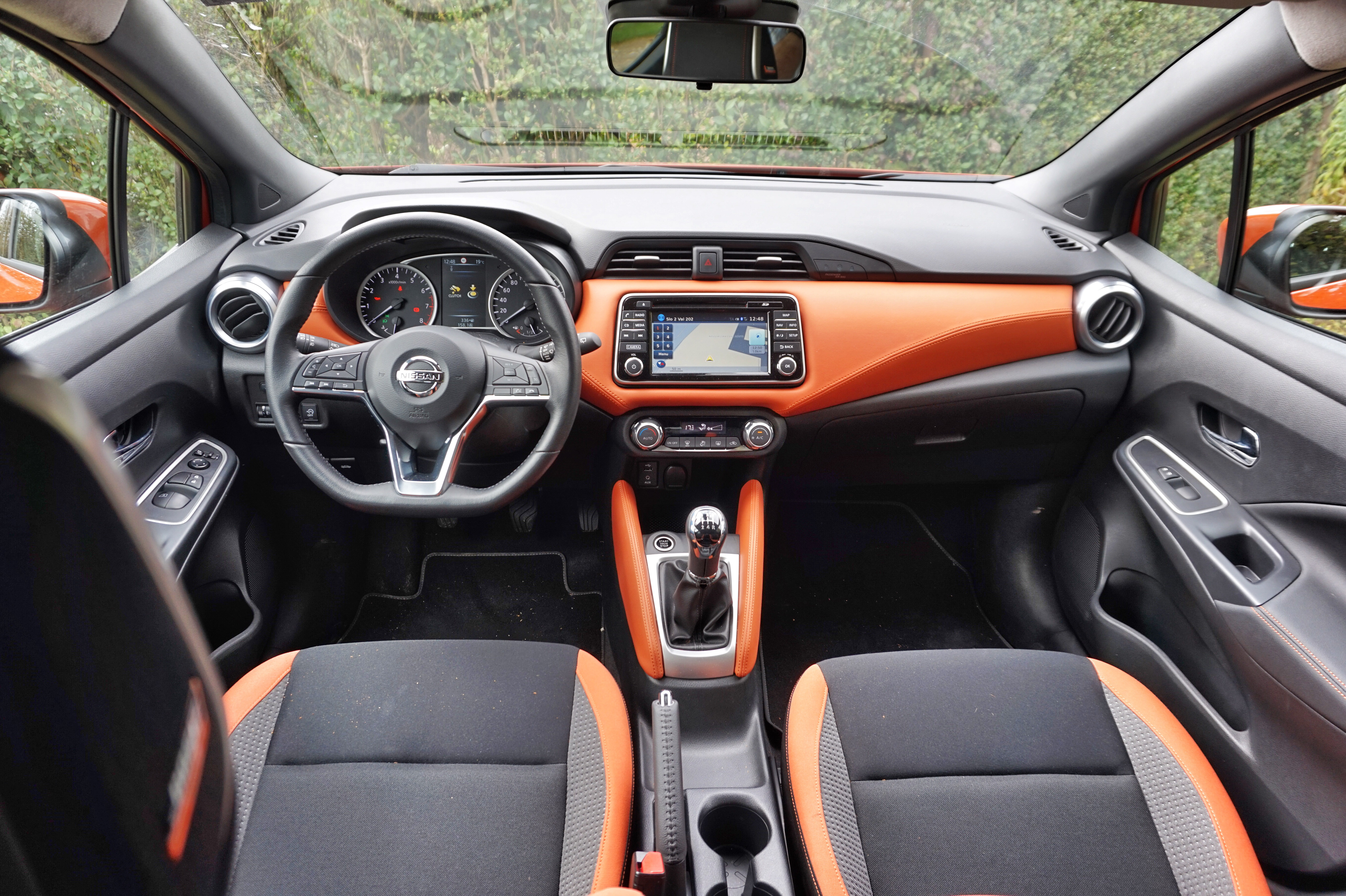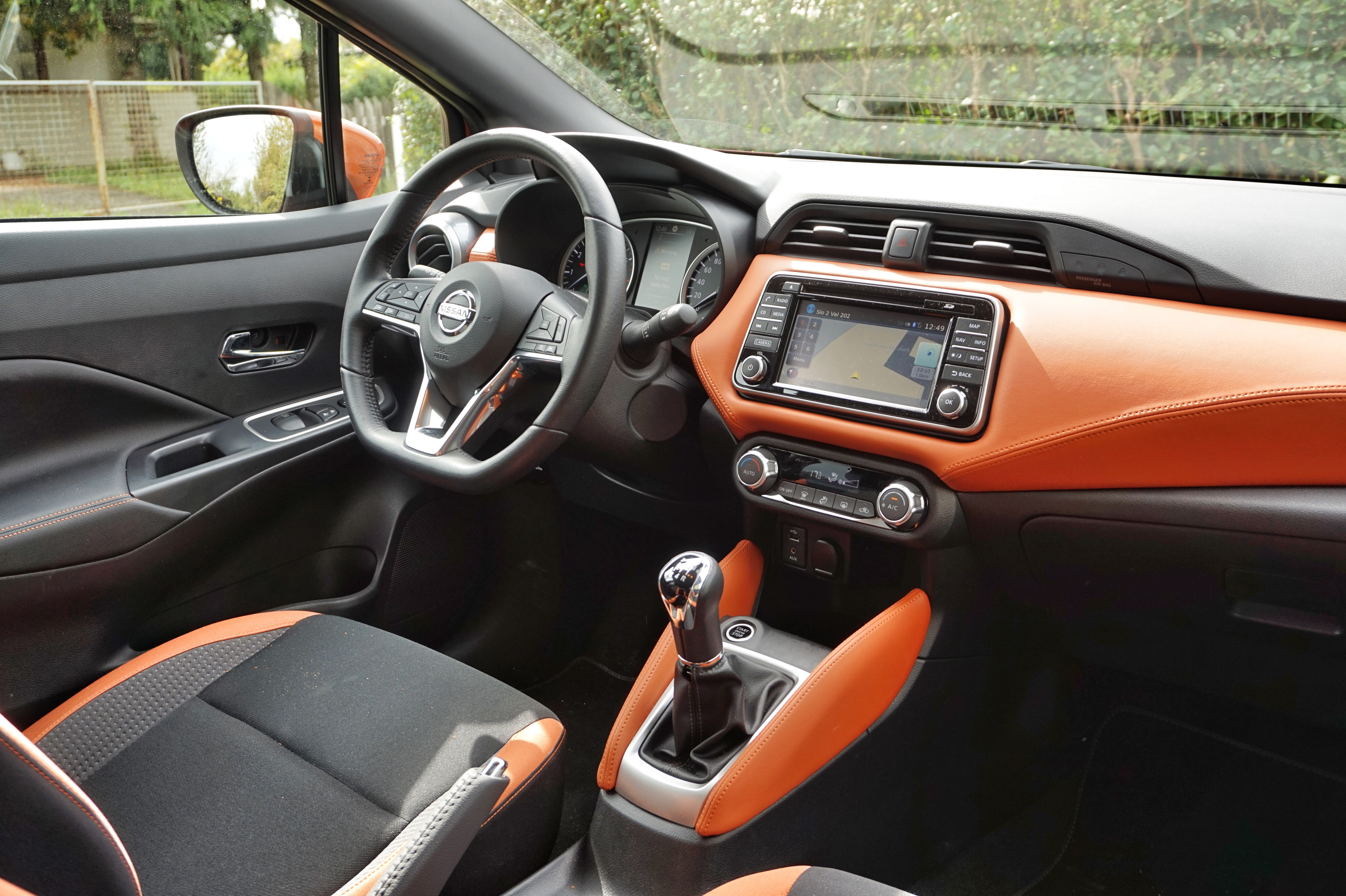 Še bolj samostojno je nova micra videti od znotraj. Sicer klasično zasnovano in oblikovano armaturno ploščo začinijo in obogatijo vložki iz umetnega usnja v barvi karoserije; ti tudi uspešno skrijejo dejstvo, da je sicer kakovost vgrajenih materialov razmeroma skromna. A vsaj pri ergonomiji micra ne varčuje; dobra prednja sedeža in pravilen položaj za volanom so zagotovilo za udobno vožnjo.